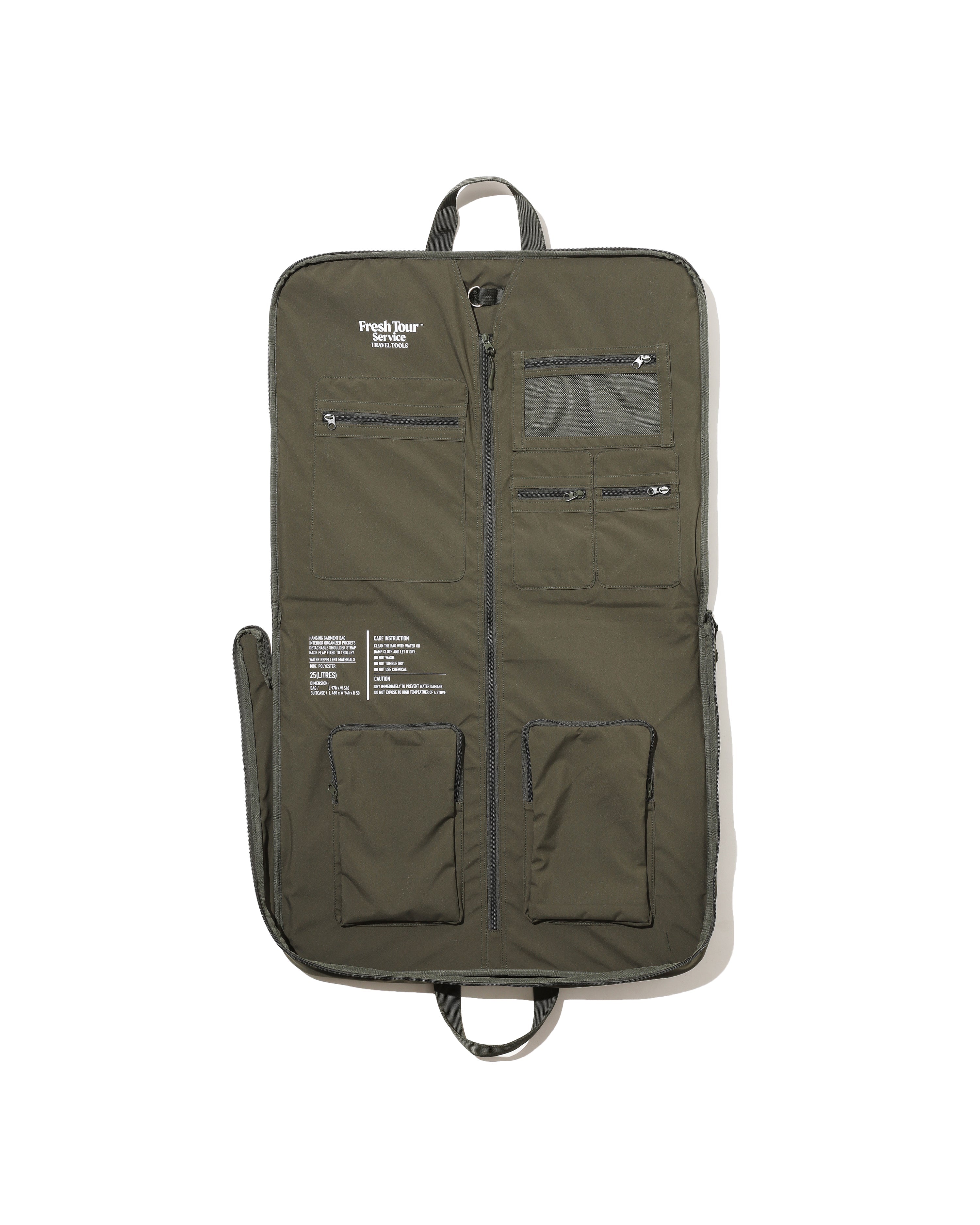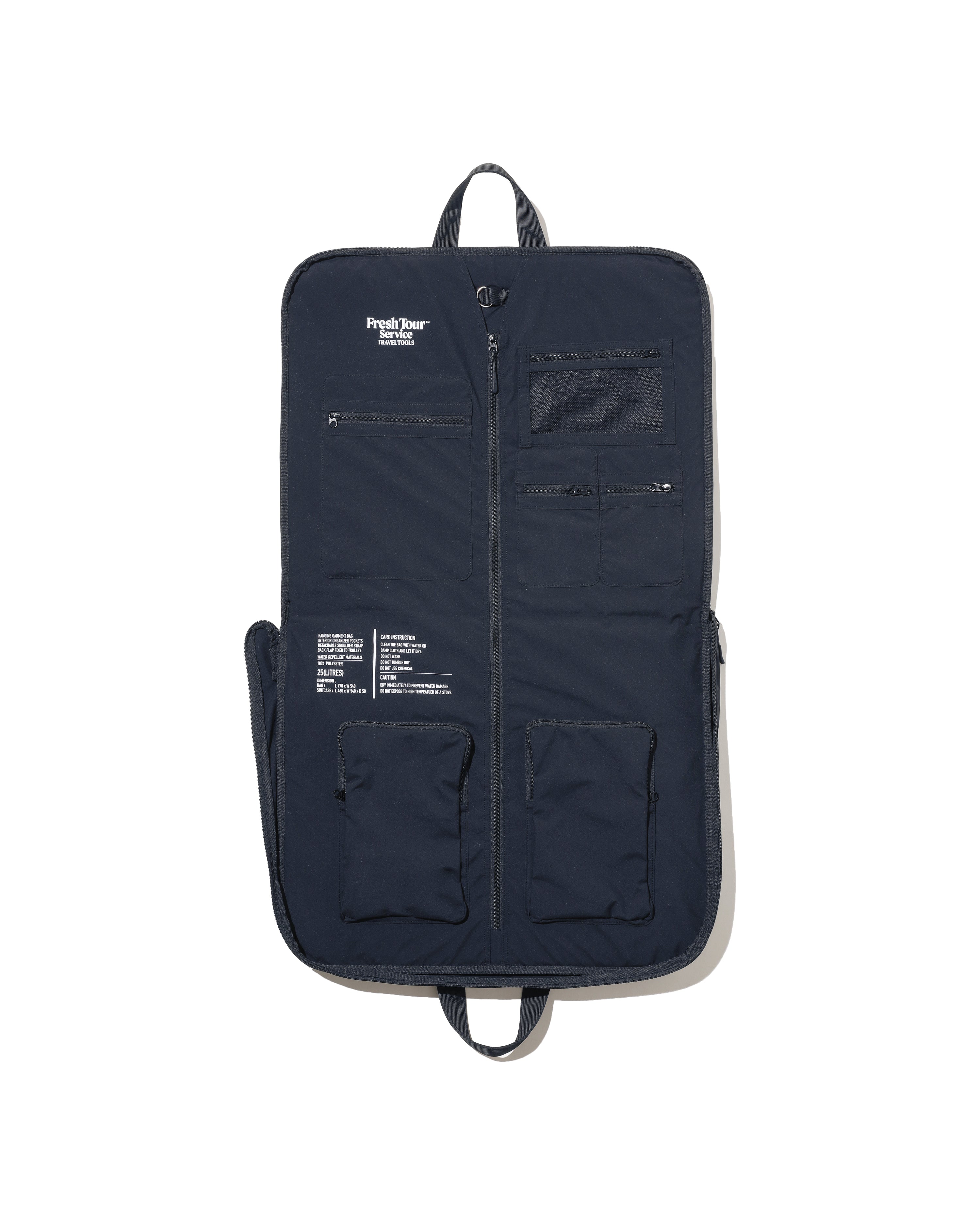 FreshServiceのガーメントバッグが装い新たにリニューアル。旅をテーマにしたFreshTourServiceとしてリリース。ジャケットにシワを付けずに持ち運べるだけでなく、シャツからネクタイ、小物まで細々したアイテムの収納に役立つ多様なファスナー付きポケットを搭載。手提げと肩掛けの2Way仕様でスーツケースのキャリーハンドルにも固定出来る嬉しい仕様。