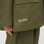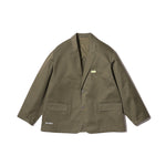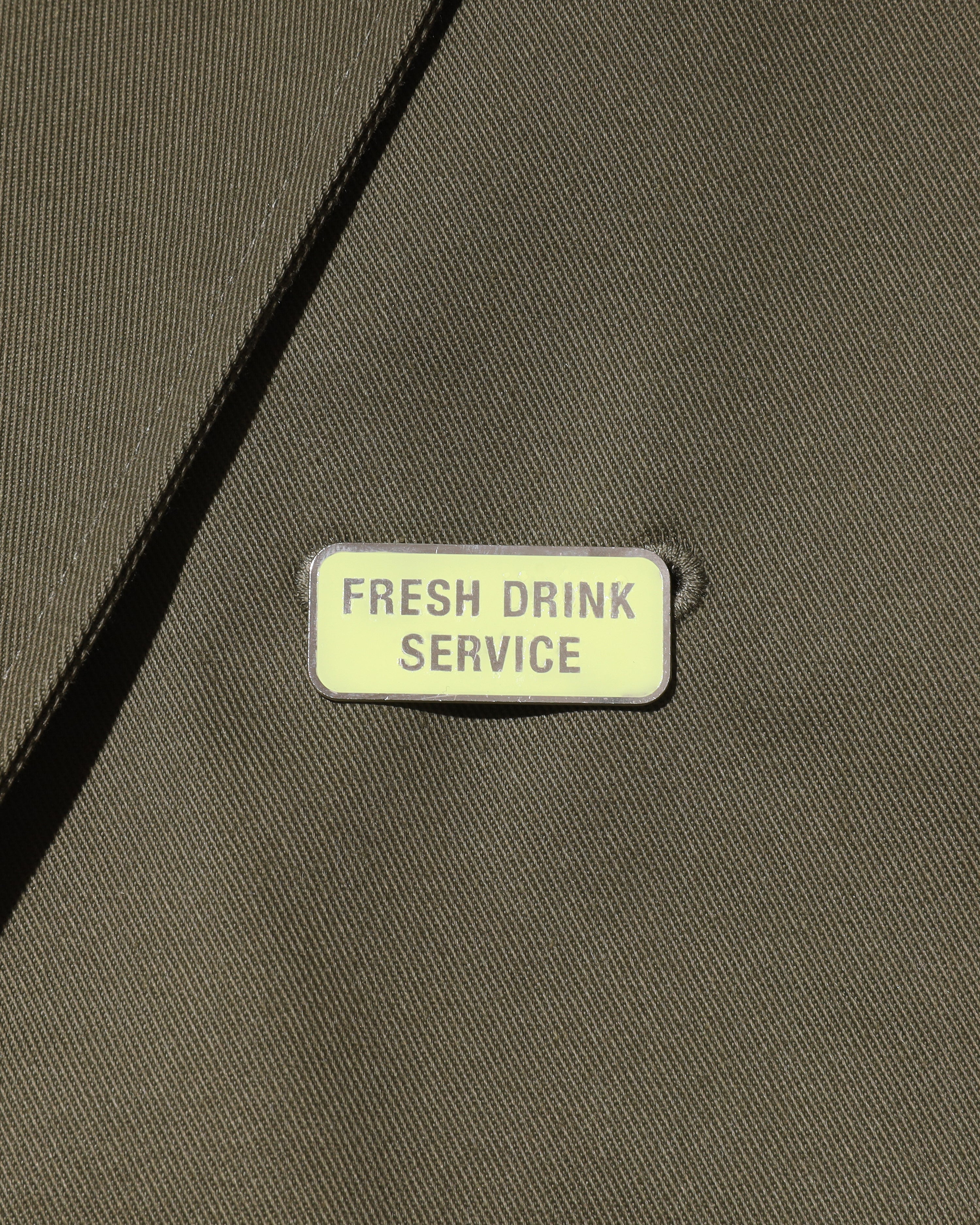 企業ユニフォームの機能性とファッション性を融合させたワークジャケット。撥水・撥油加工を施した生地を使用し、汚れを弾く機能性を備えたアイテム。FSらしいゆったりしたシルエットが特徴。デザインソースは、イギリスの鉄道会社で働く運転士に支給された3ボタンテーラードジャケット。アームホール下のハトメにより通気性を向上させ、快適な着用感を実現。胸元の名札がアクセントとなり、機能性とデザイン性を兼ね備えた一着。フロントの内側には、メモ帳用の打ちポケットとペン刺しが備わっており、実用性も兼ね備えている。これにより、必要なアイテムを手元に保ちながら、機能的でありながらもスタイリッシュな印象を与える