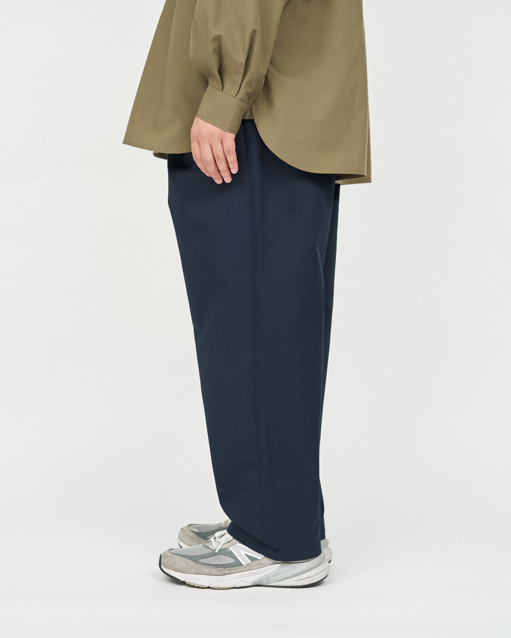 飲食・サービス業のために設計された「FRESH DRINK SERVICE」のユニフォームチノパンツ。フロントにタックを入れた立体的なシルエットと、ウエストにはゴム仕様を採用し、長時間の業務でもストレスなく着用できるリラックス感のある一本です。素材には、耐久性が高く、しわになりにくいうえ、汚れにも強いファブリックを使用。清潔感を保ちながら、タフな現場でも安心して着用いただけます。S〜XLの4サイズ展開で、性別や体型を問わず幅広い層にフィット。動きやすさと見た目のスマートさを両立した、ユニフォームとして頼れる一本です。