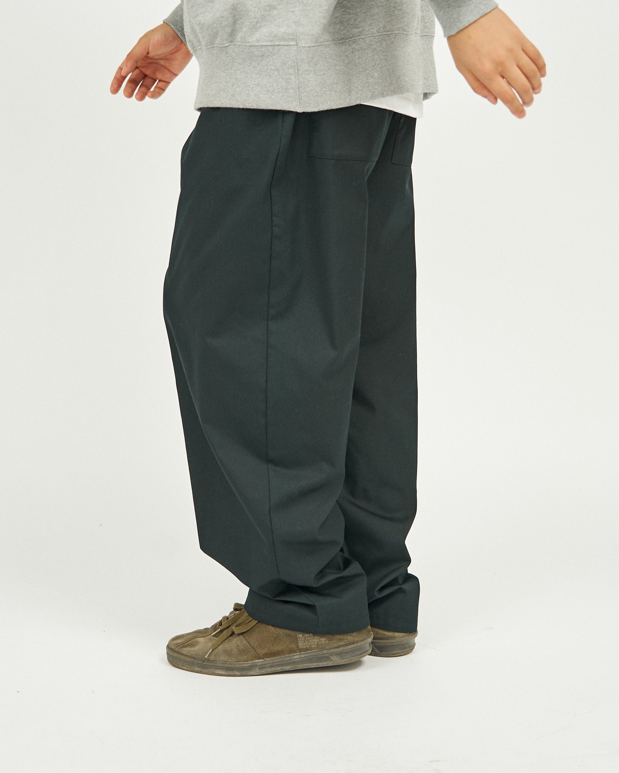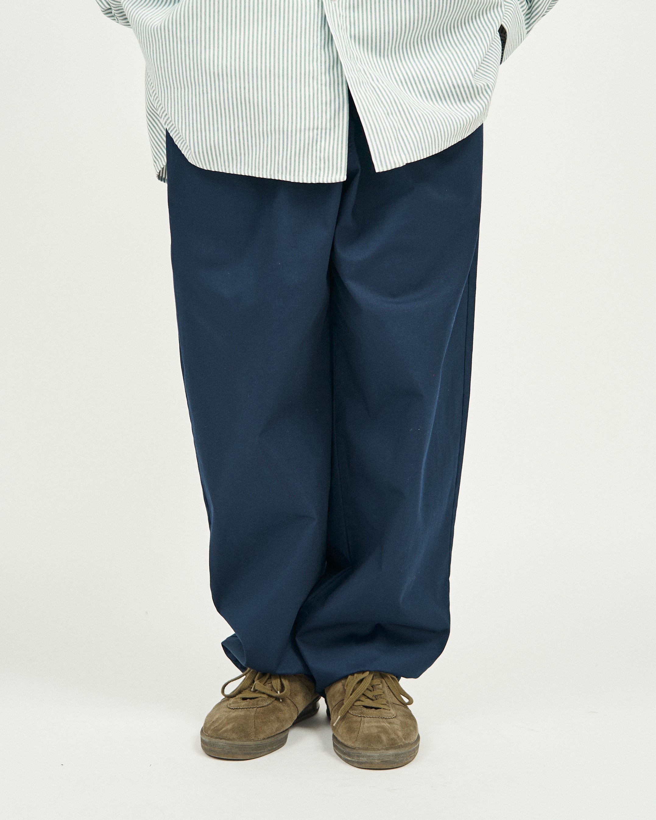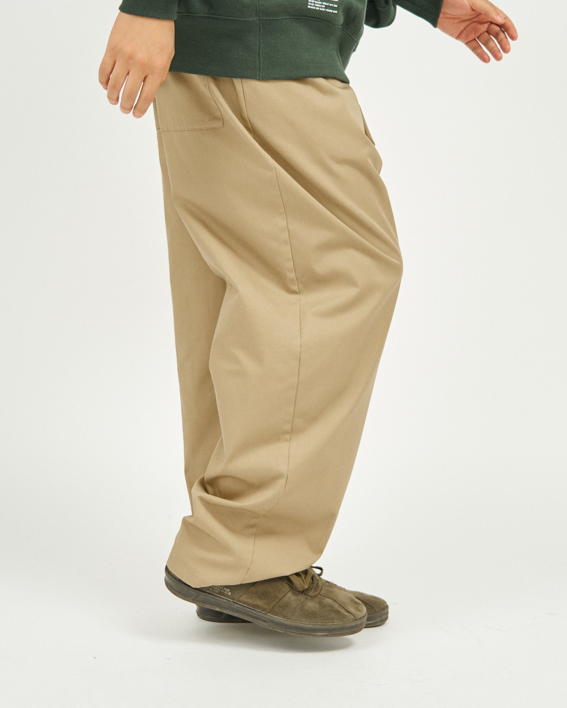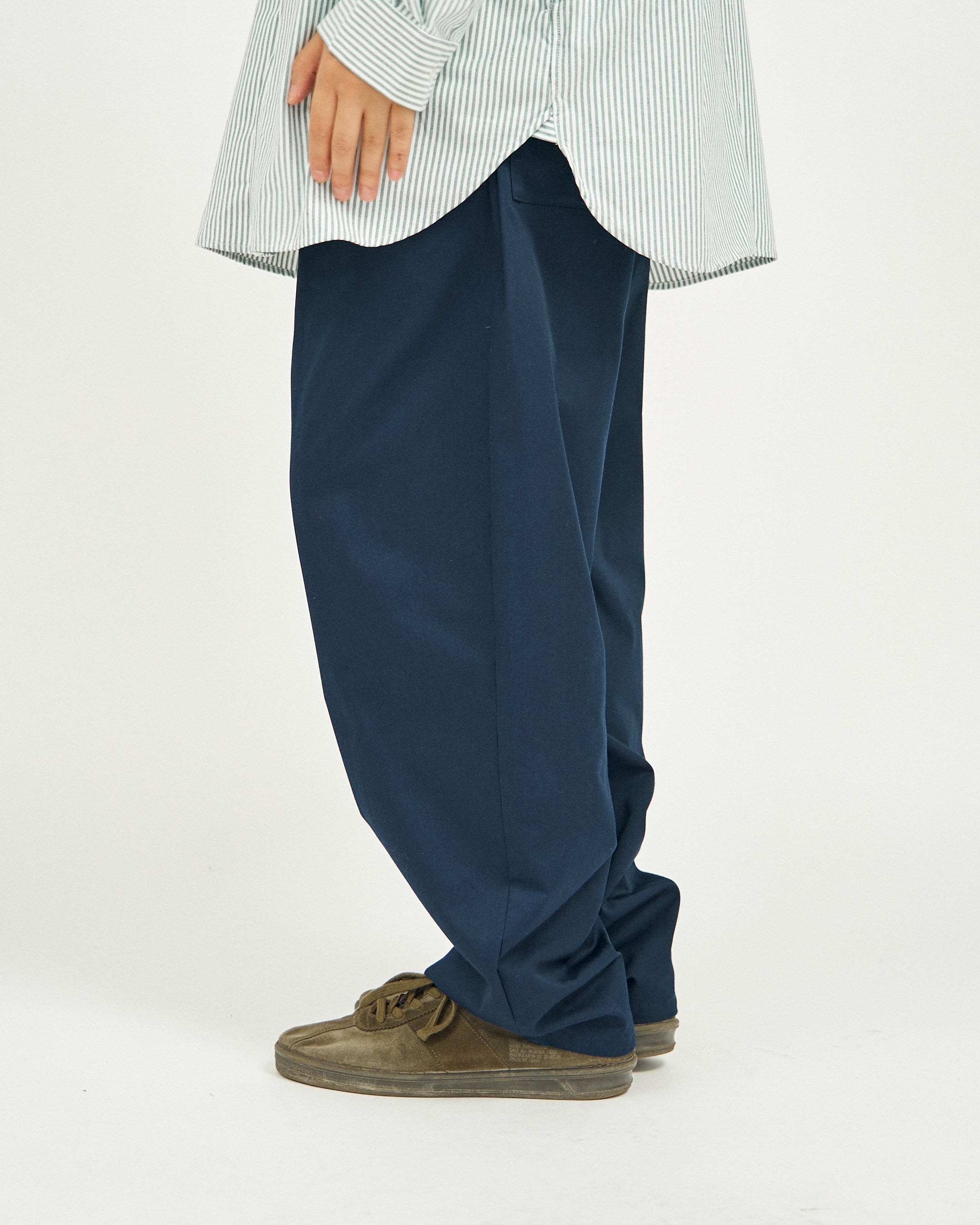 動きやすさを考慮し、腰周りにはゆとりを持たせ裾に向かって緩やかにテーパードしたシルエットに仕上がっています。