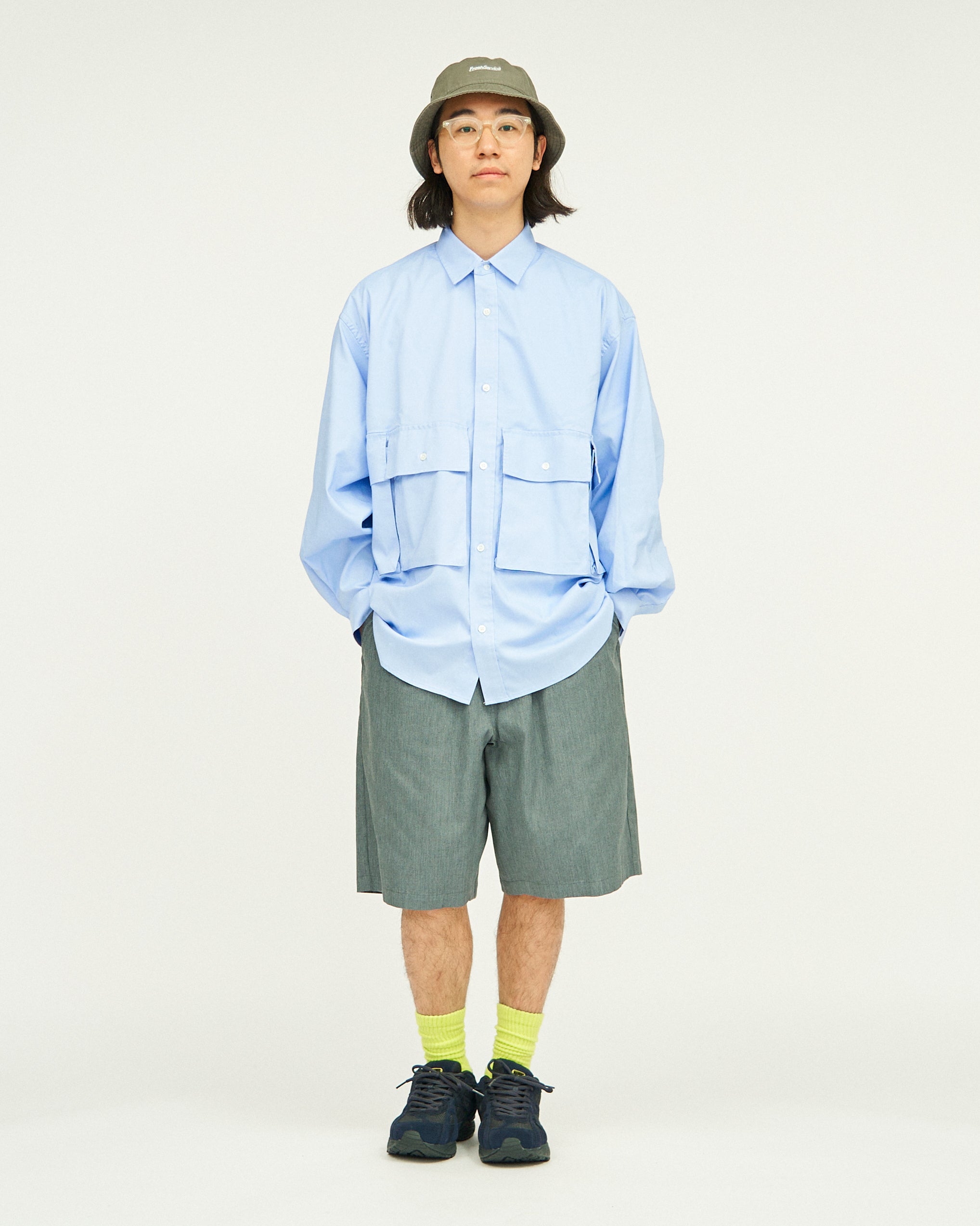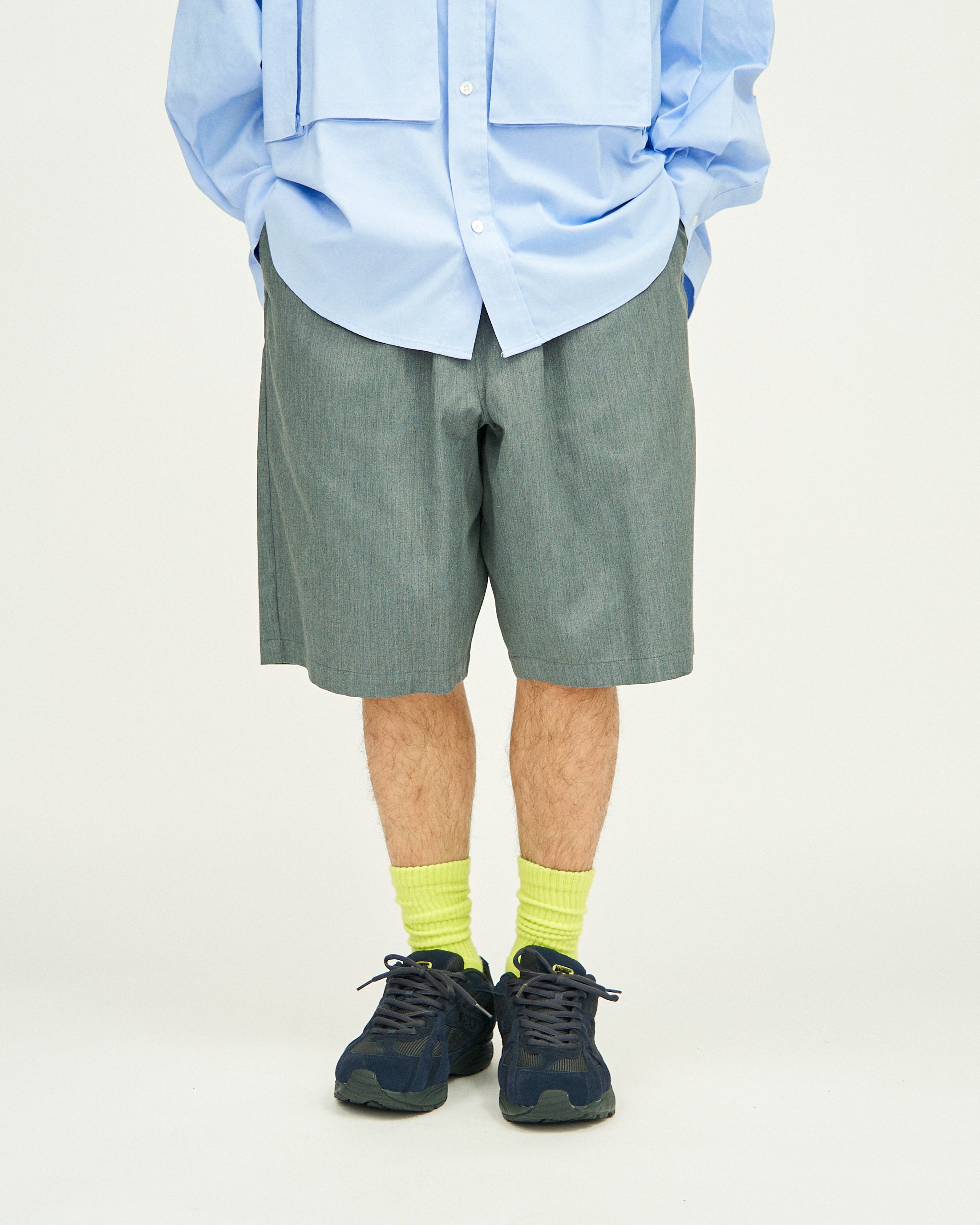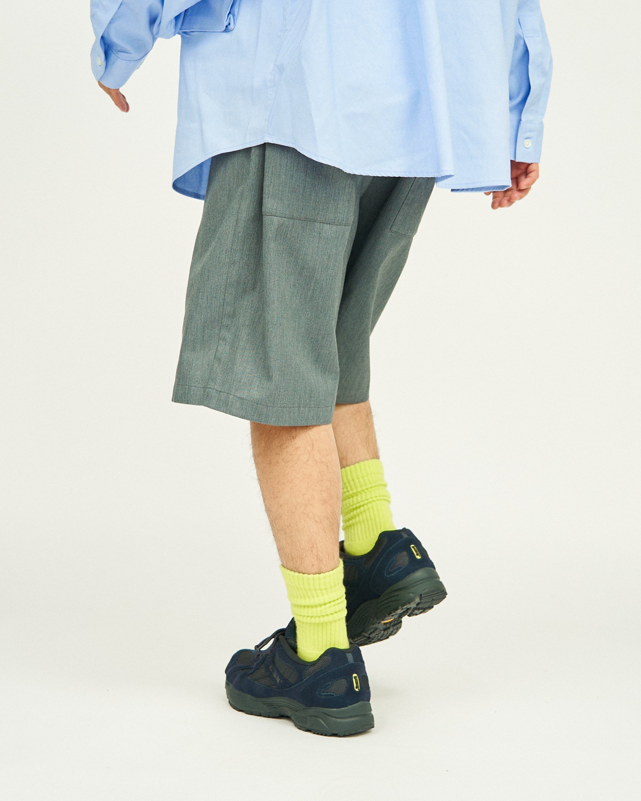 架空の配送業者のユニフォームをイメージしたブランド定番の”CORPORATE EASY PANTS”をベースに、春夏仕様で製作したショーツ。