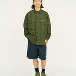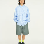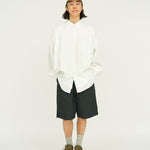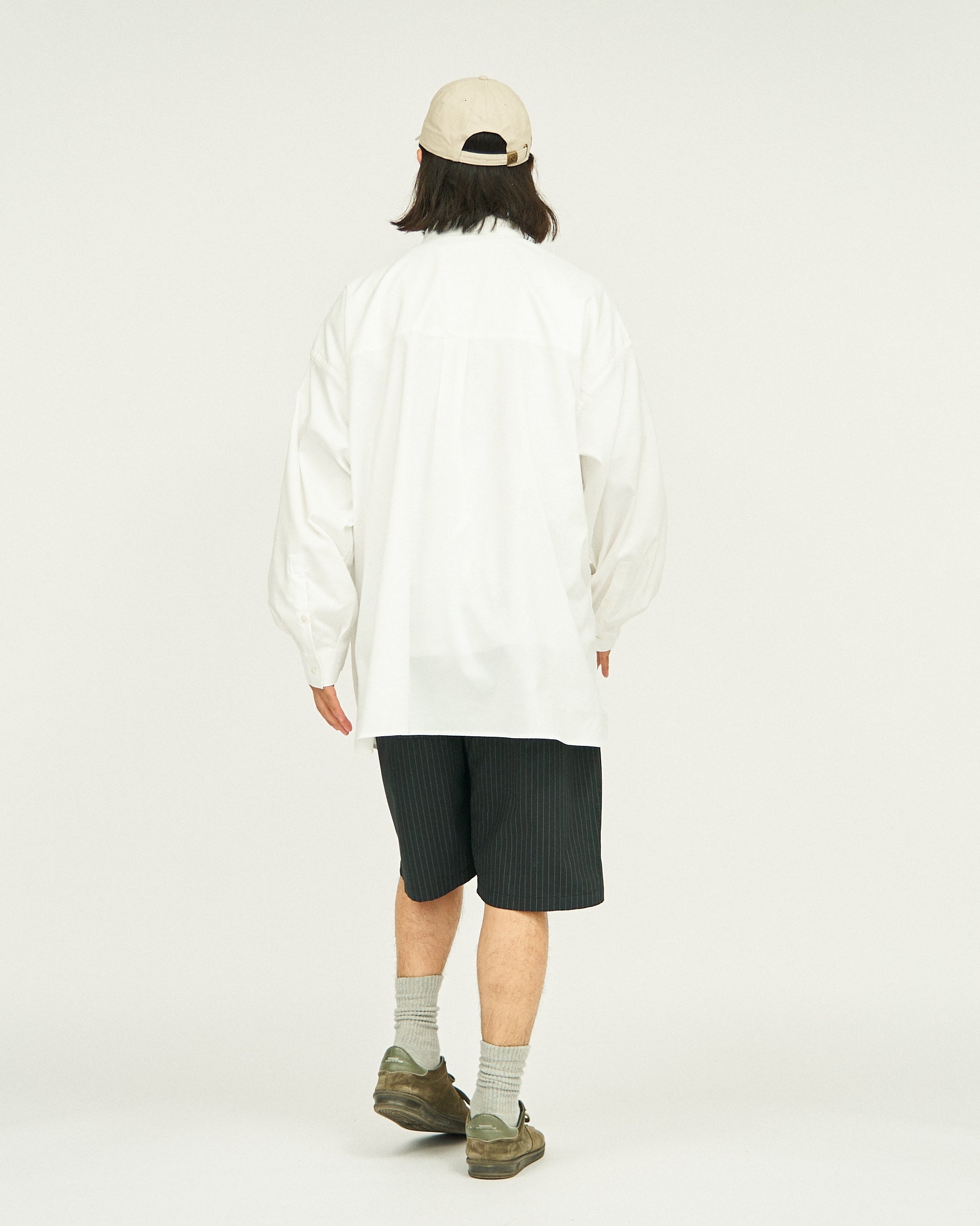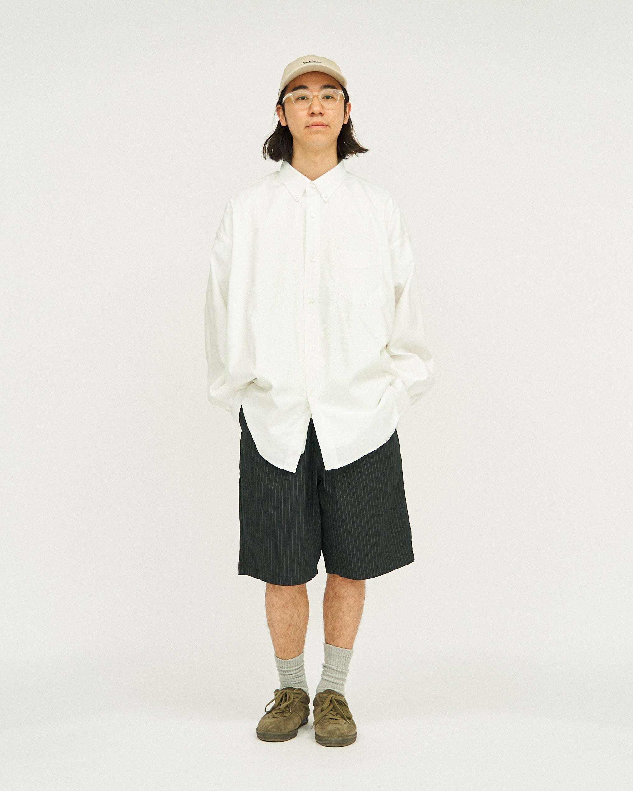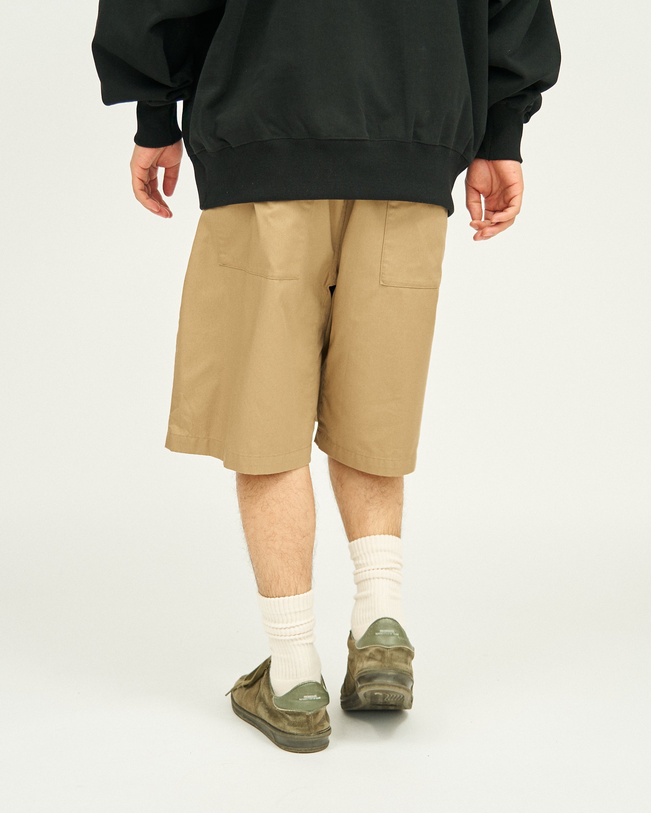 架空の配送業者のユニフォームをイメージしたブランド定番の”CORPORATE EASY PANTS”をベースに、春夏仕様で製作したショーツ。