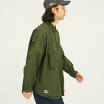 ワークウェアとしてのタフな生地感、洗濯のしやすさはもちろん、動きやすさを考慮したボリュームのあるシルエットやウエストに配置したスピンドルなど、イージーな着用感が魅力です。