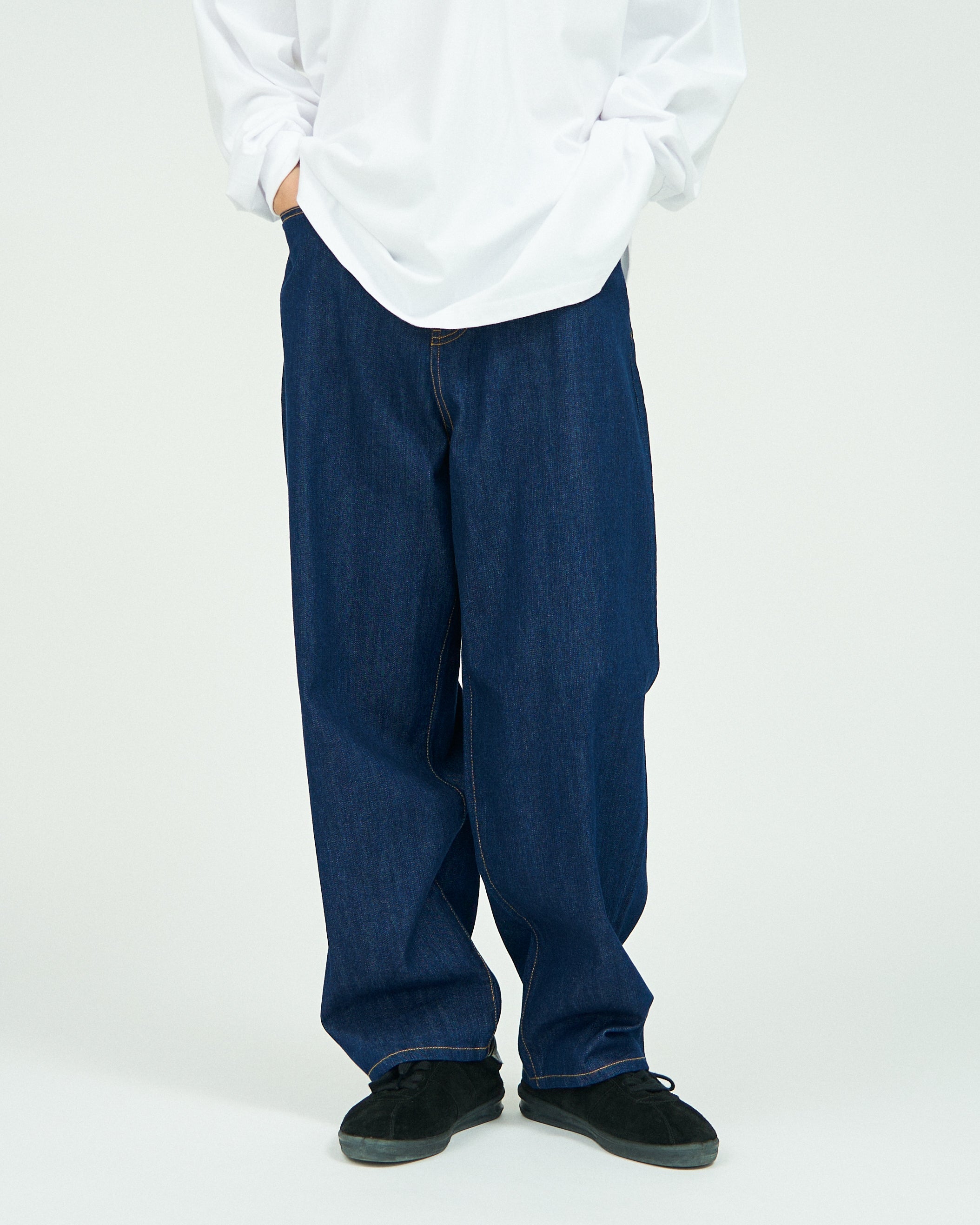 FreshServiceらしいワイドテーパードシルエットに仕上げたファイブポケットジーンズ。季節やシーンを選ばない軽く柔らかい肌触りの9.5ozのインディゴデニムを使用。洗いざらした風合いのワンウォッシュと、エイジングを施したフェイドタイプの2種をご用意。