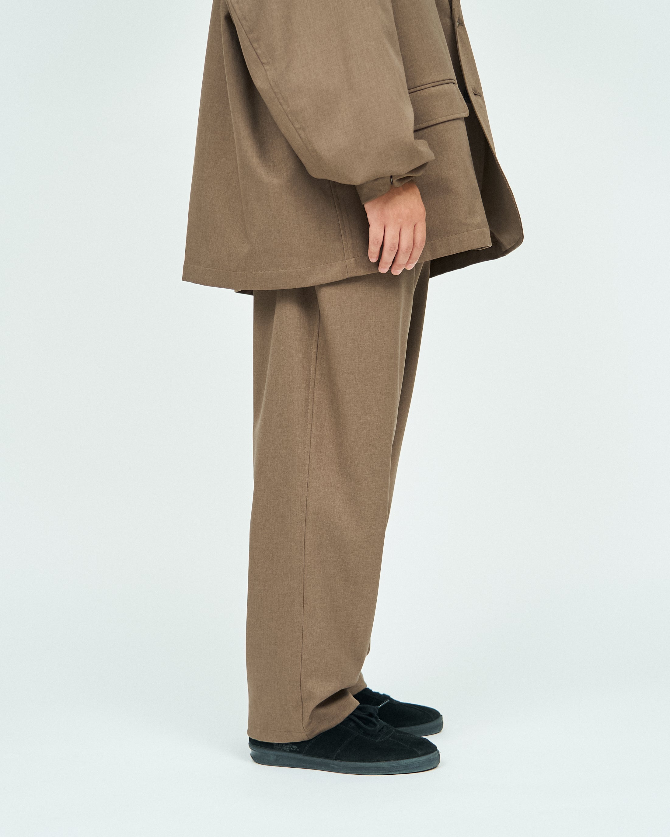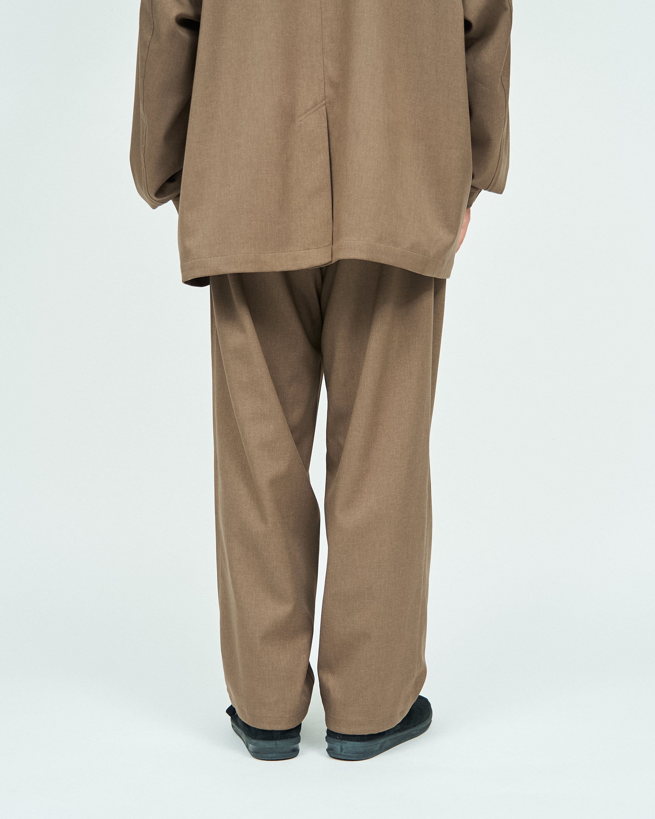 さらりとした肌触りで上品な光沢のあるテーパードトラウザー。ウールライクな印象ながら、ストレッチ性に優れ毛玉にもなりにくく家庭洗濯も可能にし た機能素材を使用。カ ジュアルセットアップとして、オンにもオフにも活用いただけます。単品使いでも、同素材で展開されるテーラードジャケットのセットアップ使いもおすすめ。裾にはドローコードを設けているので、スニーカー合わせにも最適なシルエットを楽しめます。