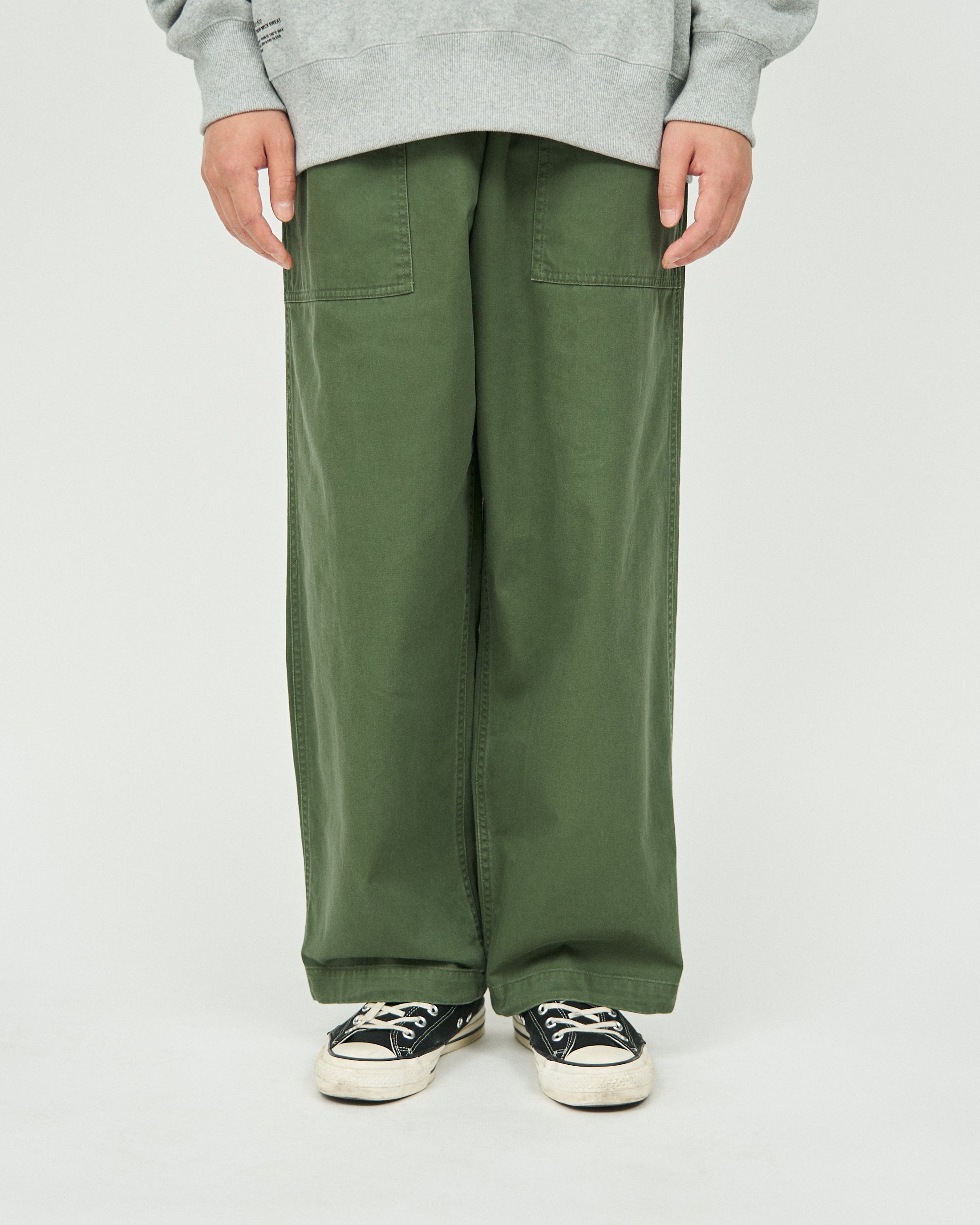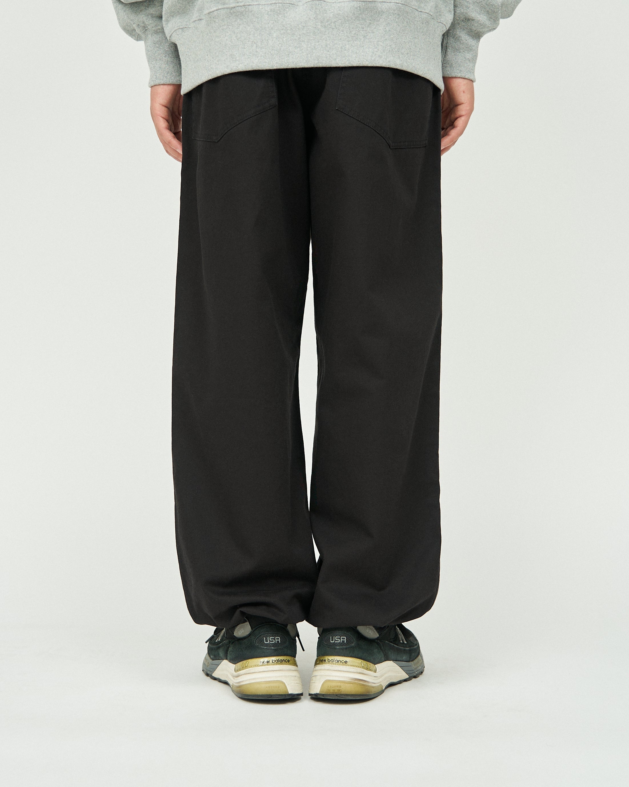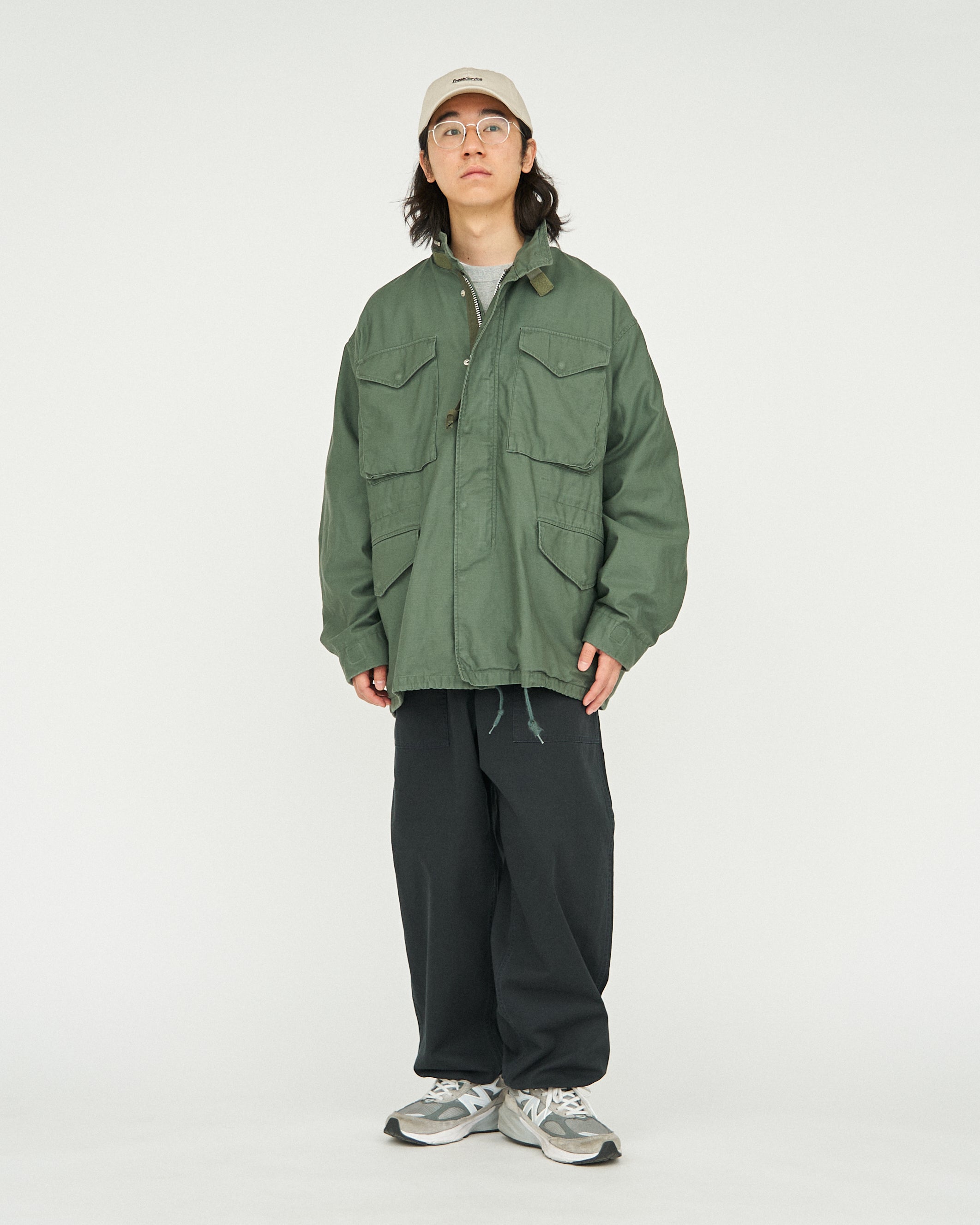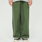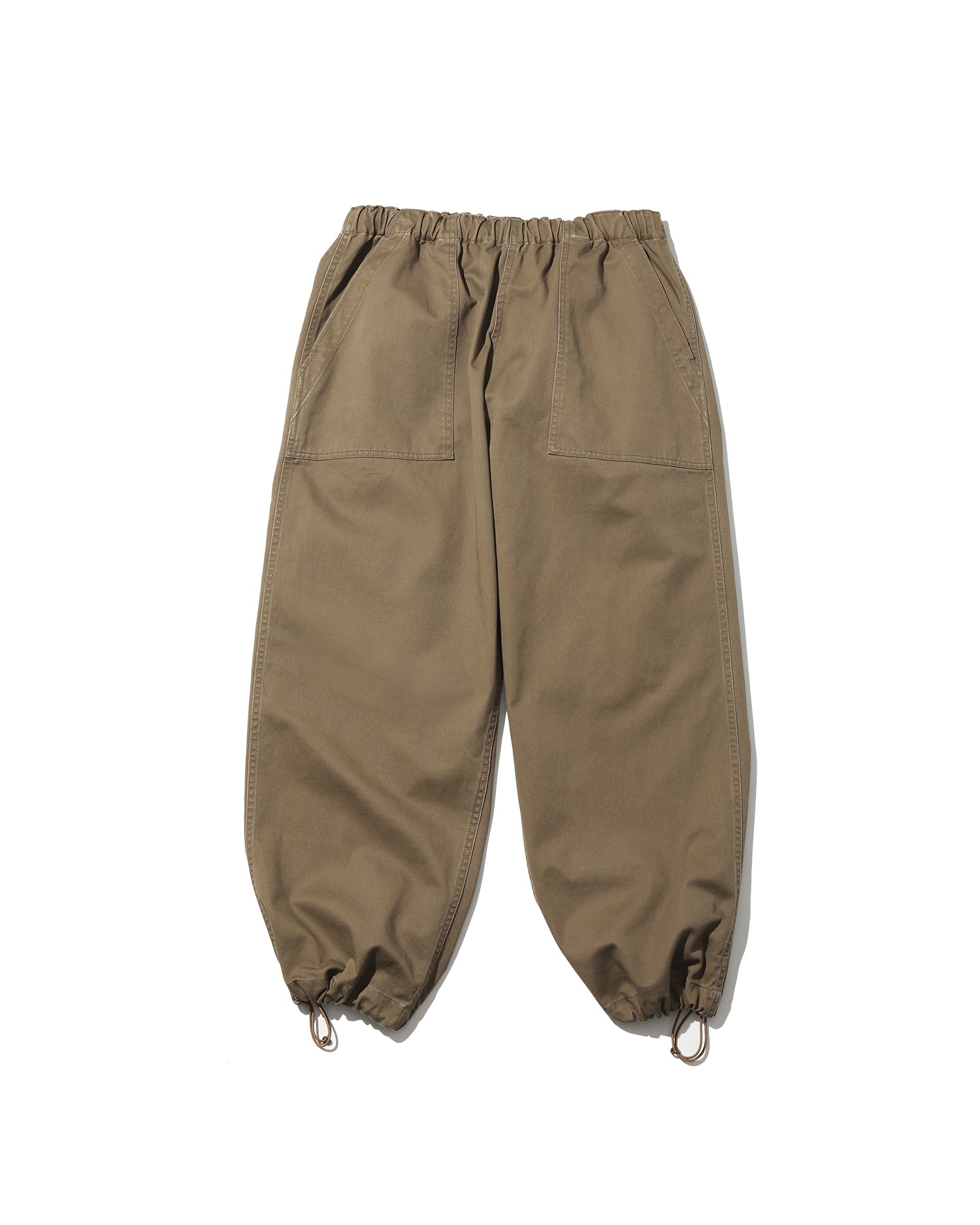 ミリタリーウェアとしてのタフな生地に長く使い込まれた風合いを表現した加工を加え、当時のディティールを再現。ボリュームのあるサイジングでウエストのみならず、裾にもドローコードを設けてありシルエットが調整出来る。