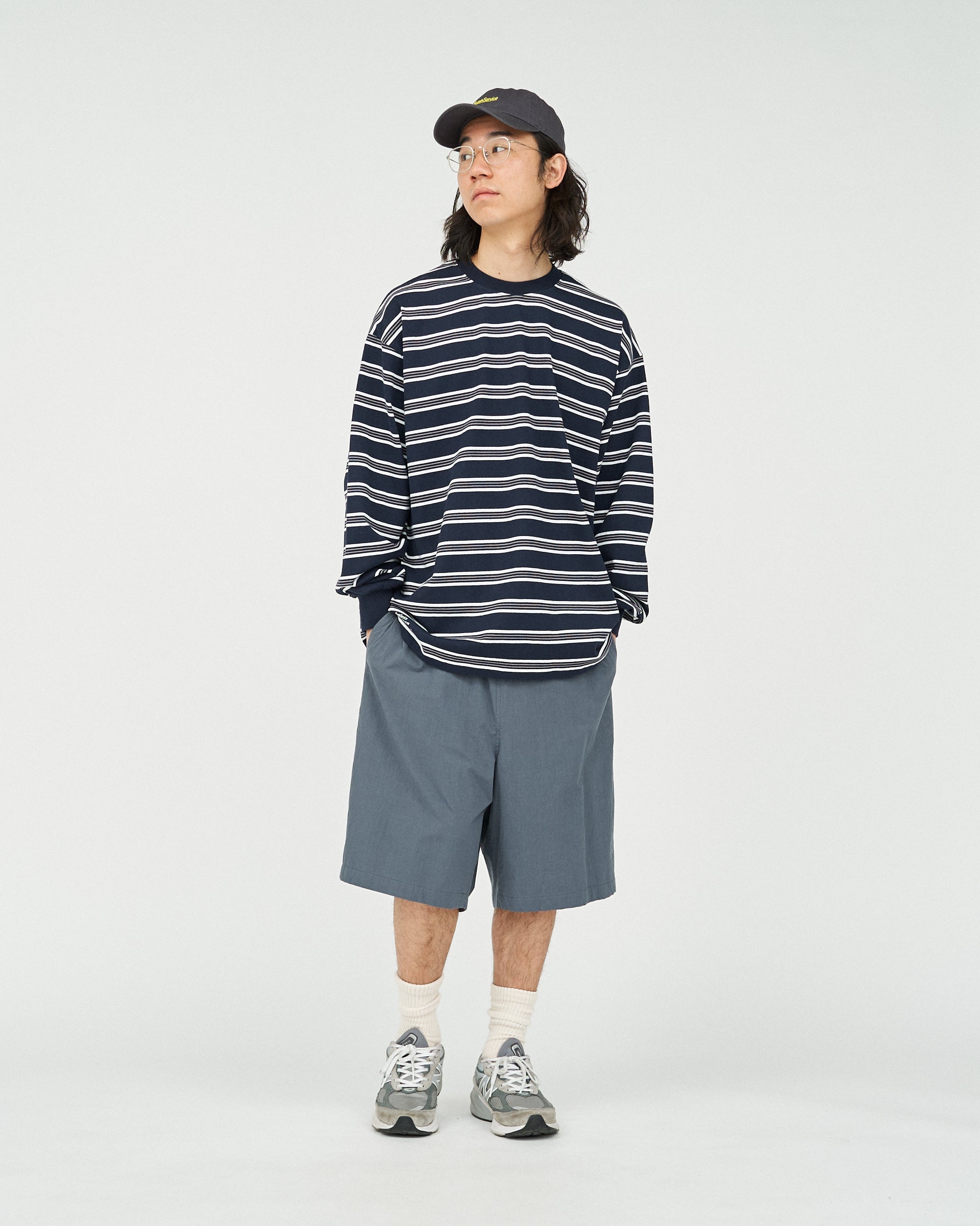 ベルトの先端にロゴを施したベルトが特徴のクライミングショーツ。素材には非常に軽く、汚れや摩擦にも強い独特のシワ感があるコットンポプリンを採用。裏地にメッシュを採用することで、肌あたりがよく快適な着心地を実現しました。ウエストにはFreshServiceらしいネオンイエローのループを配置。洗いざらした生地による褪せた風合いにより、一枚でこなれた雰囲気を演出する一本です。