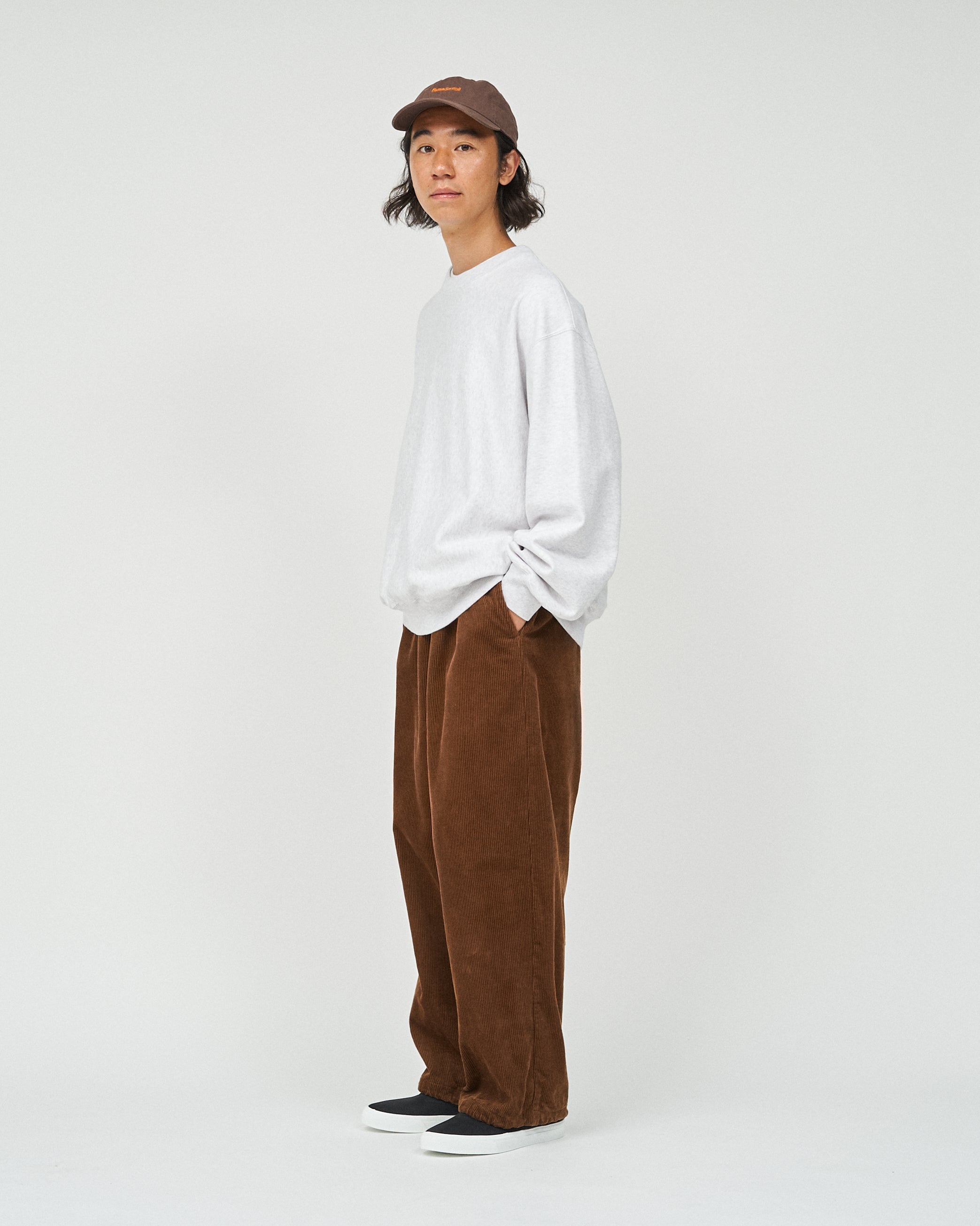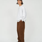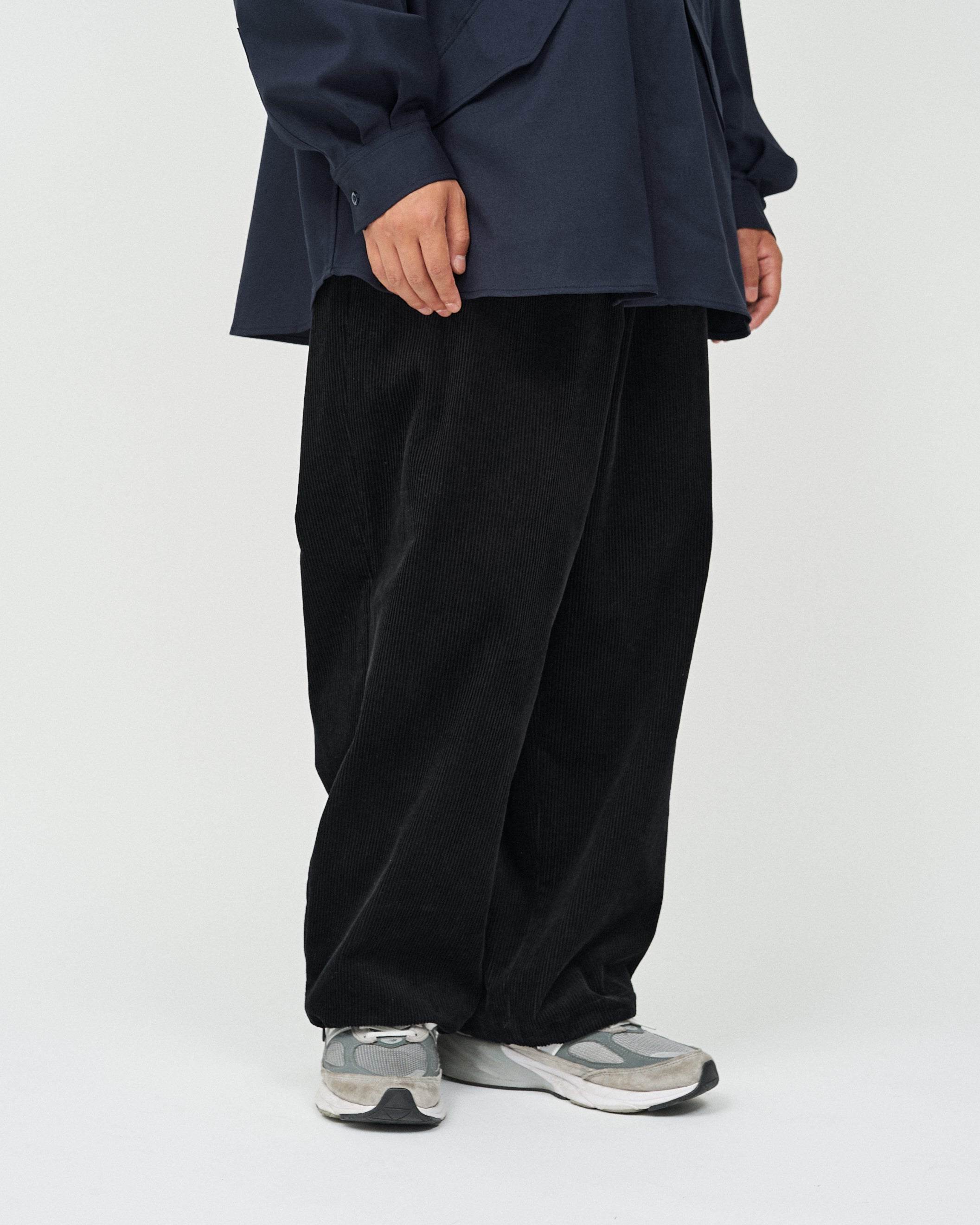 しなやかな質感が特徴のコットンコーデュロイを使用したリラックスシルエットのオーバーパンツ。ウエストのみならず、裾にもドローコードを設けてありシルエットを調整出来る。シンプルで実用的なデザインが特徴の一着。