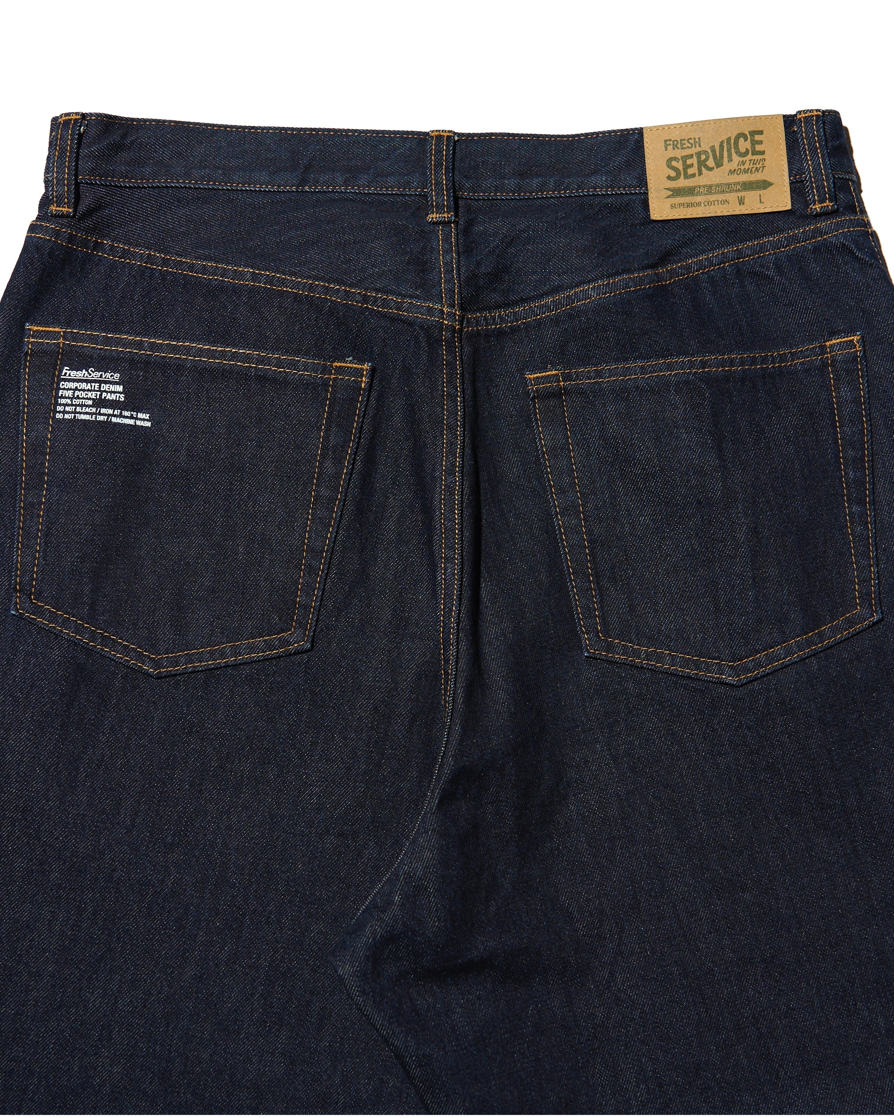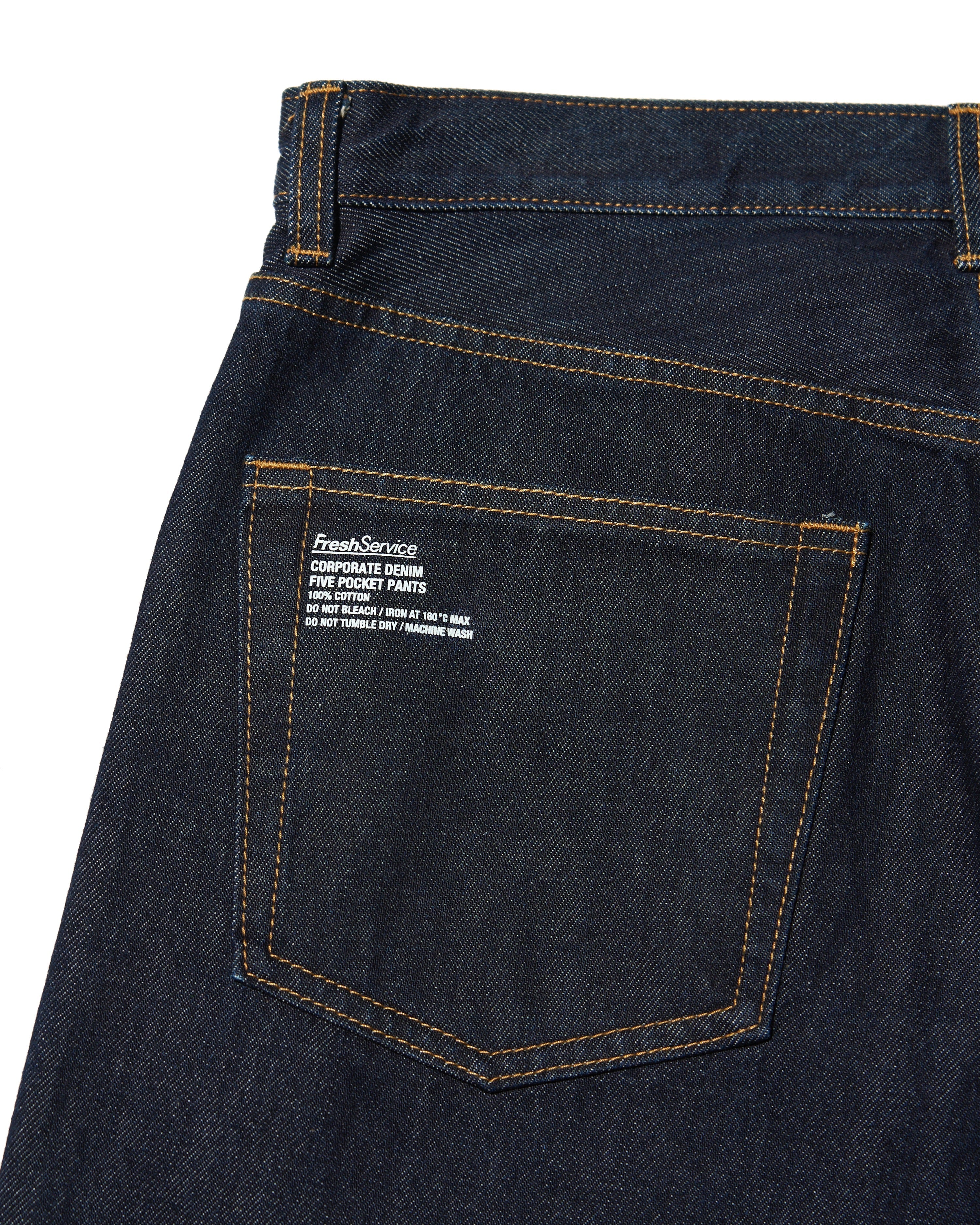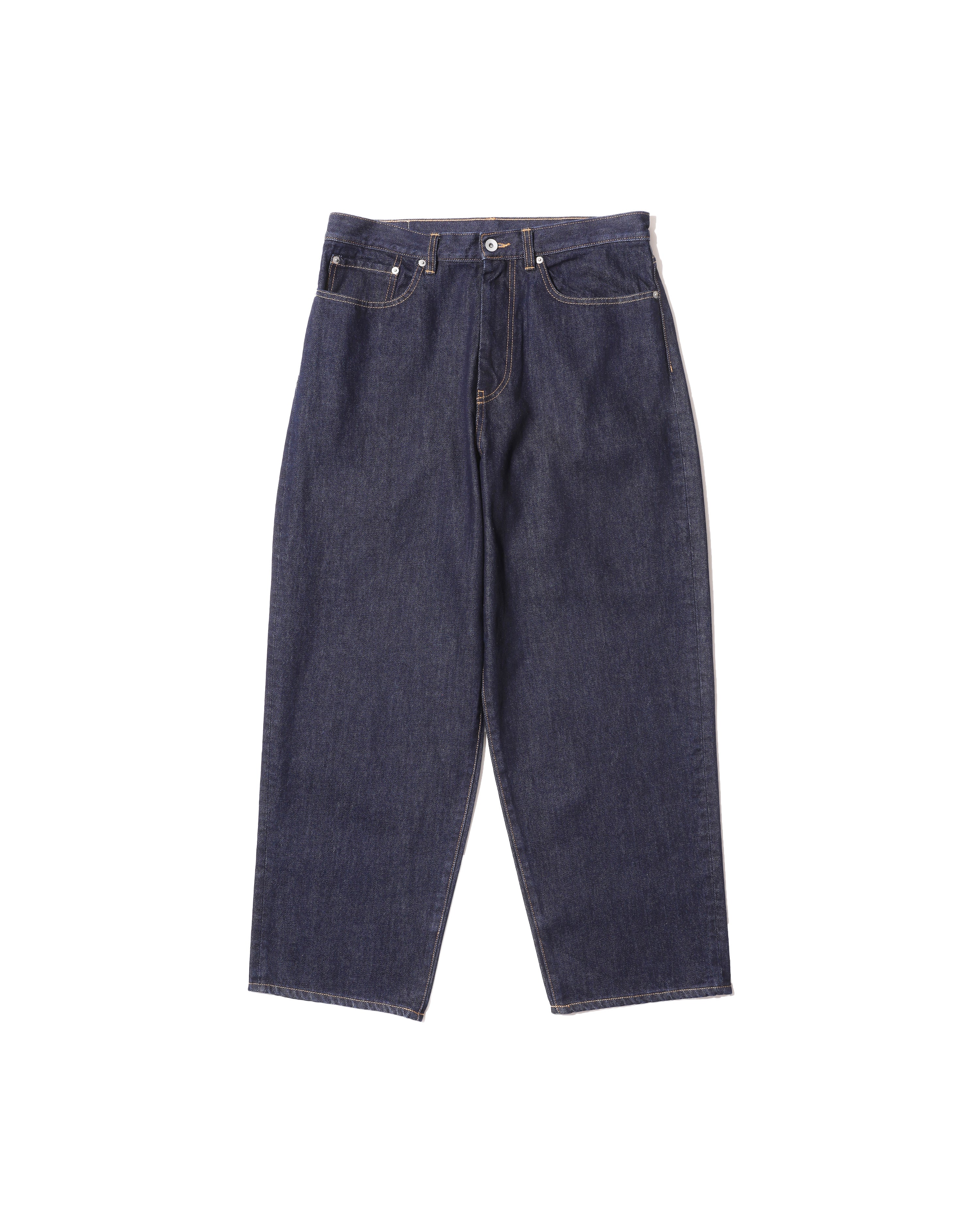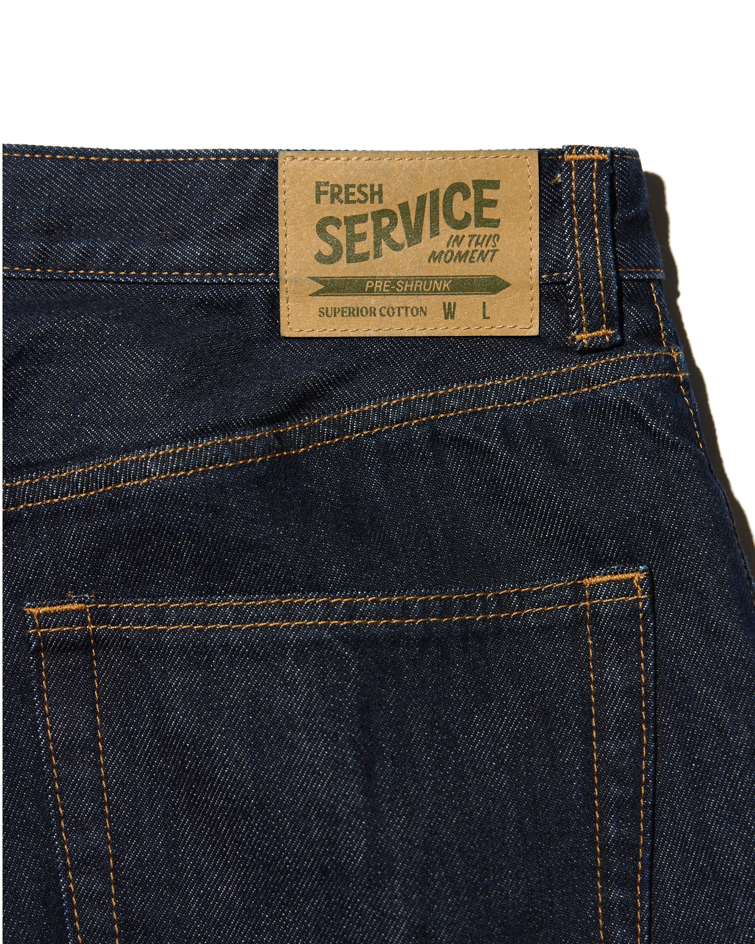 スタンダードなファイブポケットジーンズをFreshServiceらしくアップデート。穿き込むほどに表情を深める13.5ozのヘビーオンスデニムを採用し、腰まわりにボリュームを持たせ、裾に向かって緩やかにテーパードしたワイドなシルエットが特徴。同素材で展開されるCORPORATE DENIM ENGINEER JACKETとのセットアップもおすすめ。