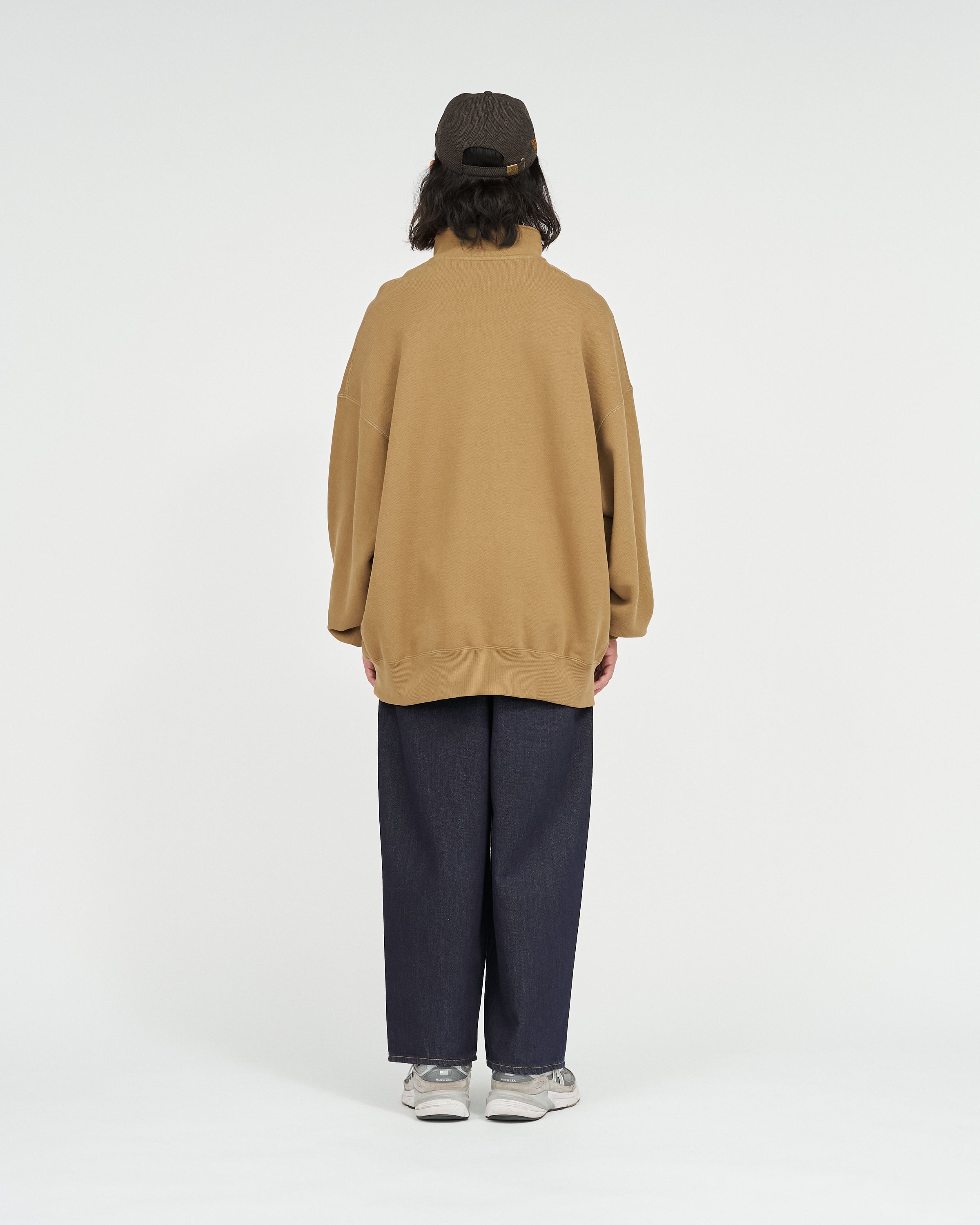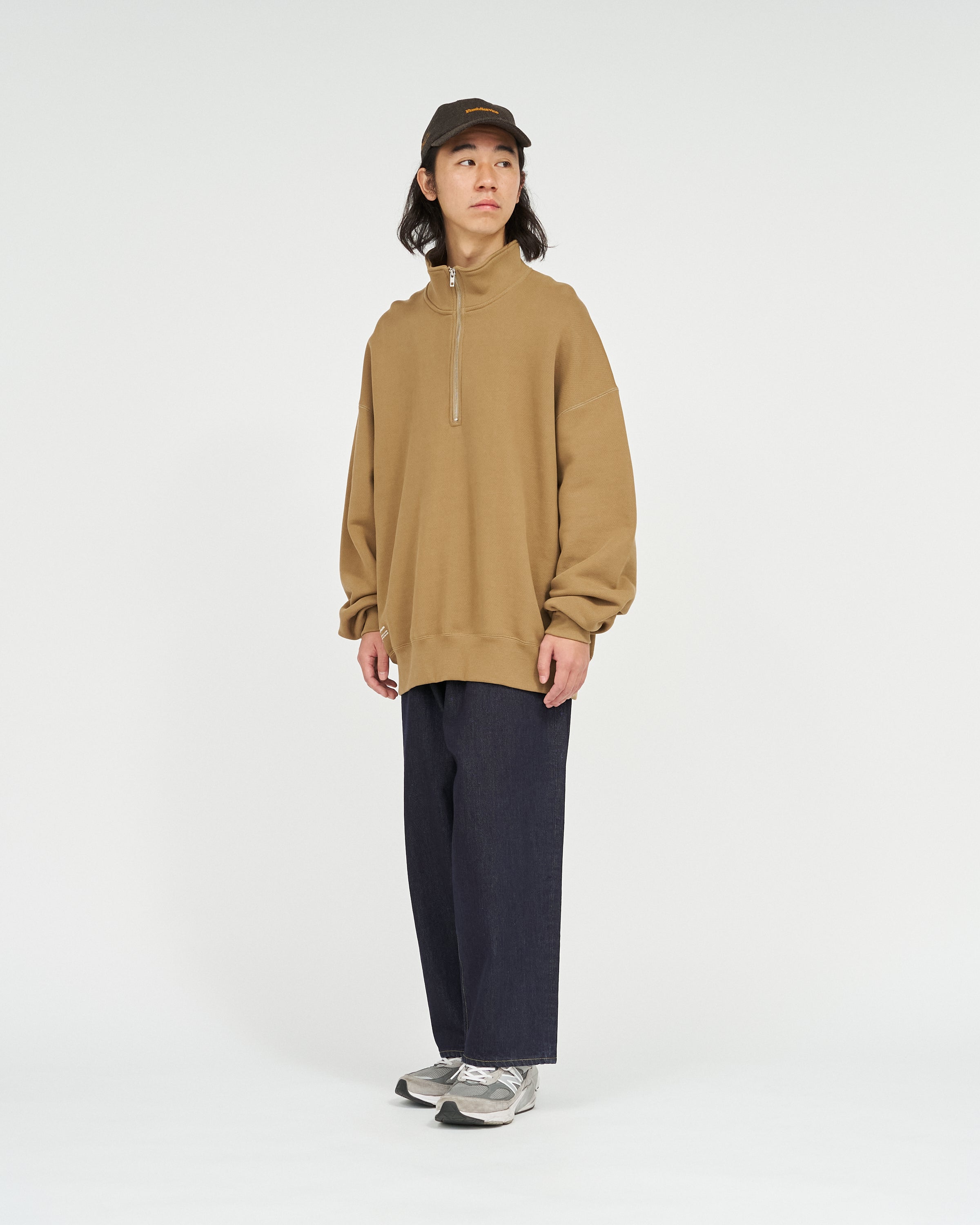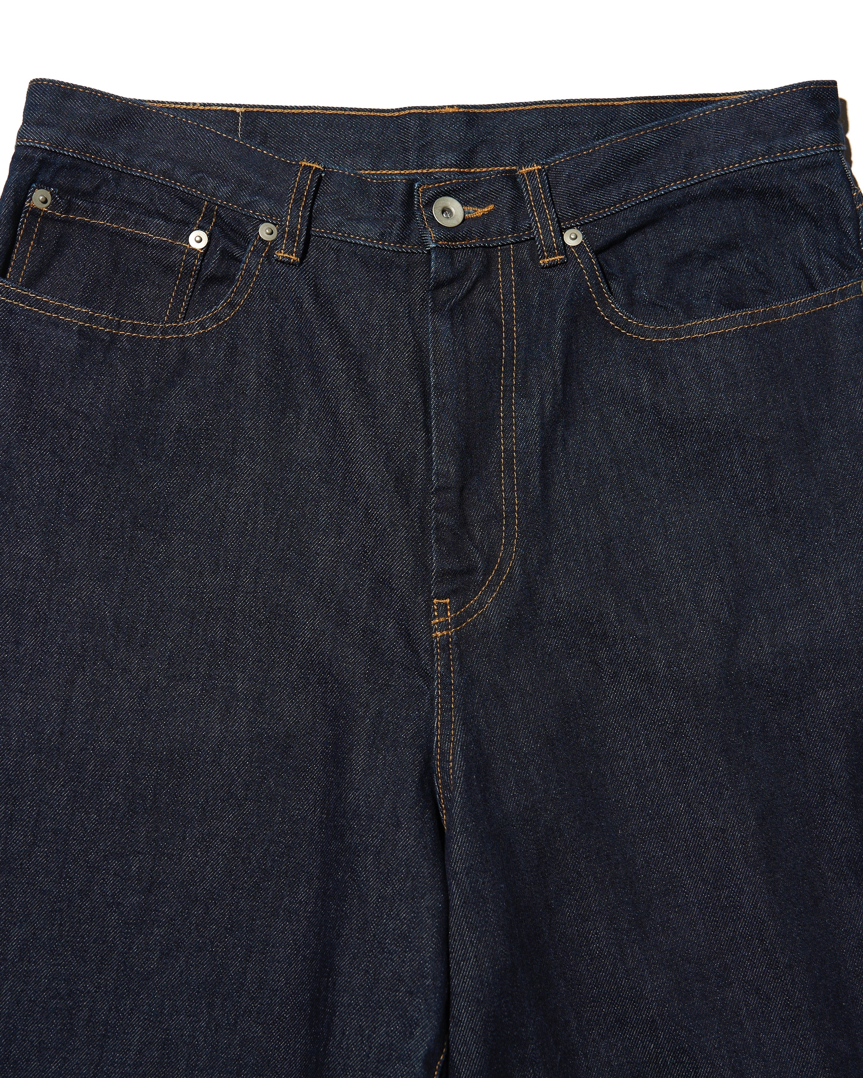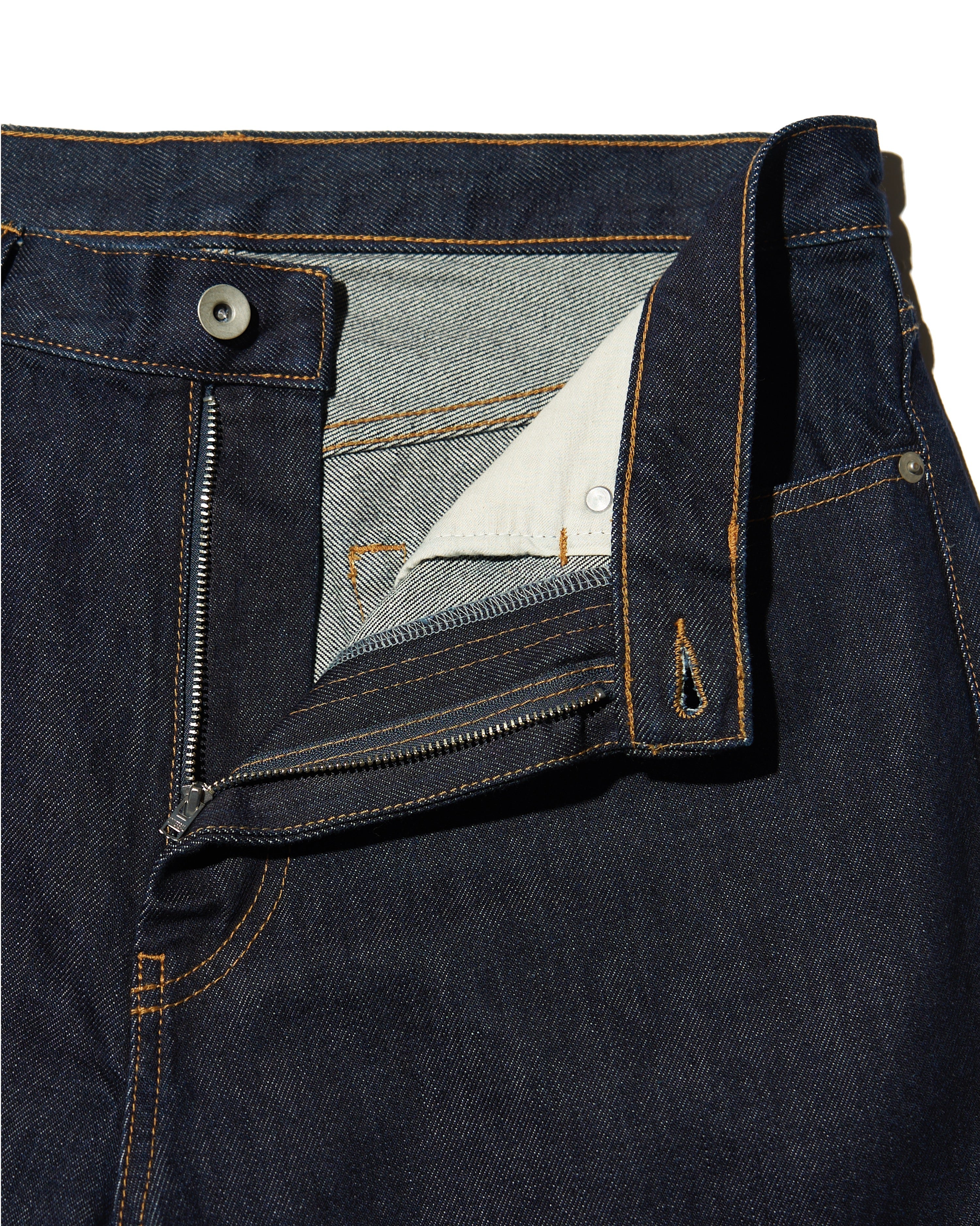 スタンダードなファイブポケットジーンズをFreshServiceらしくアップデート。穿き込むほどに表情を深める13.5ozのヘビーオンスデニムを採用し、腰まわりにボリュームを持たせ、裾に向かって緩やかにテーパードしたワイドなシルエットが特徴。同素材で展開されるCORPORATE DENIM ENGINEER JACKETとのセットアップもおすすめ。