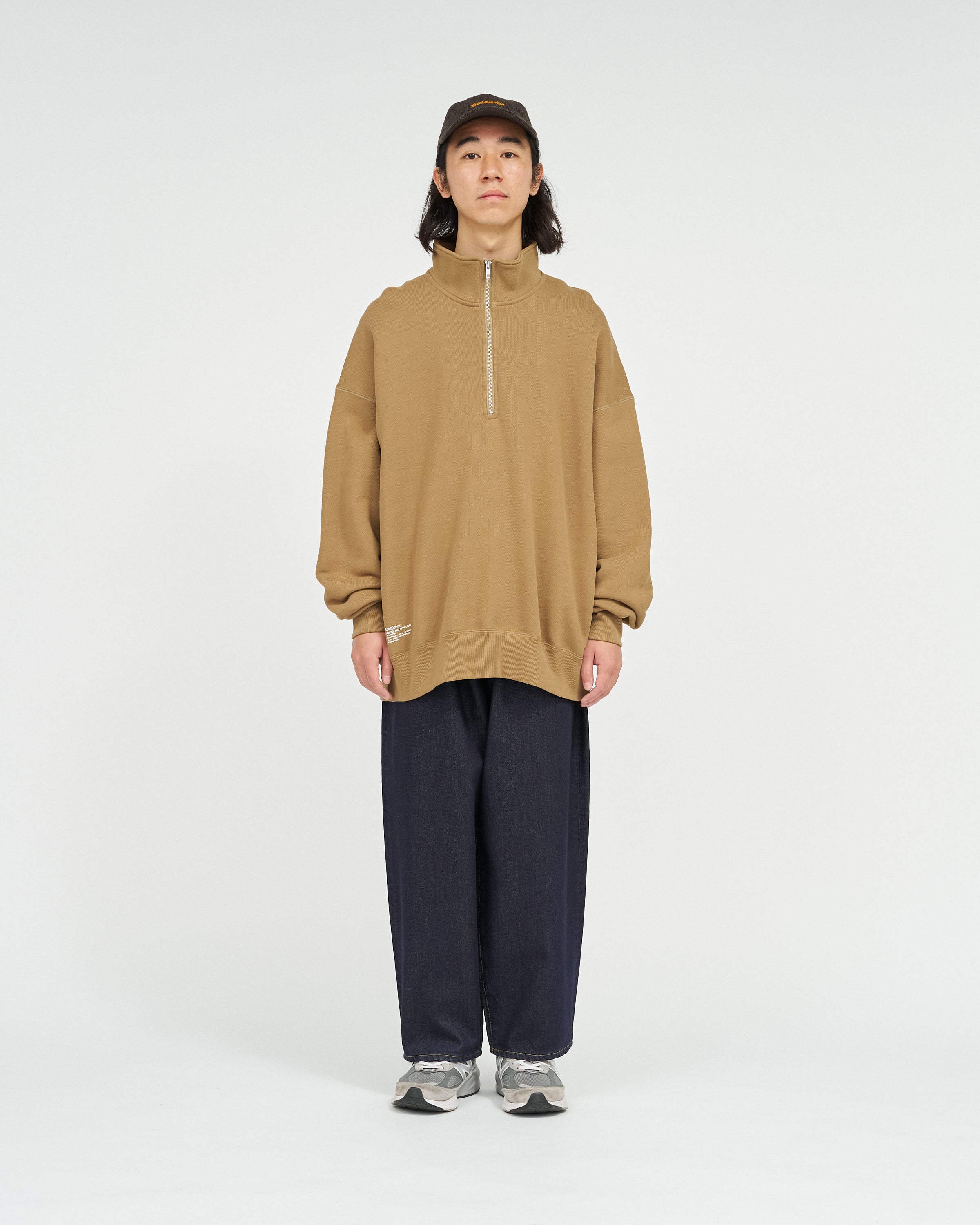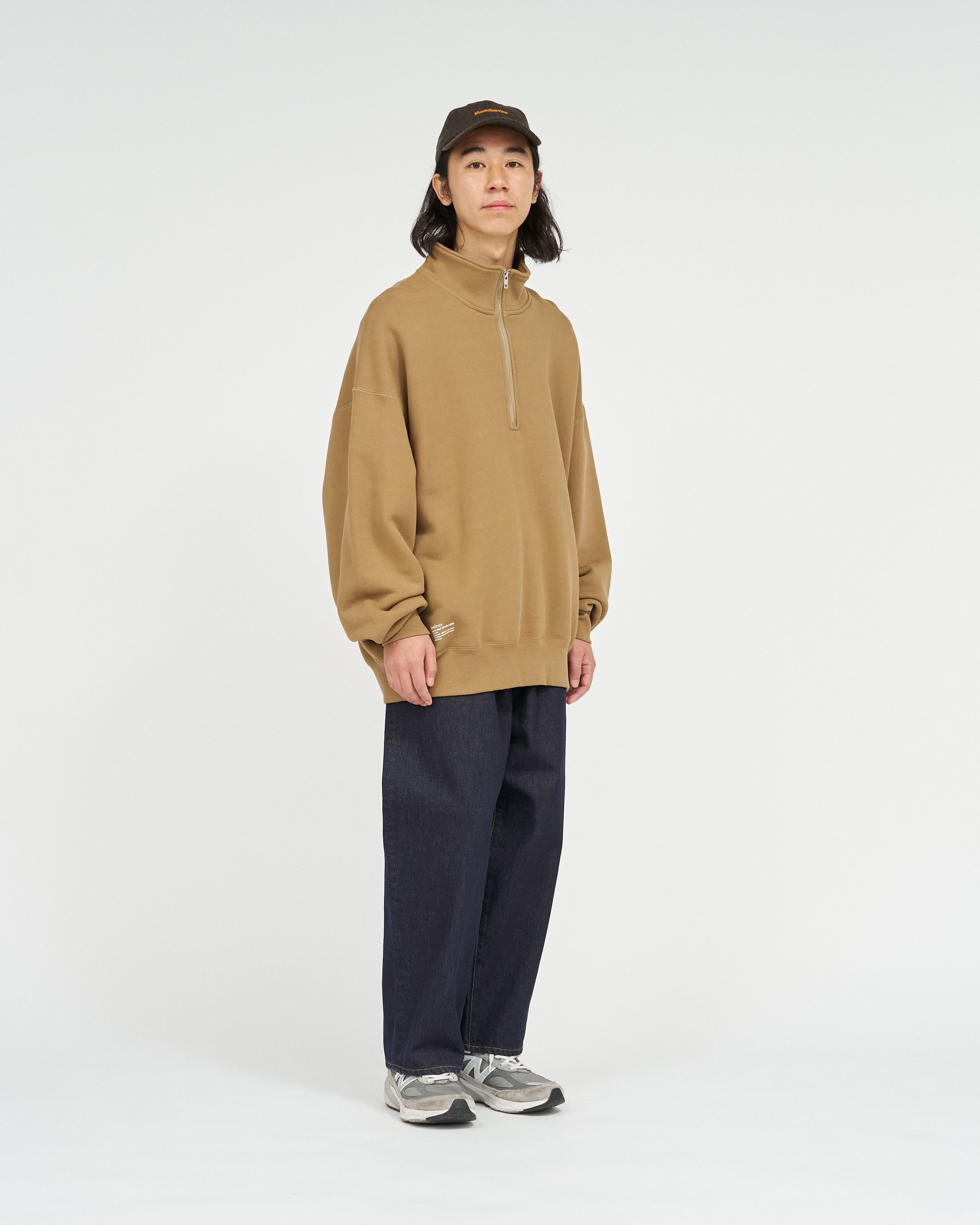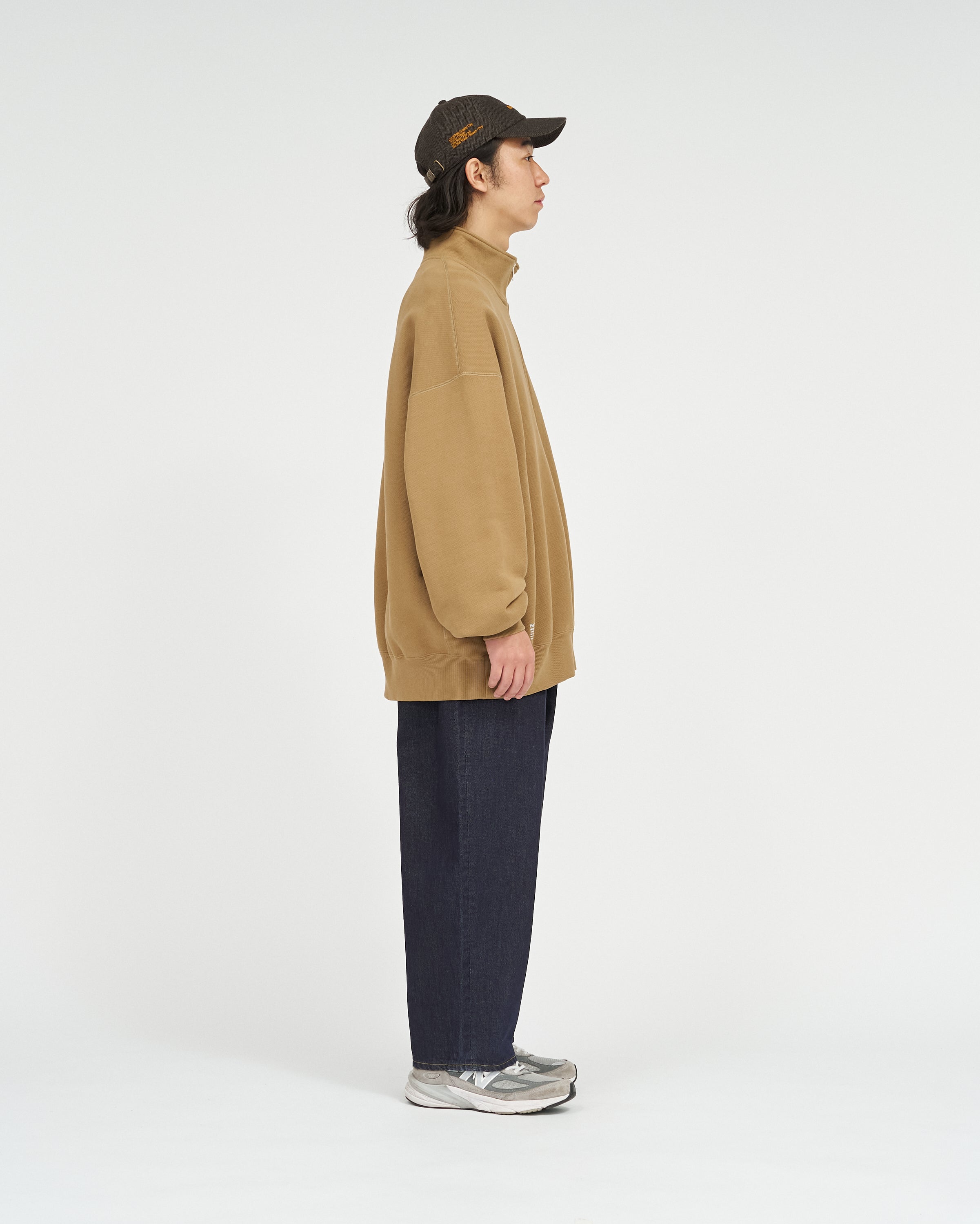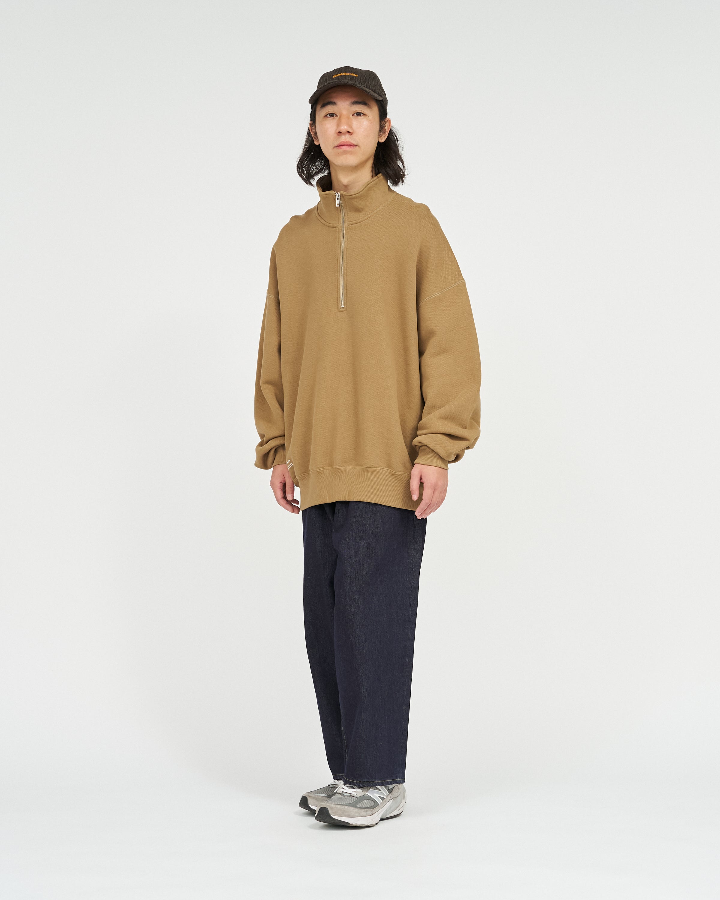 スタンダードなファイブポケットジーンズをFreshServiceらしくアップデート。穿き込むほどに表情を深める13.5ozのヘビーオンスデニムを採用し、腰まわりにボリュームを持たせ、裾に向かって緩やかにテーパードしたワイドなシルエットが特徴。同素材で展開されるCORPORATE DENIM ENGINEER JACKETとのセットアップもおすすめ。