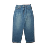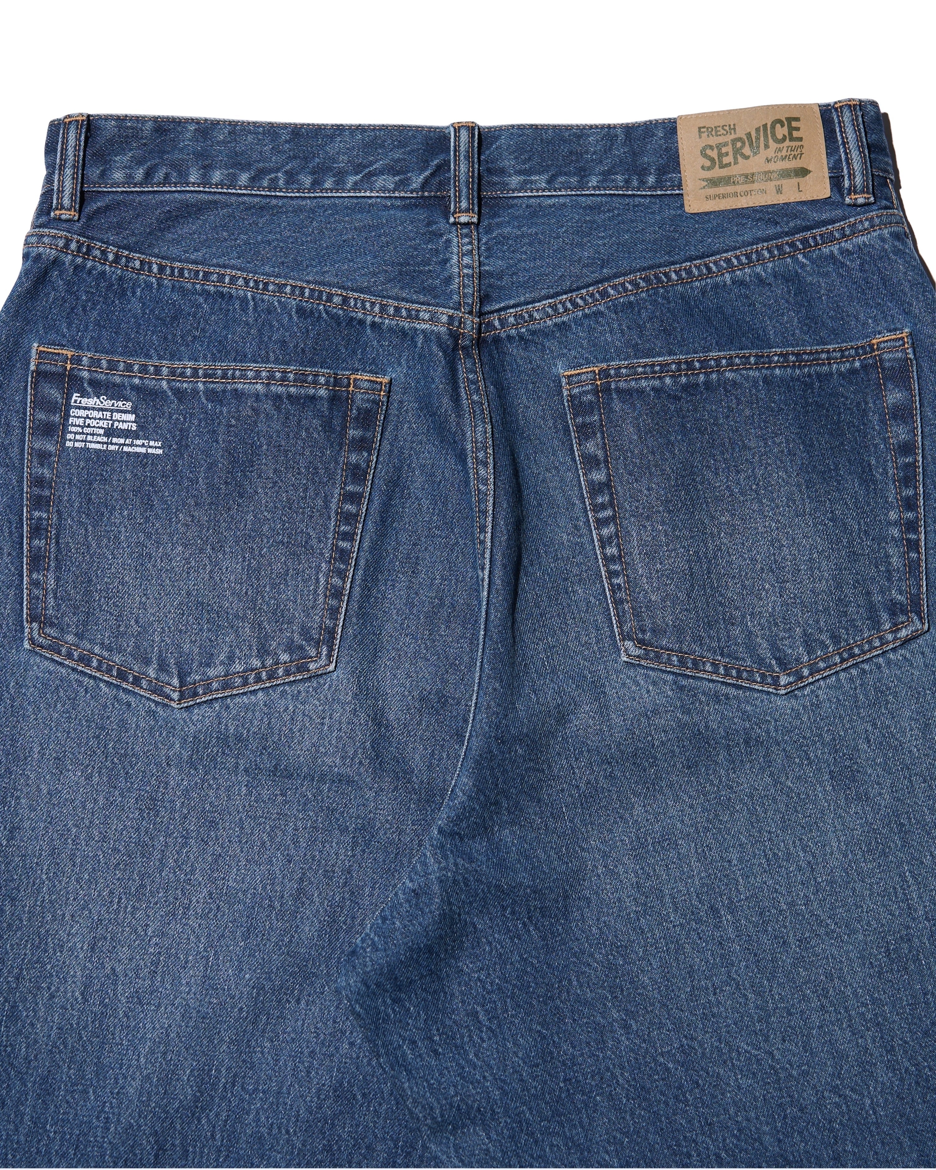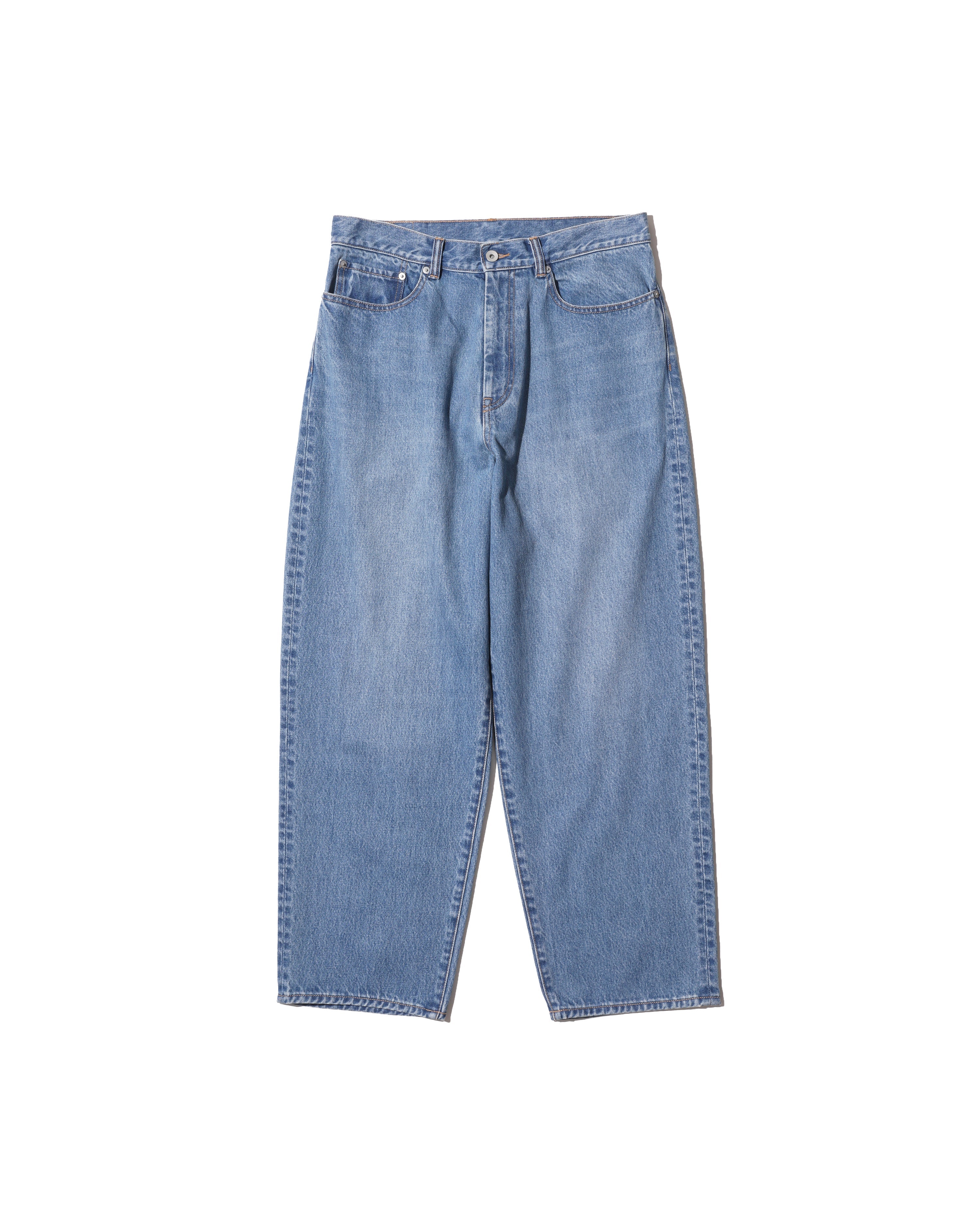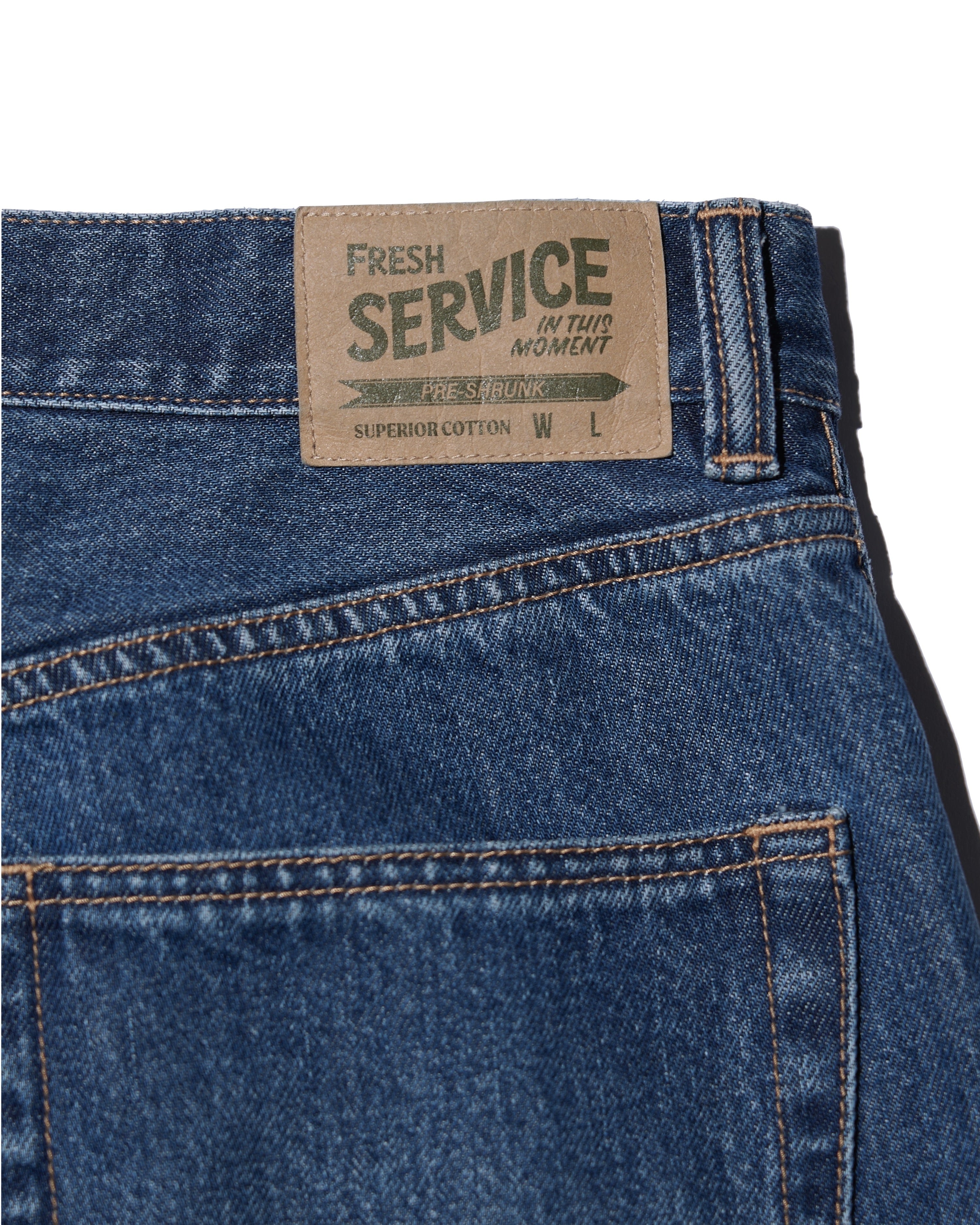 スタンダードなファイブポケットジーンズをFreshServiceらしくアップデート。穿き込むほどに表情を深める13.5ozのヘビーオンスデニムを採用し、腰まわりにボリュームを持たせ、裾に向かって緩やかにテーパードしたワイドなシルエットが特徴。同素材で展開されるCORPORATE DENIM ENGINEER JACKETとのセットアップもおすすめ。