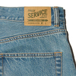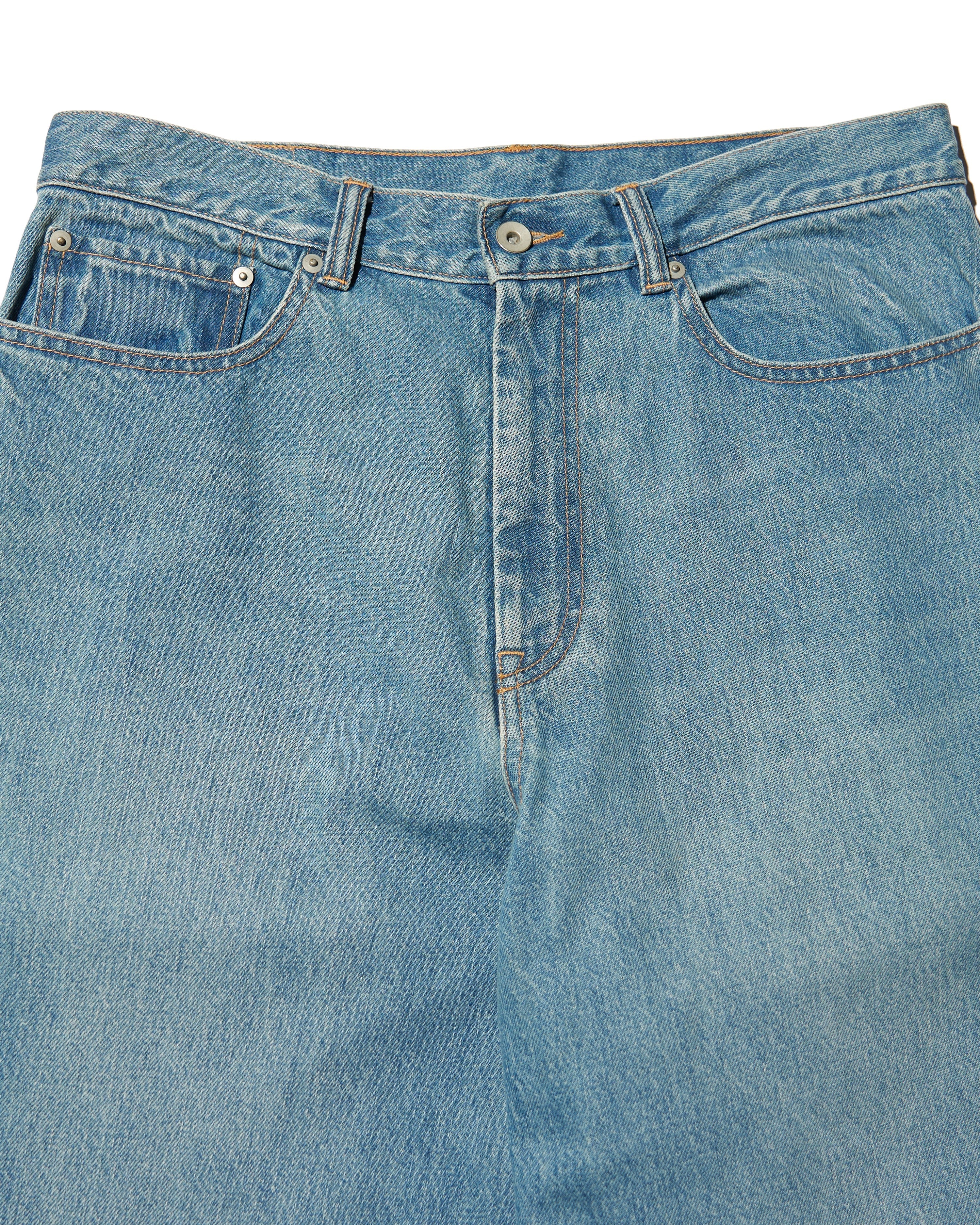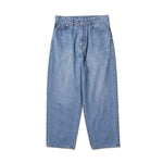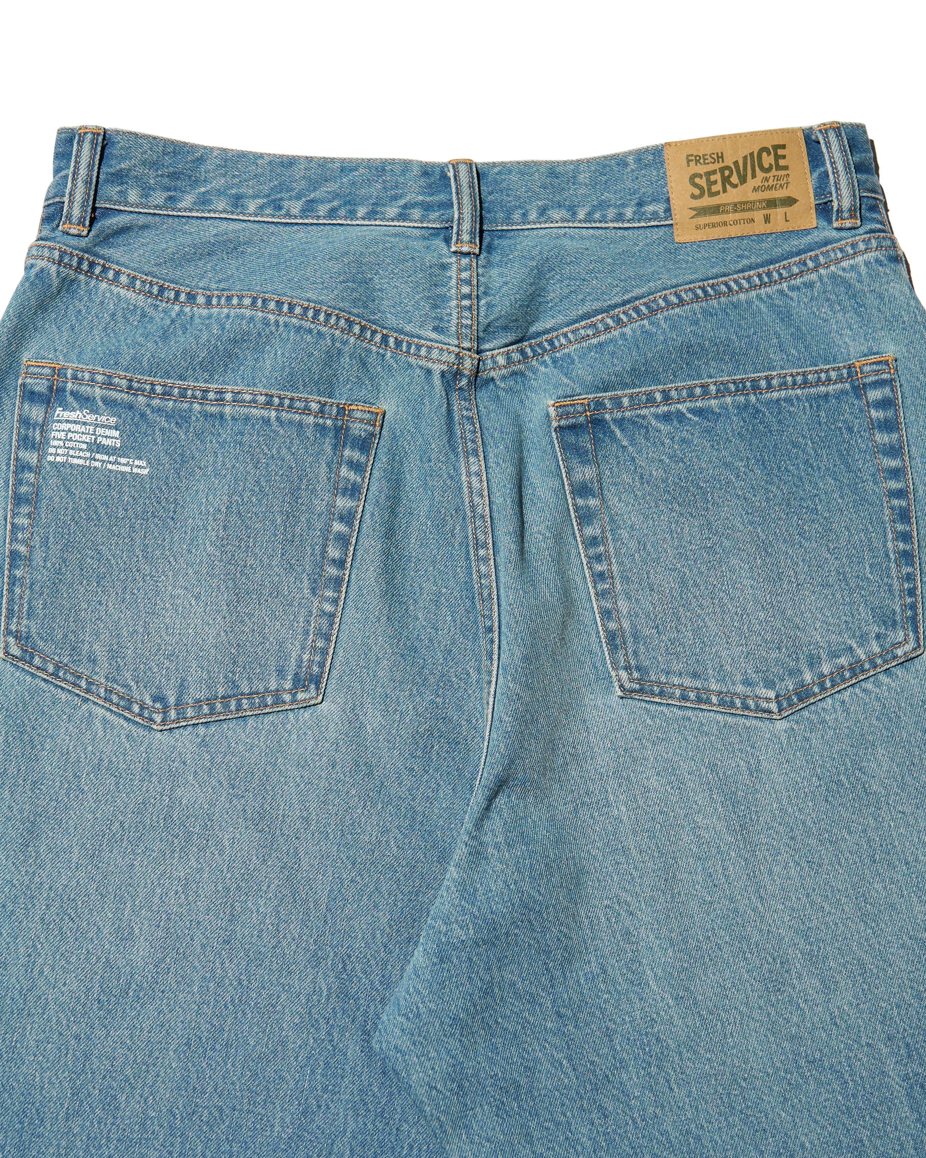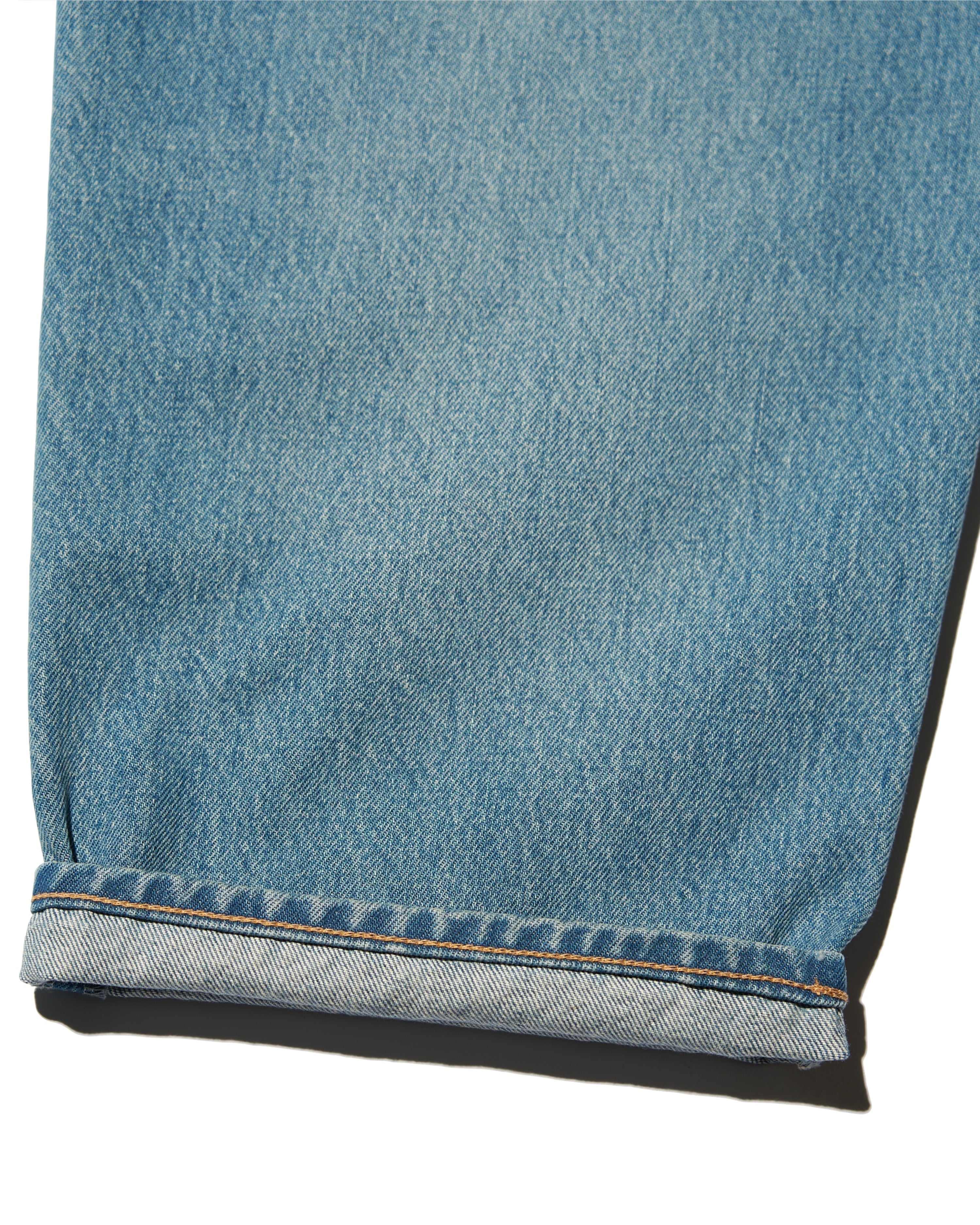 スタンダードなファイブポケットジーンズをFreshServiceらしくアップデート。穿き込むほどに表情を深める13.5ozのヘビーオンスデニムを採用し、腰まわりにボリュームを持たせ、裾に向かって緩やかにテーパードしたワイドなシルエットが特徴。同素材で展開されるCORPORATE DENIM ENGINEER JACKETとのセットアップもおすすめ。