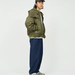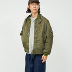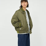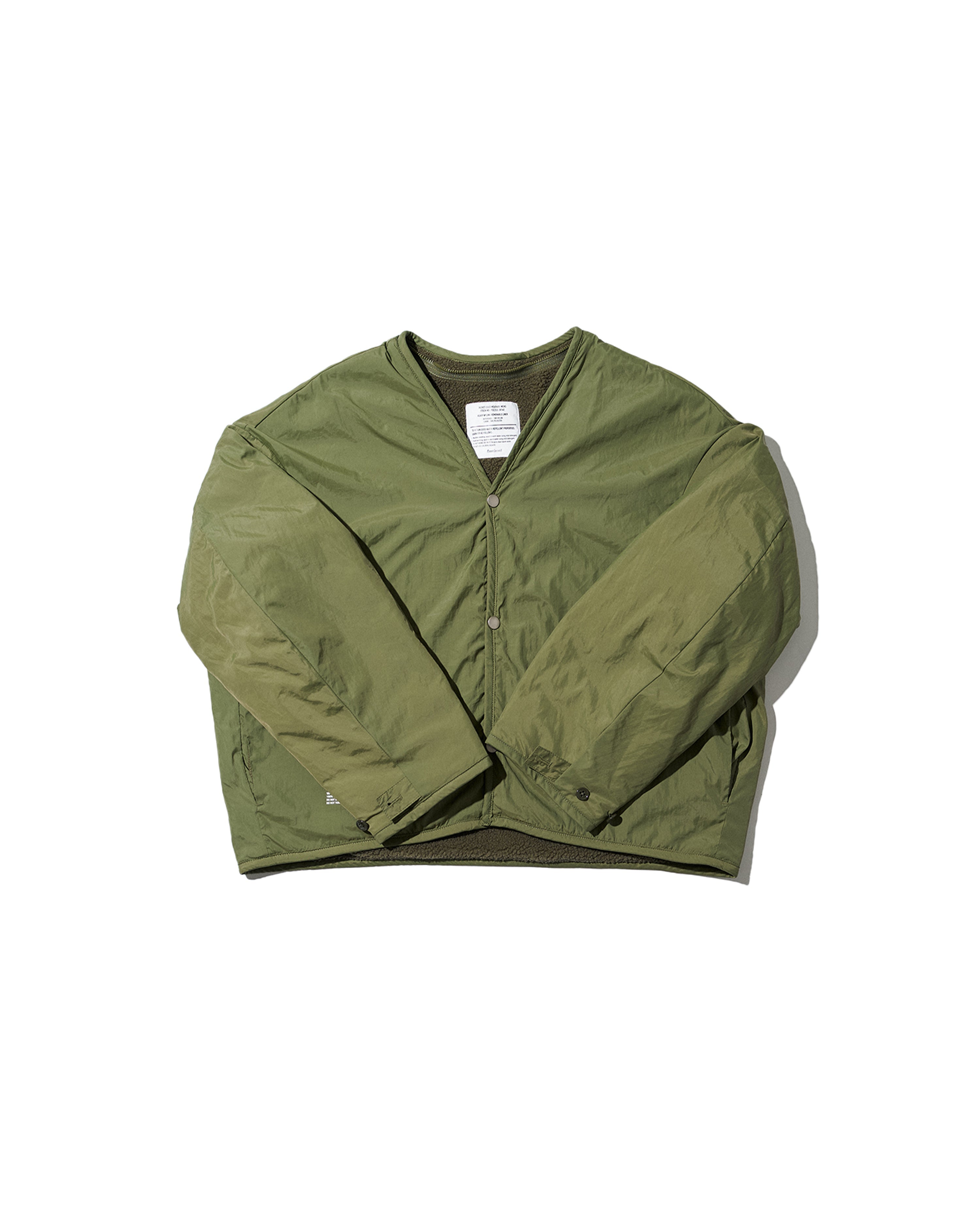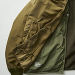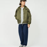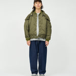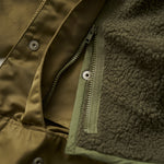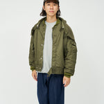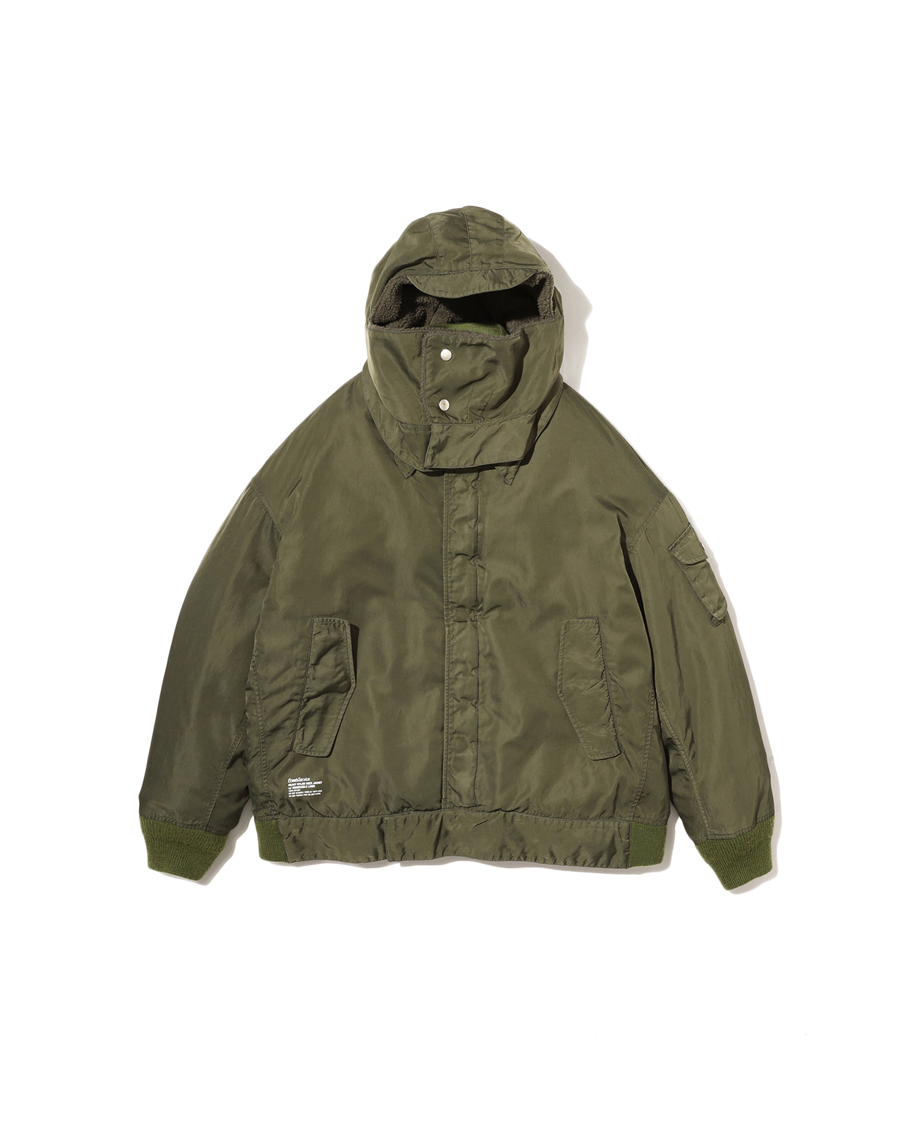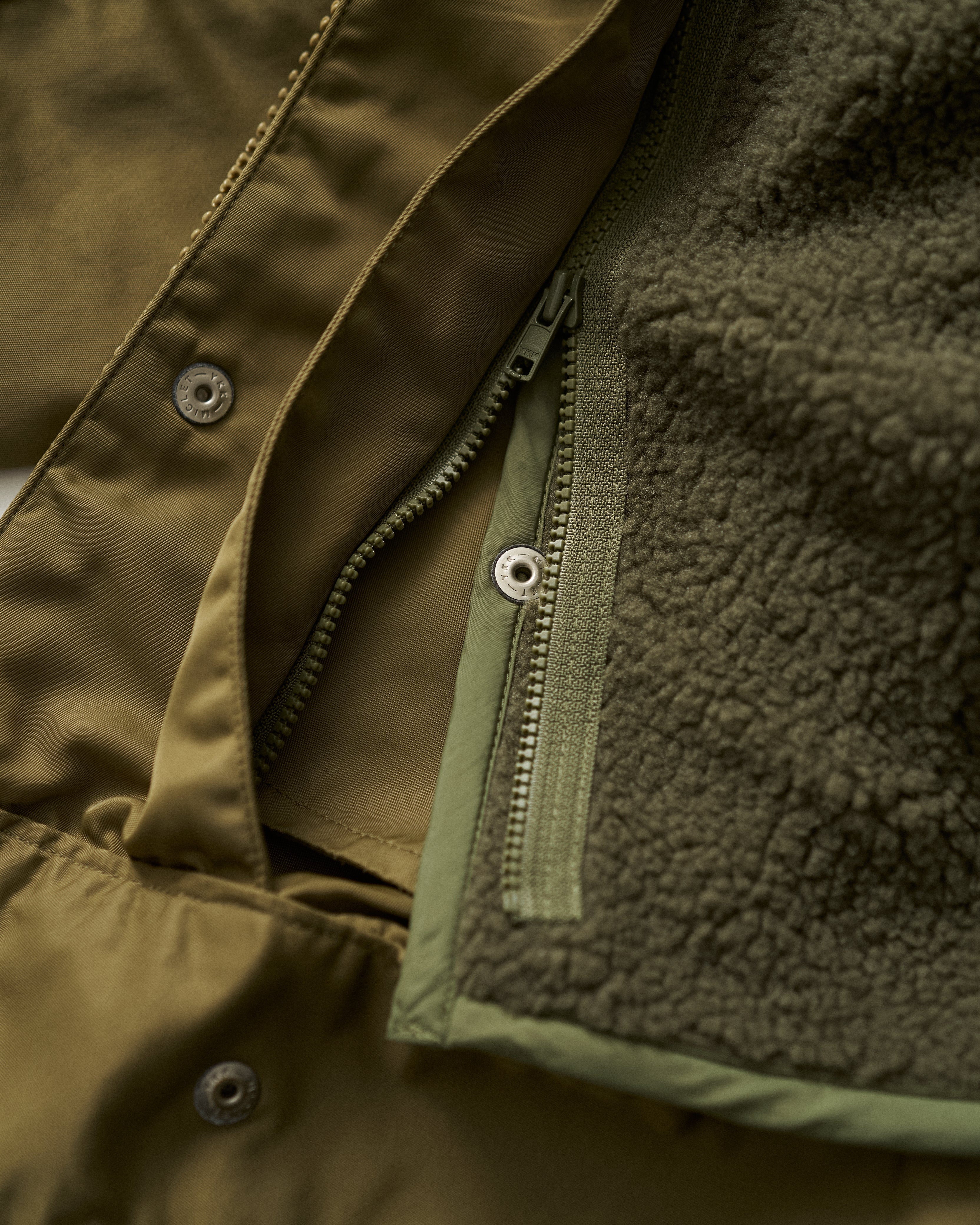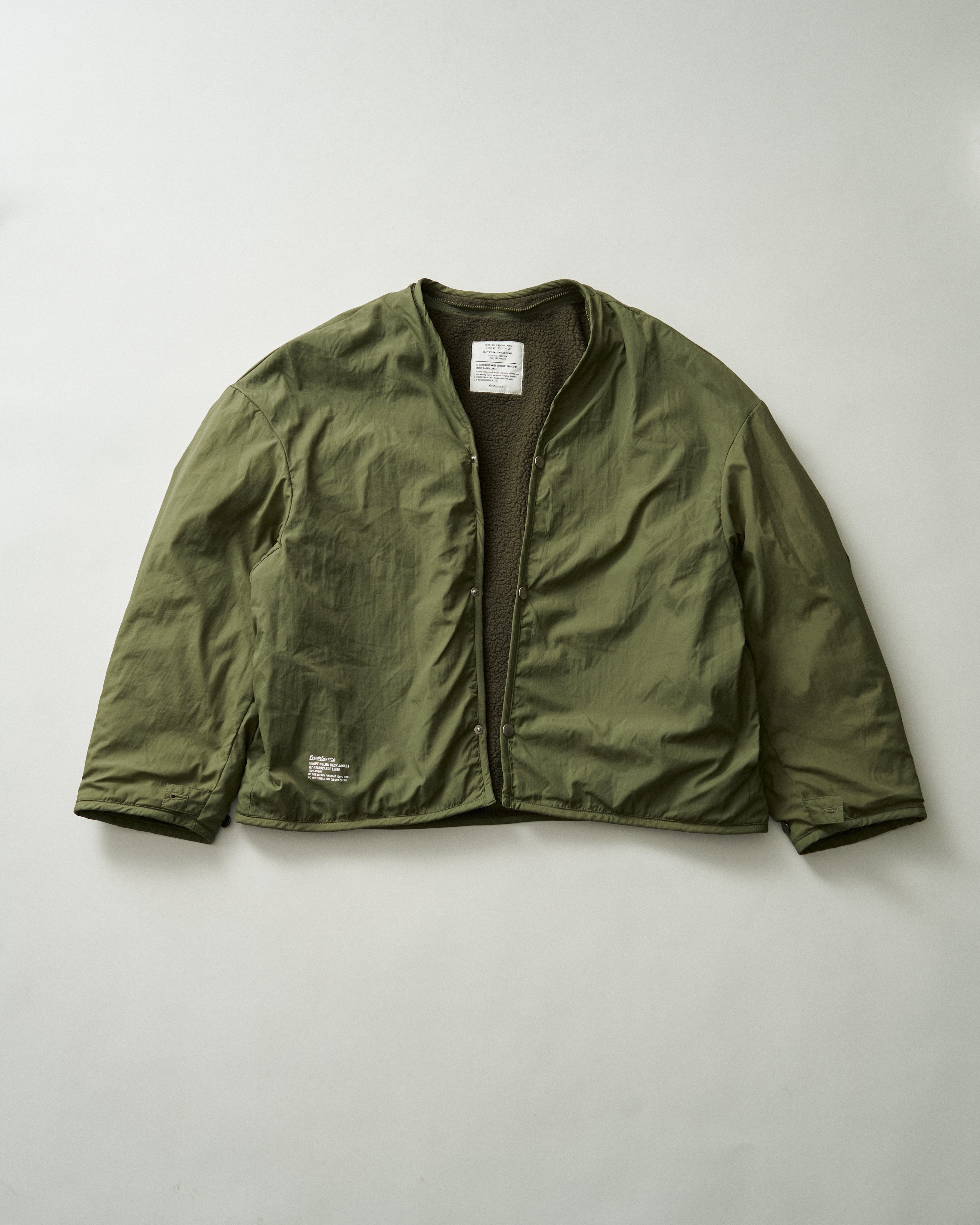 往年のU.S.デッキジャケットをモチーフに、ドロップショルダーでゆったりとしたシルエットへと再構築した一着。タフな生地感に長年着込んだような風合いを表現する加工を施し、当時のディテールを現代的に再現しています。フードとライニングはどちらも着脱可能で、季節やスタイルに応じてアレンジが可能。表地には耐久性の高いフライトナイロンツイルを用い、ライニングにはボリューム感のあるボアフリースを採用しています。ライニングは単体でも着用できるため、幅広いシーンで活躍し、長いシーズンを通して楽しめる仕様です。