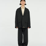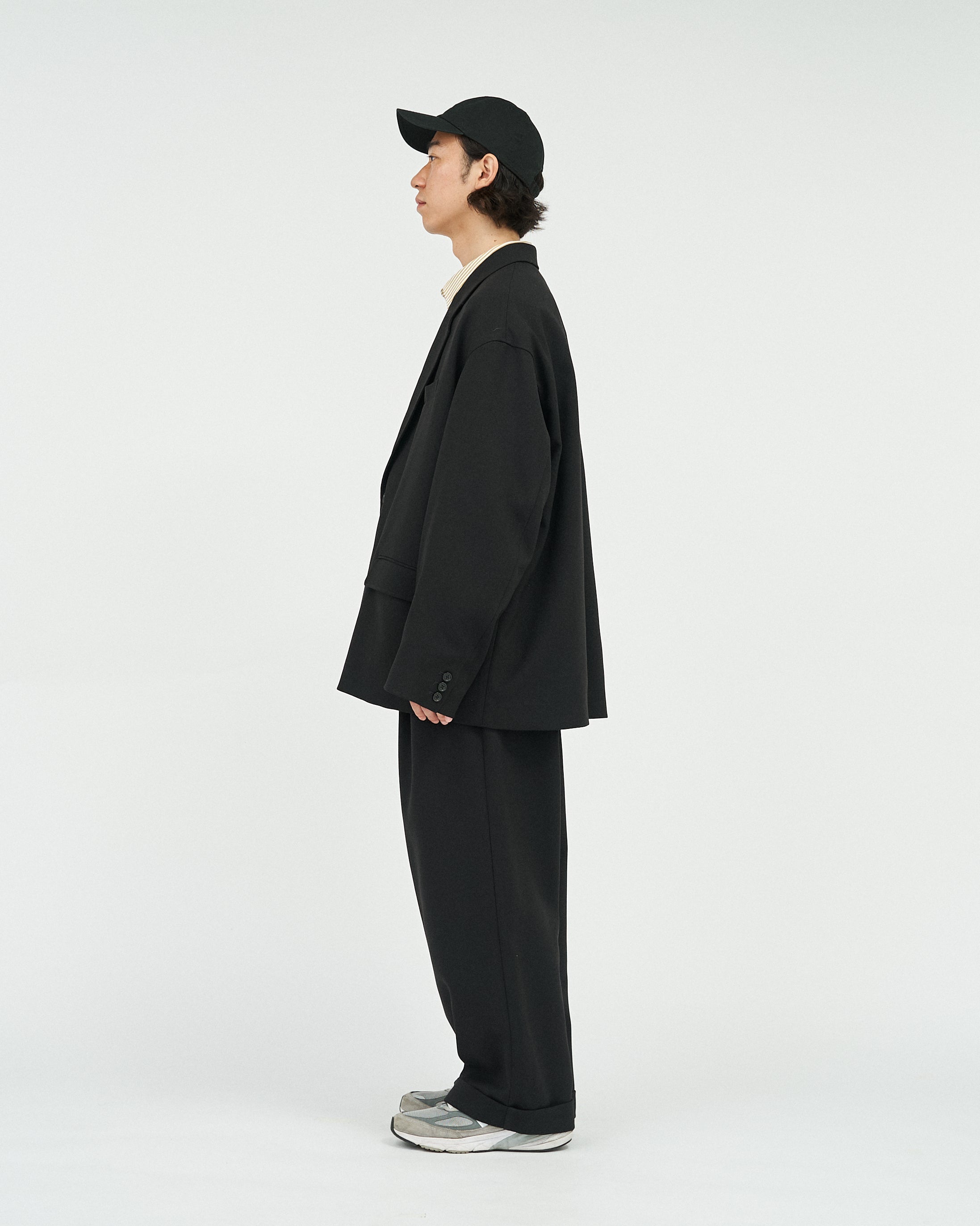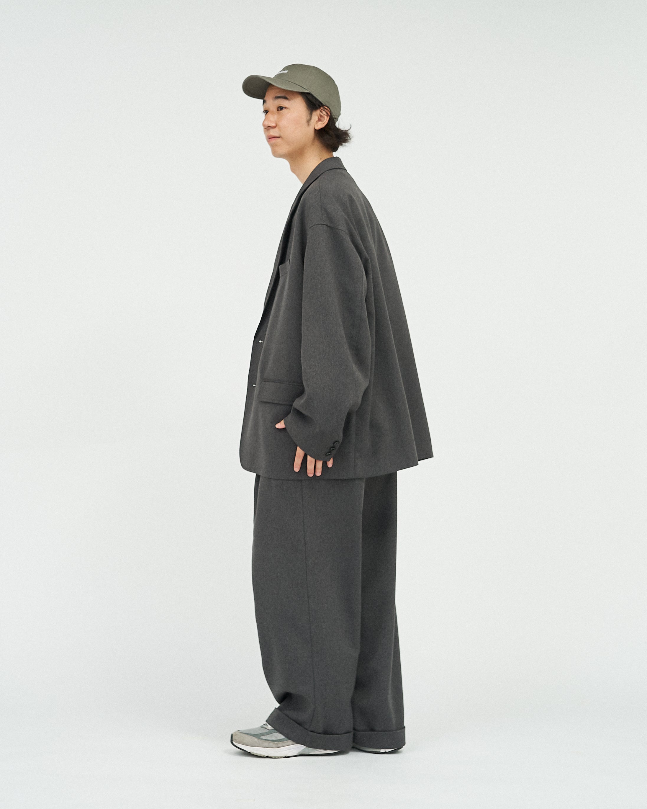 ゆったりとしたシルエットのテーラードジャケット。内側にはクラシカルな内ポケットのディティールを搭載。裏地にメッシュを施す事により通気性も抜群。ウールのような風合いのソロテックスフルフラン生地を使用しクラシカルとモダンが融合した一着。
