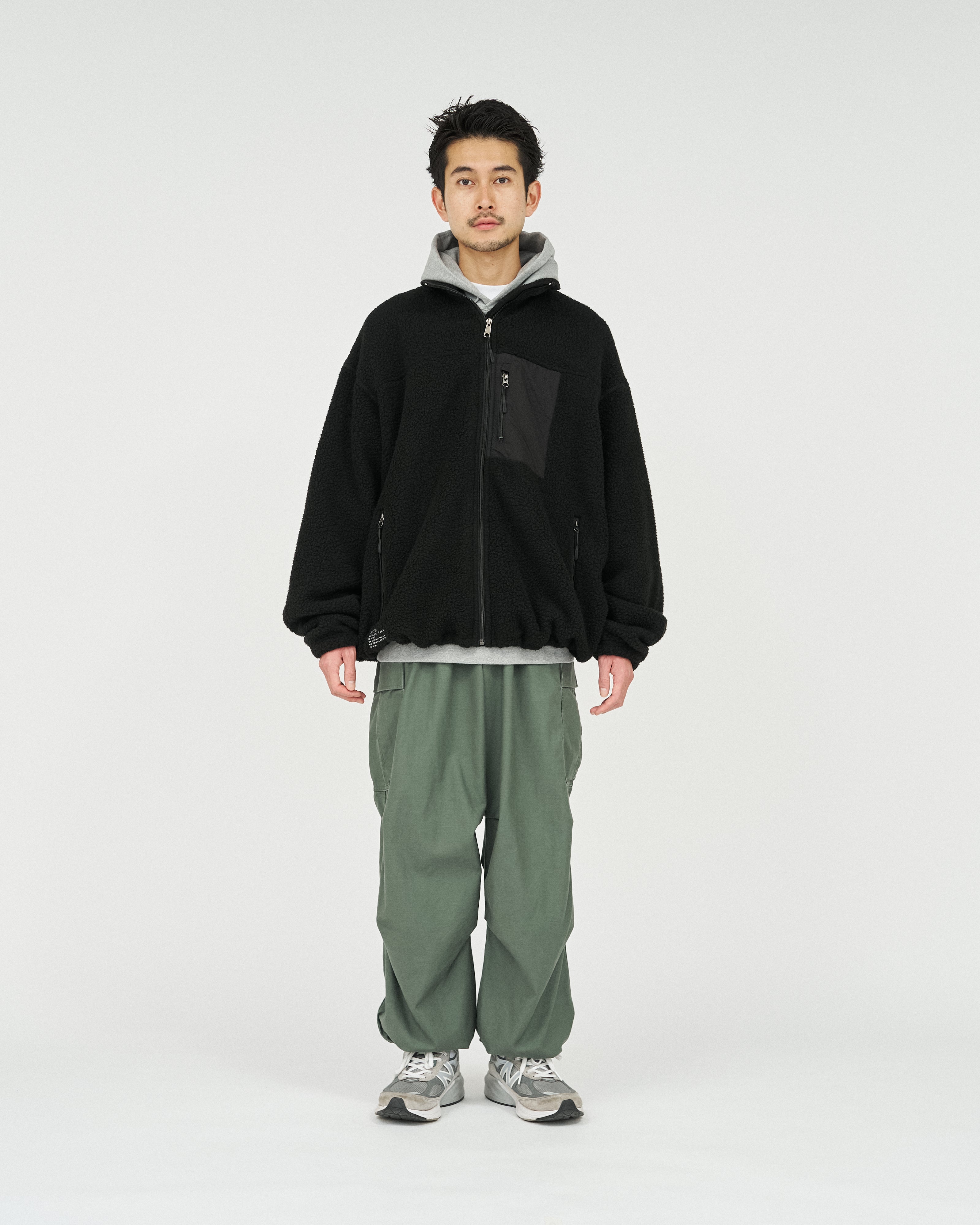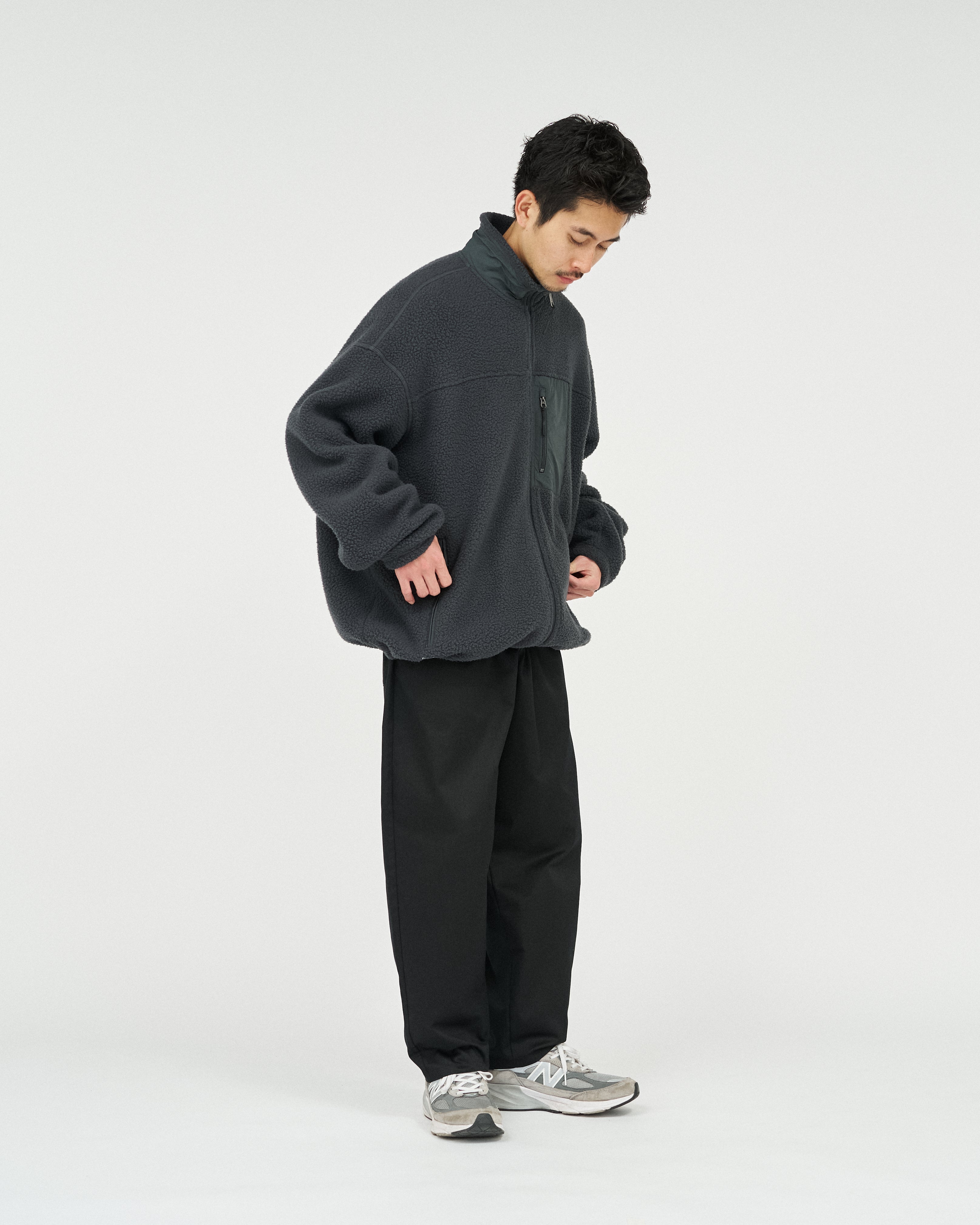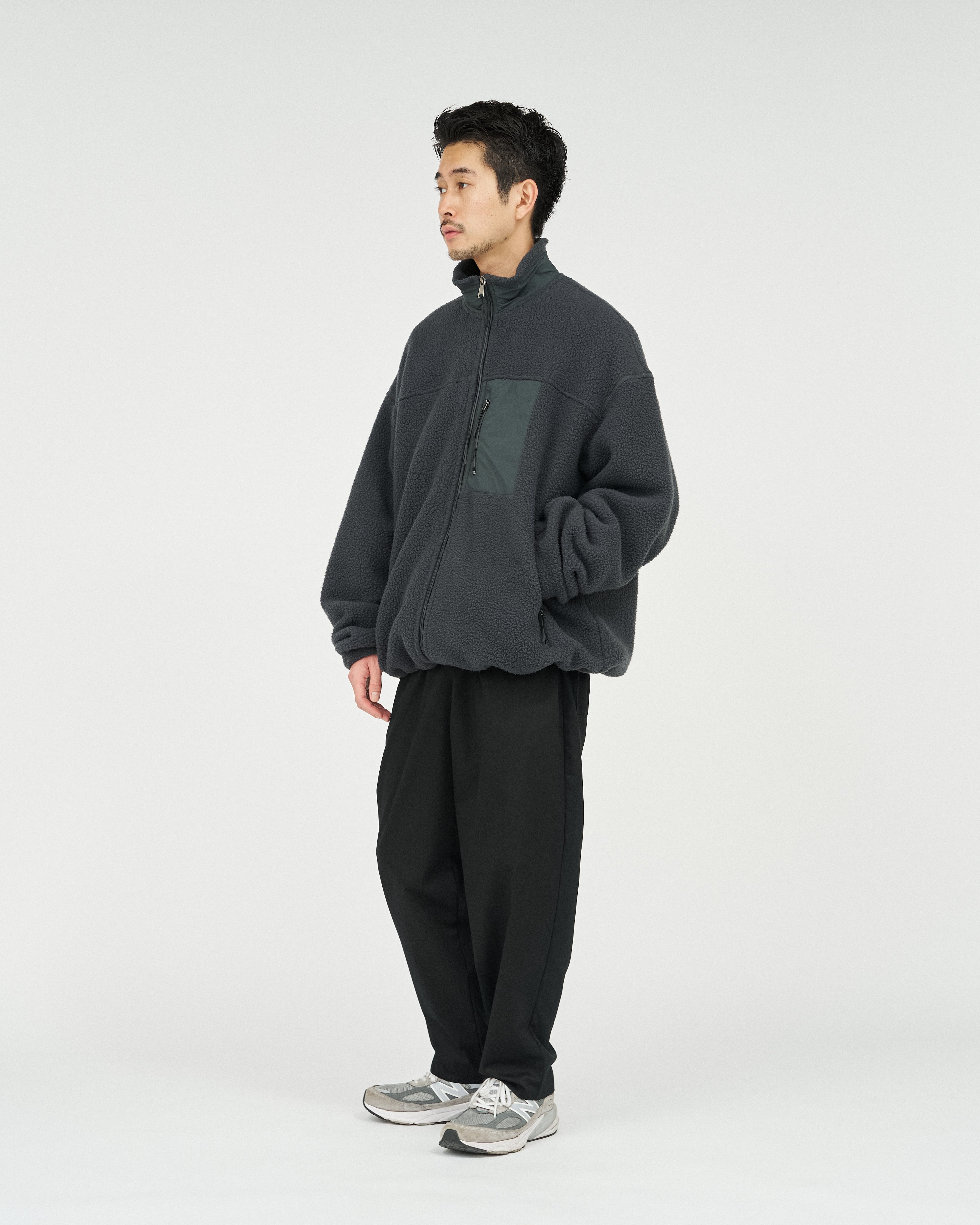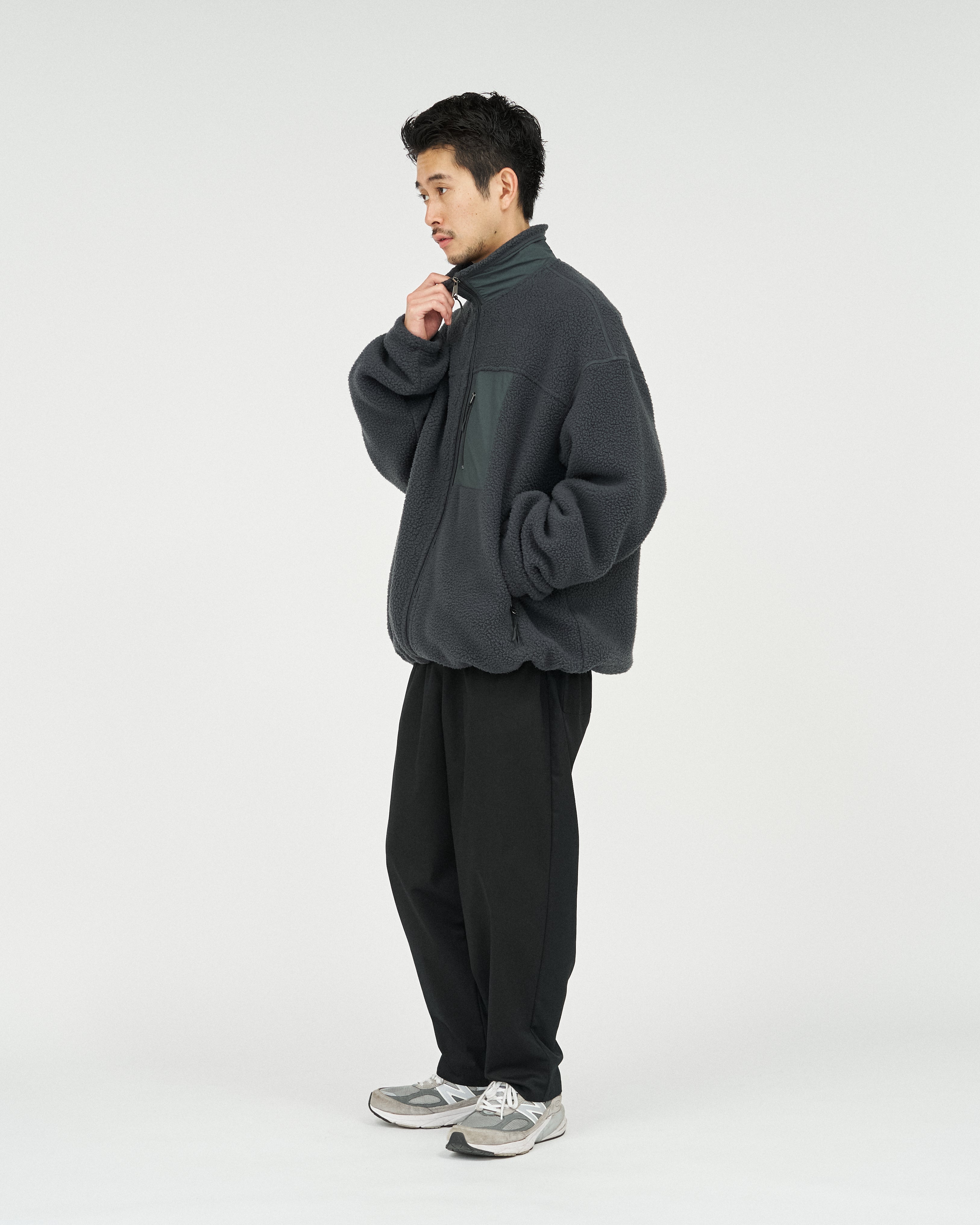 アウトドアブランドの90'Sのボアジャケットから着想を得た、スタンドカラーのジップアップジャケット。軽量ながら保温性があり、柔らかくクッションのような感触のポリエステル100%のボアフリース素材を採用。胸元と首元のナイロン生地の切り替えがアクセントになり、コーディネートに遊び心をプラスします。
