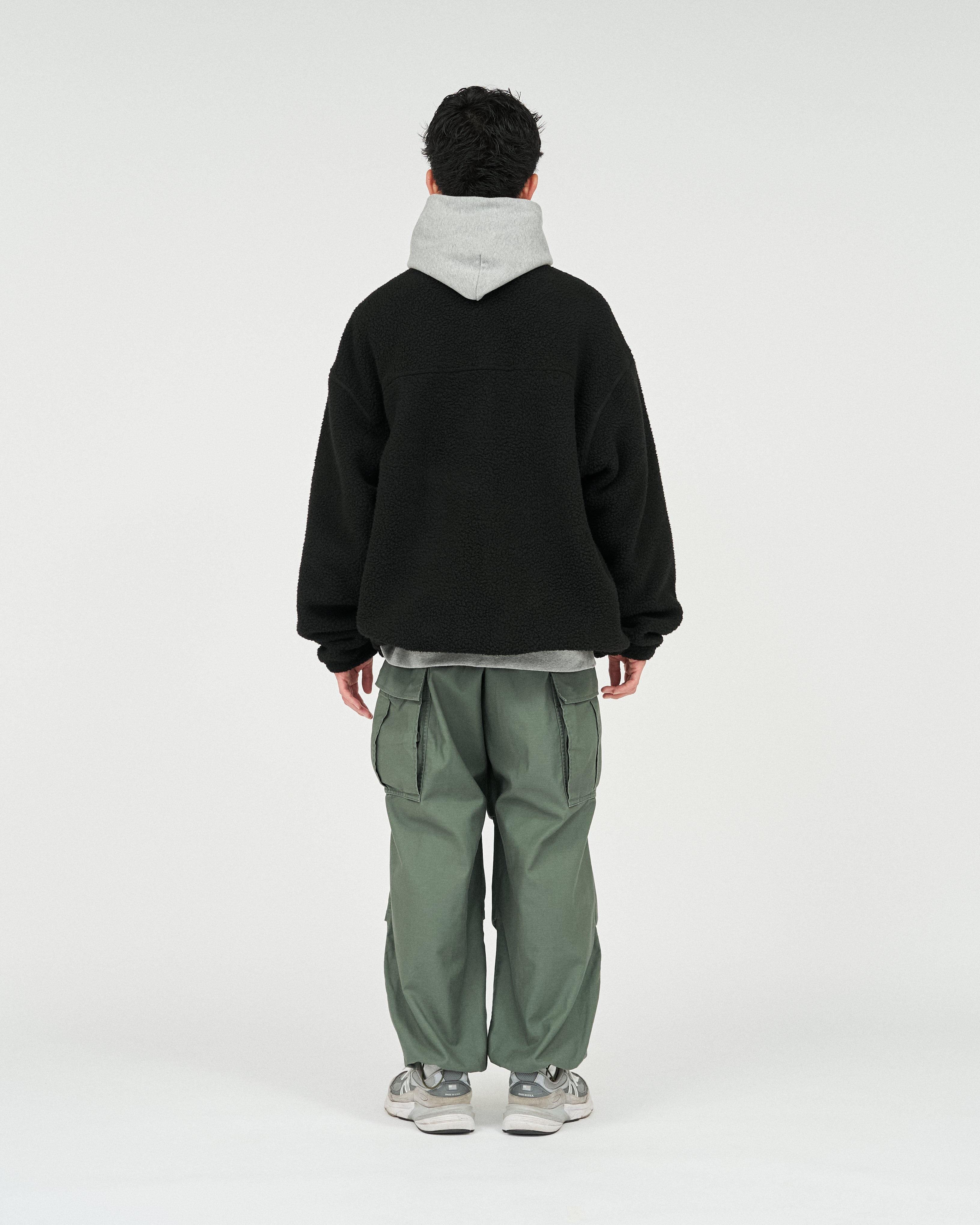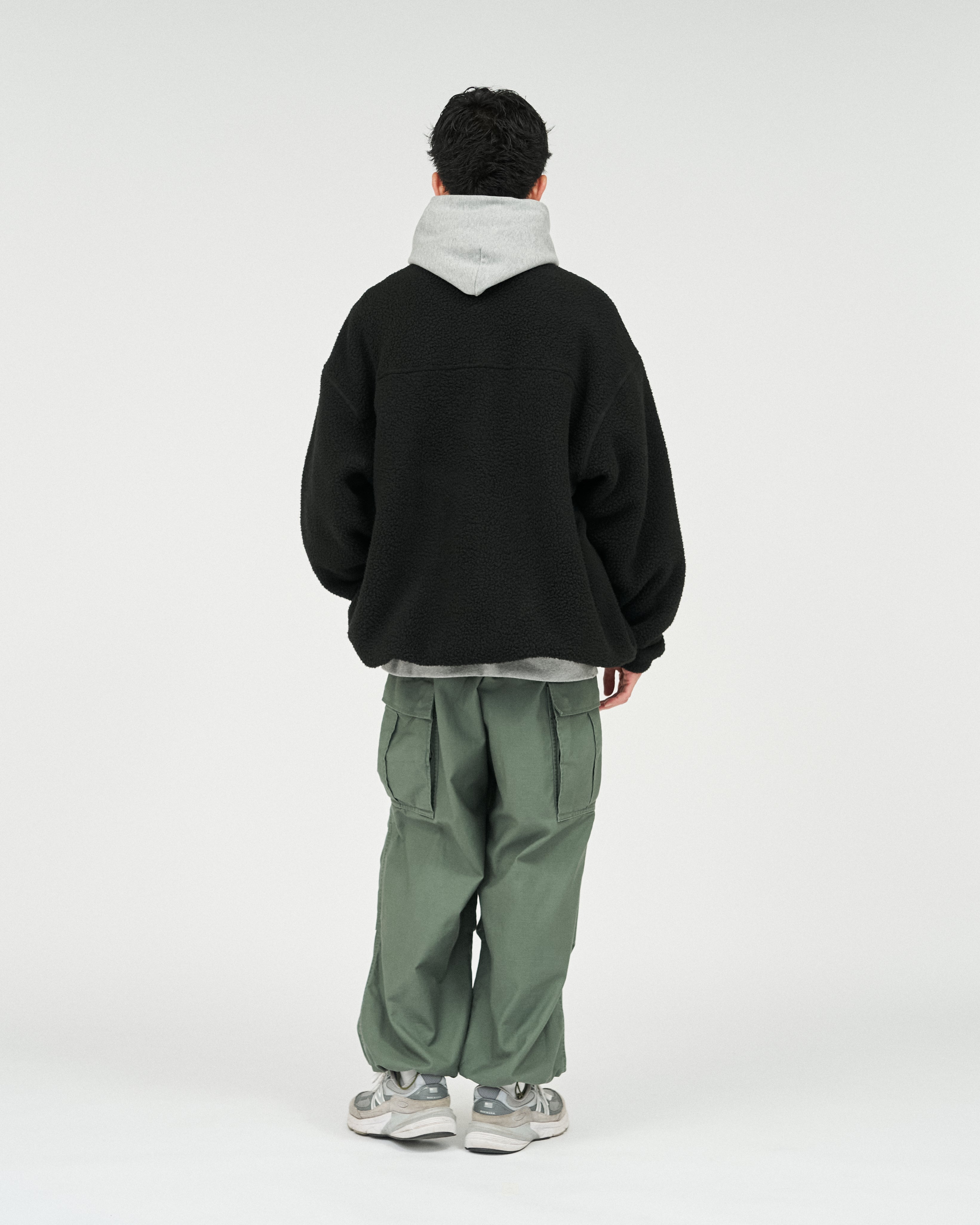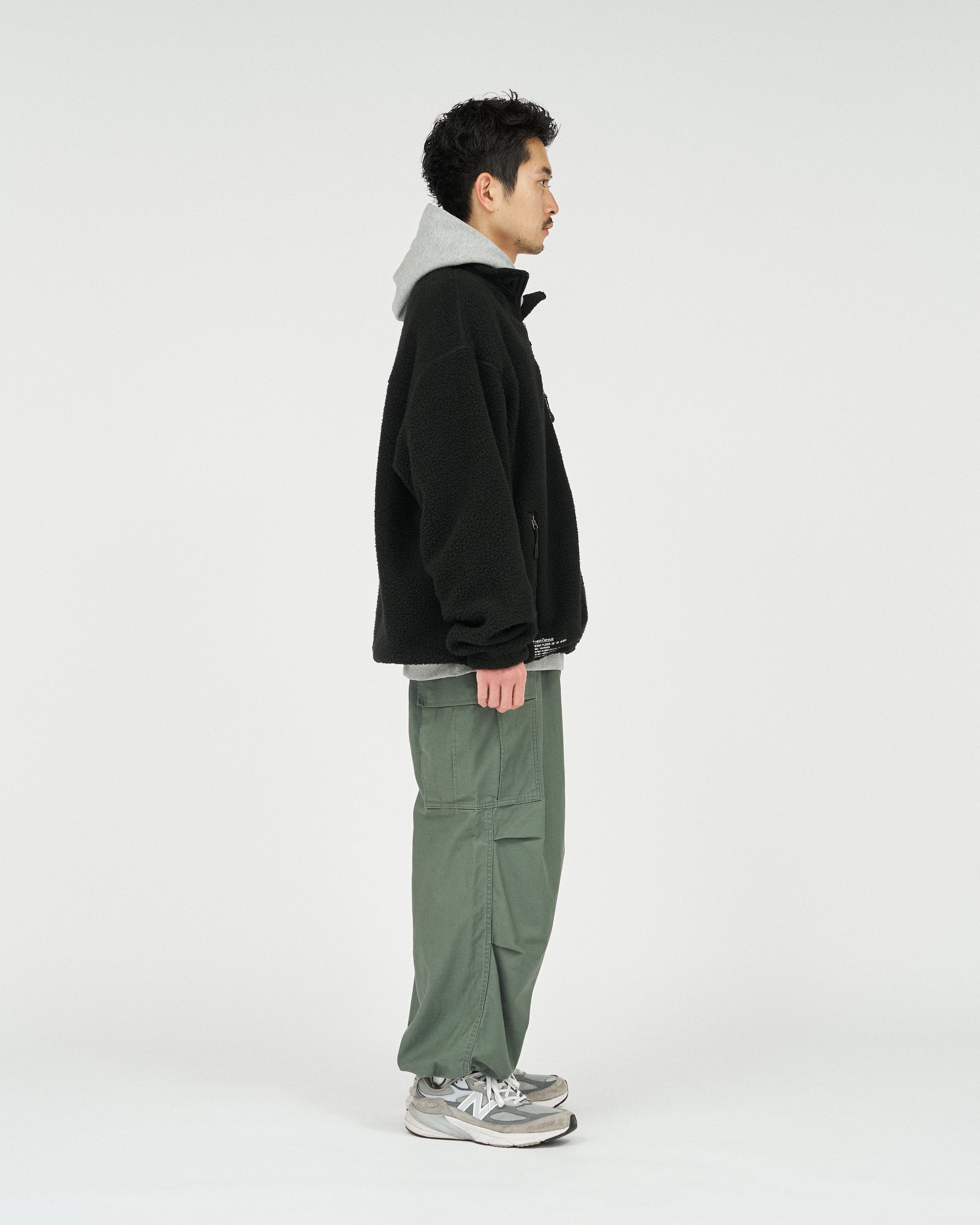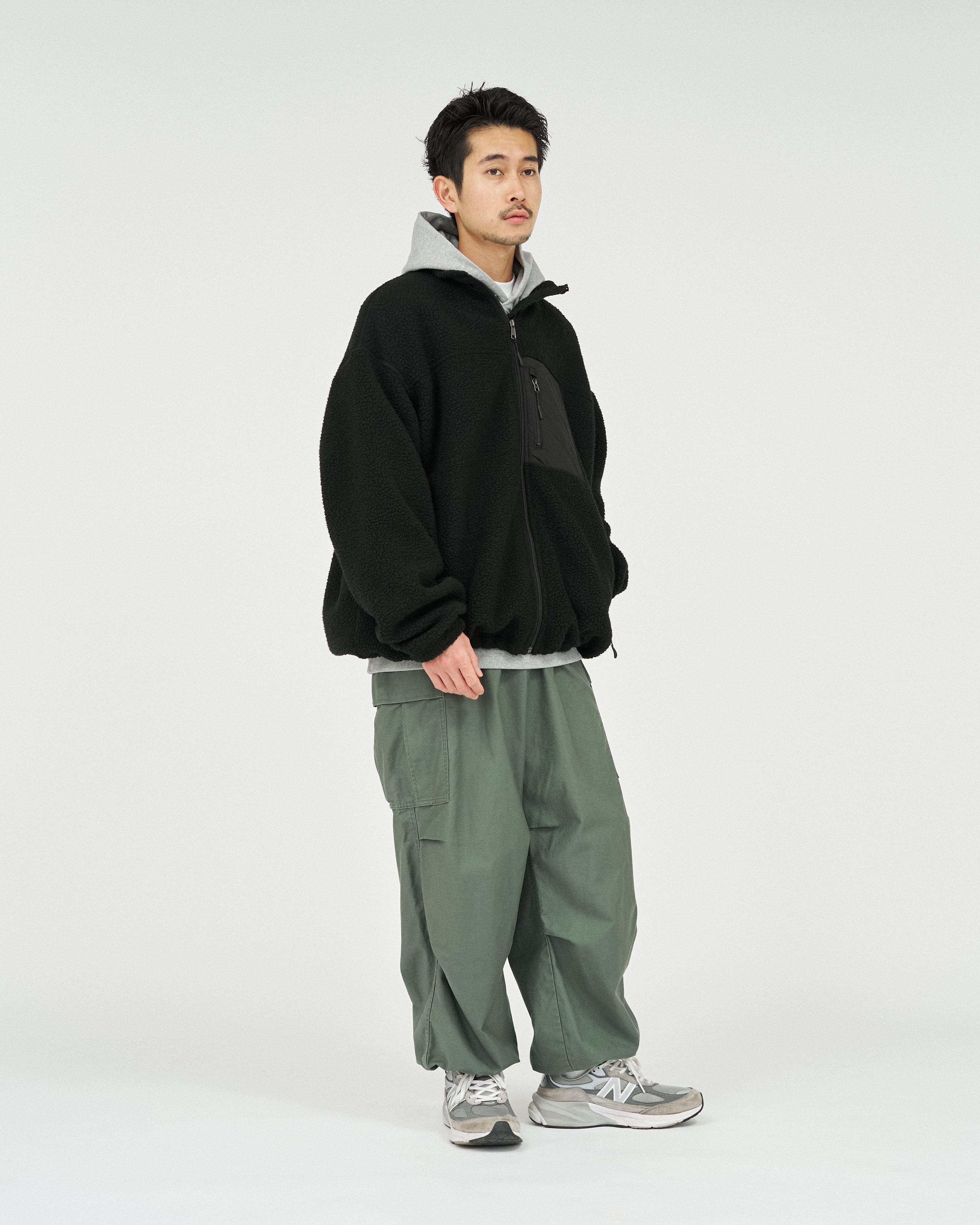 アウトドアブランドの90'Sのボアジャケットから着想を得た、スタンドカラーのジップアップジャケット。軽量ながら保温性があり、柔らかくクッションのような感触のポリエステル100%のボアフリース素材を採用。胸元と首元のナイロン生地の切り替えがアクセントになり、コーディネートに遊び心をプラスします。