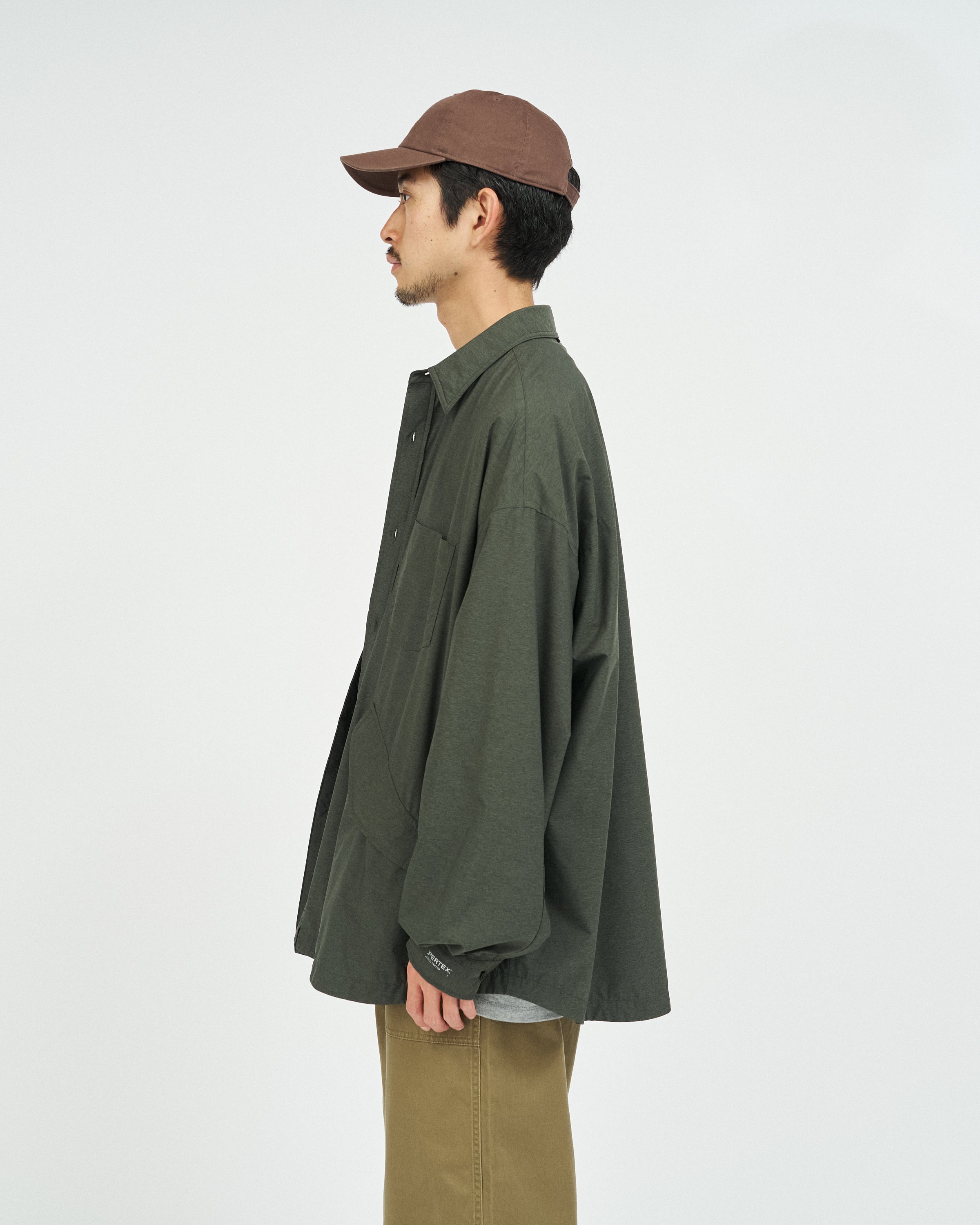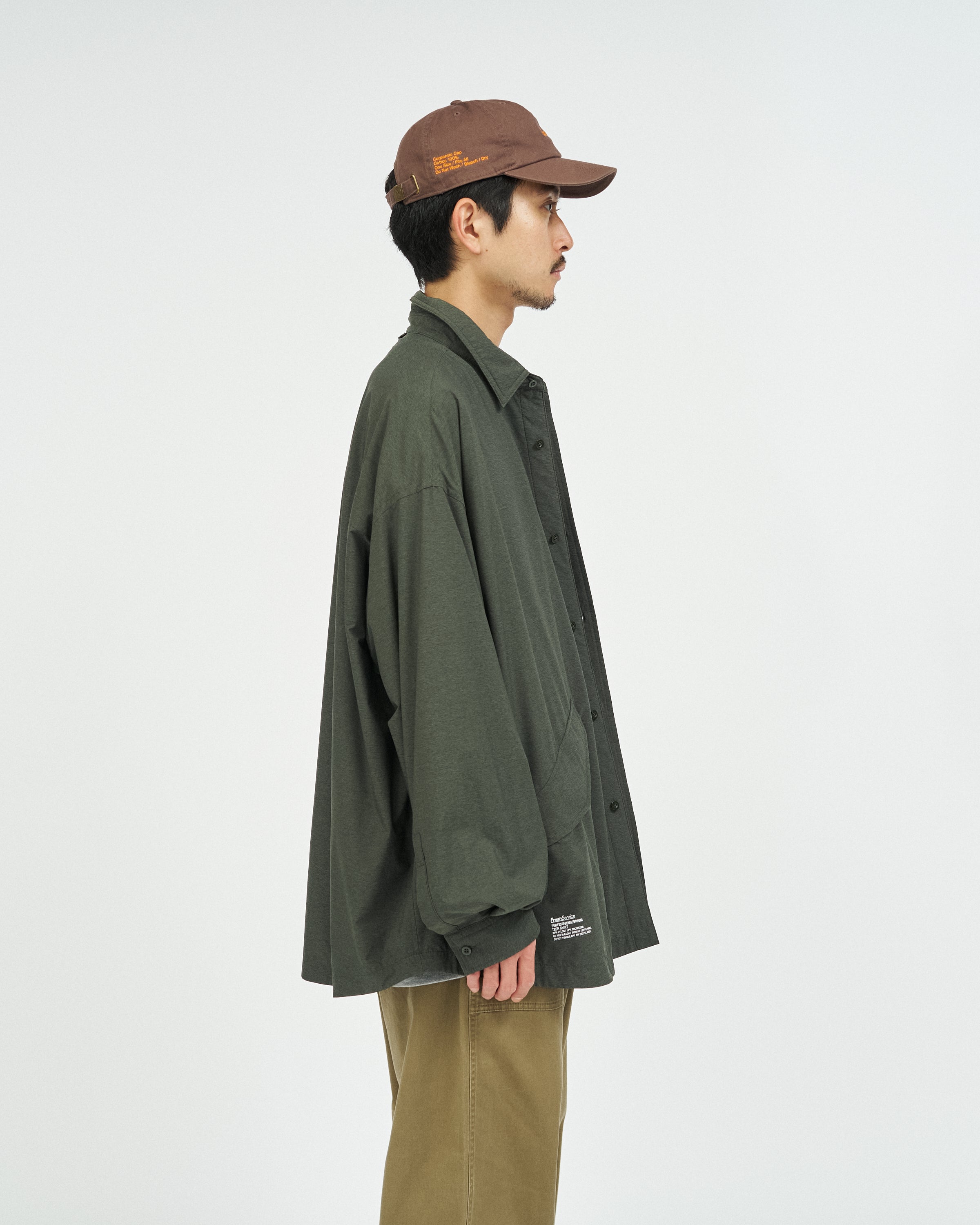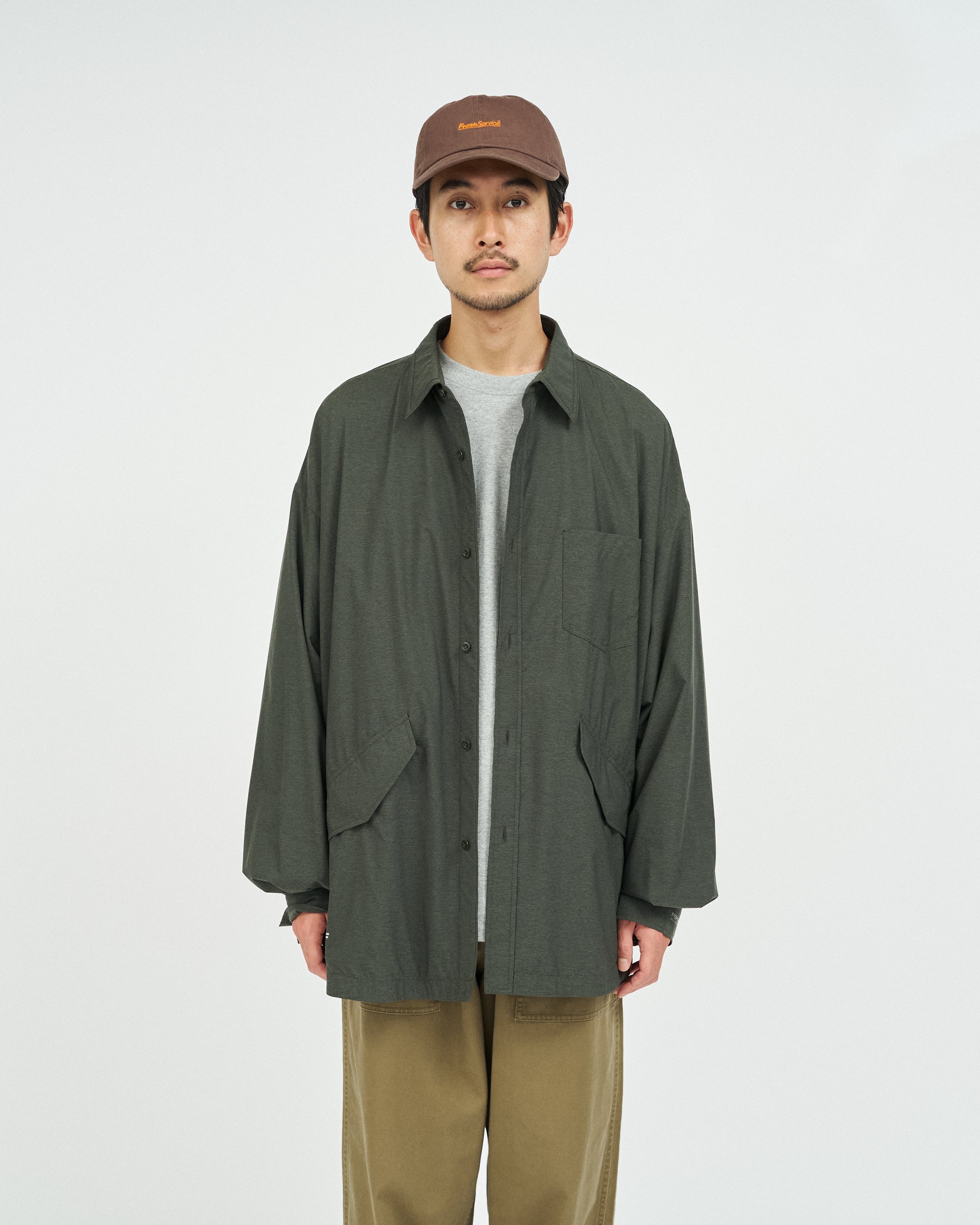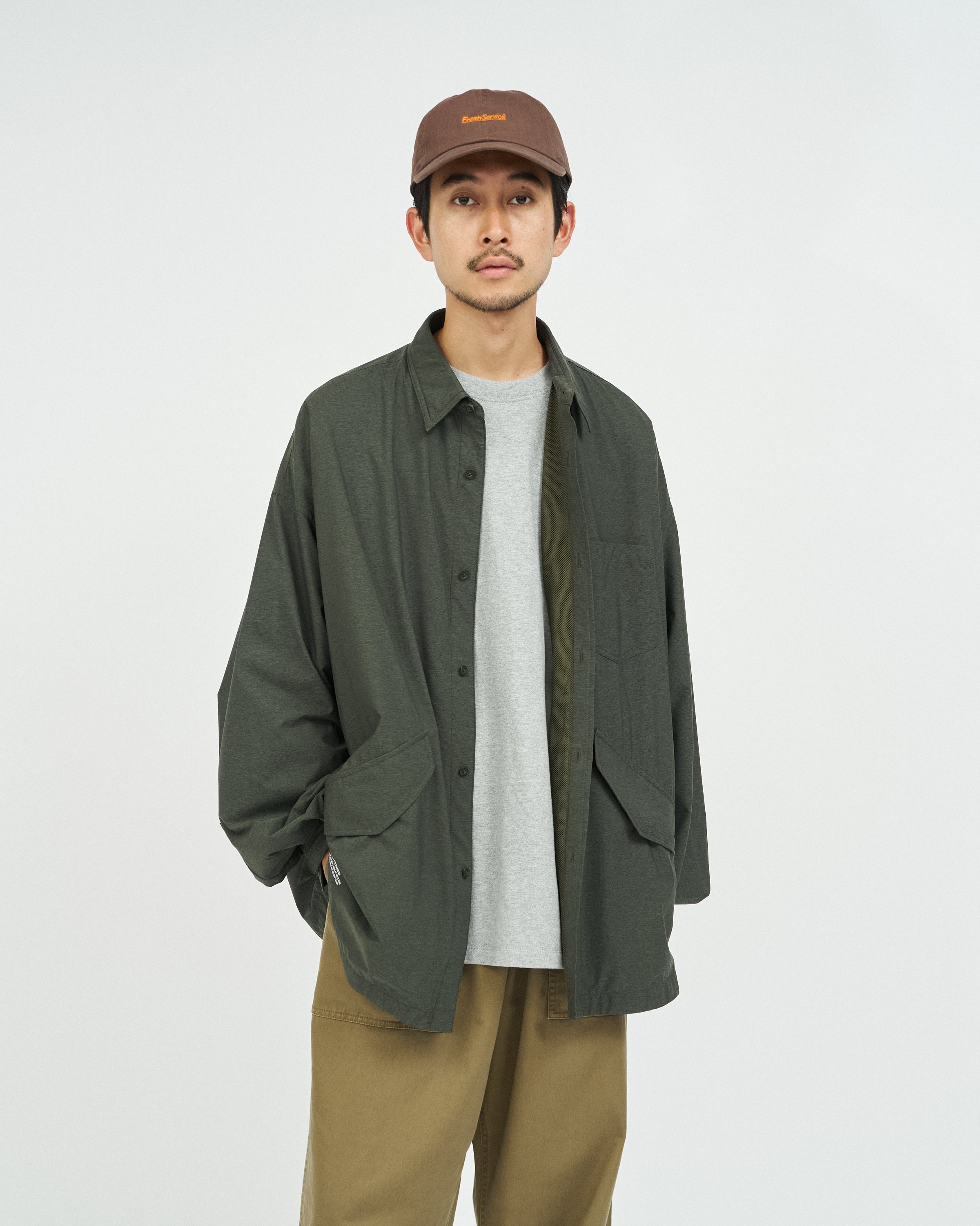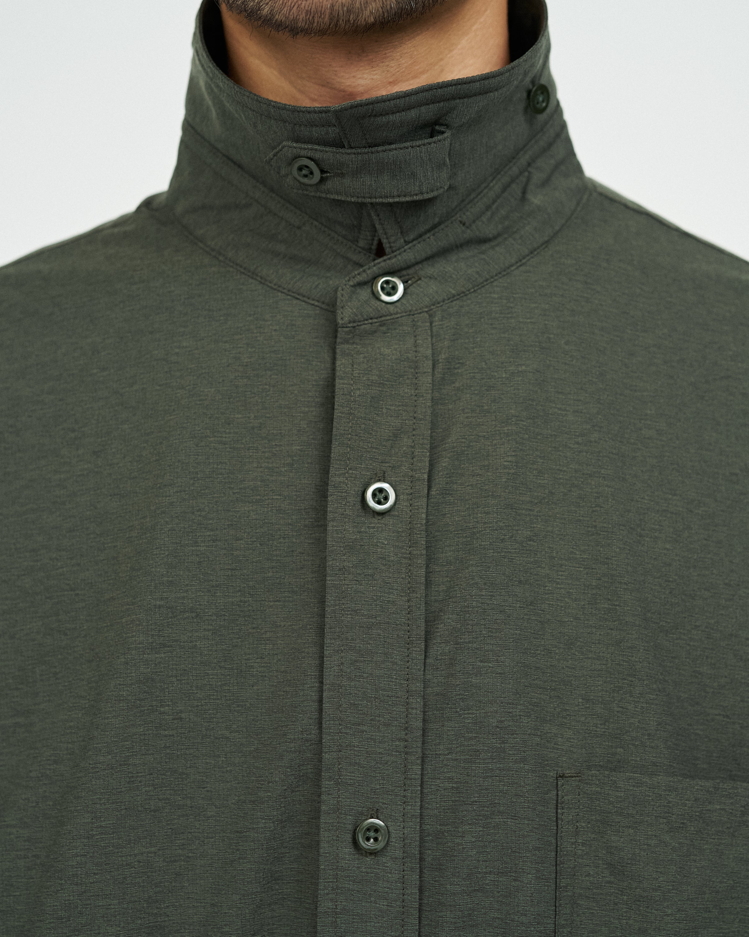 非常に軽量で速乾性に優れた PERTEX® EQUILIBRIUM を使用したテックシャツ。裏面で汗を素早く吸い上げて表面に放出することで衣服内を快適に保ち、ストレッチ性とメッシュ裏地の組み合わせによって動きやすく、肌離れの良いドライな着心地を実現しています。フロントにはミリタリーテイストを感じさせる腰ポケットを配置。スナップボタンの比翼仕立てやややゆとりを持たせたシルエットが、シャツらしい軽快さとアウターライクな存在感を両立させています。同素材のパンツとのセットアップ着用も可能で、機能性と統一感あるスタイルを楽しめます。カラーは深みのある黒にグレーをひとさじ加えたチャコールブラック、わずかにグレーを含んだ落ち着きのあるカーキ、そして鉄のようなクールさを漂わせるスチールブルーの3色展開。どれもシンプルな着こなしに奥行きを与える独自のニュアンスが魅力です。