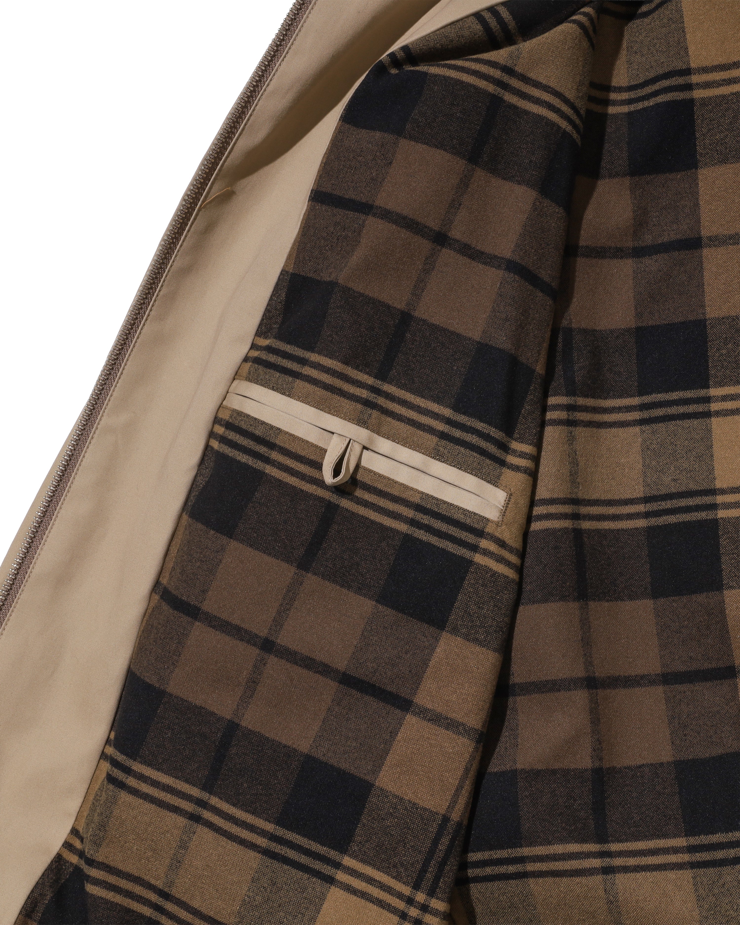 アイビーのムード漂うスウィングトップ。高密度に織り上げたコンパクトウェザーファブリックが、上品さとタフさをバランスよく両立。身頃裏には保温性のあるフランネルチェック生地を配し、クラシックな雰囲気に機能性をプラス。ゆったりとしたボックスシルエットは、スウェットシャツやチノパンとも好相性。アメリカントラッドをベースに、肩ひじ張らずに楽しめる新しいデイリーウェア。