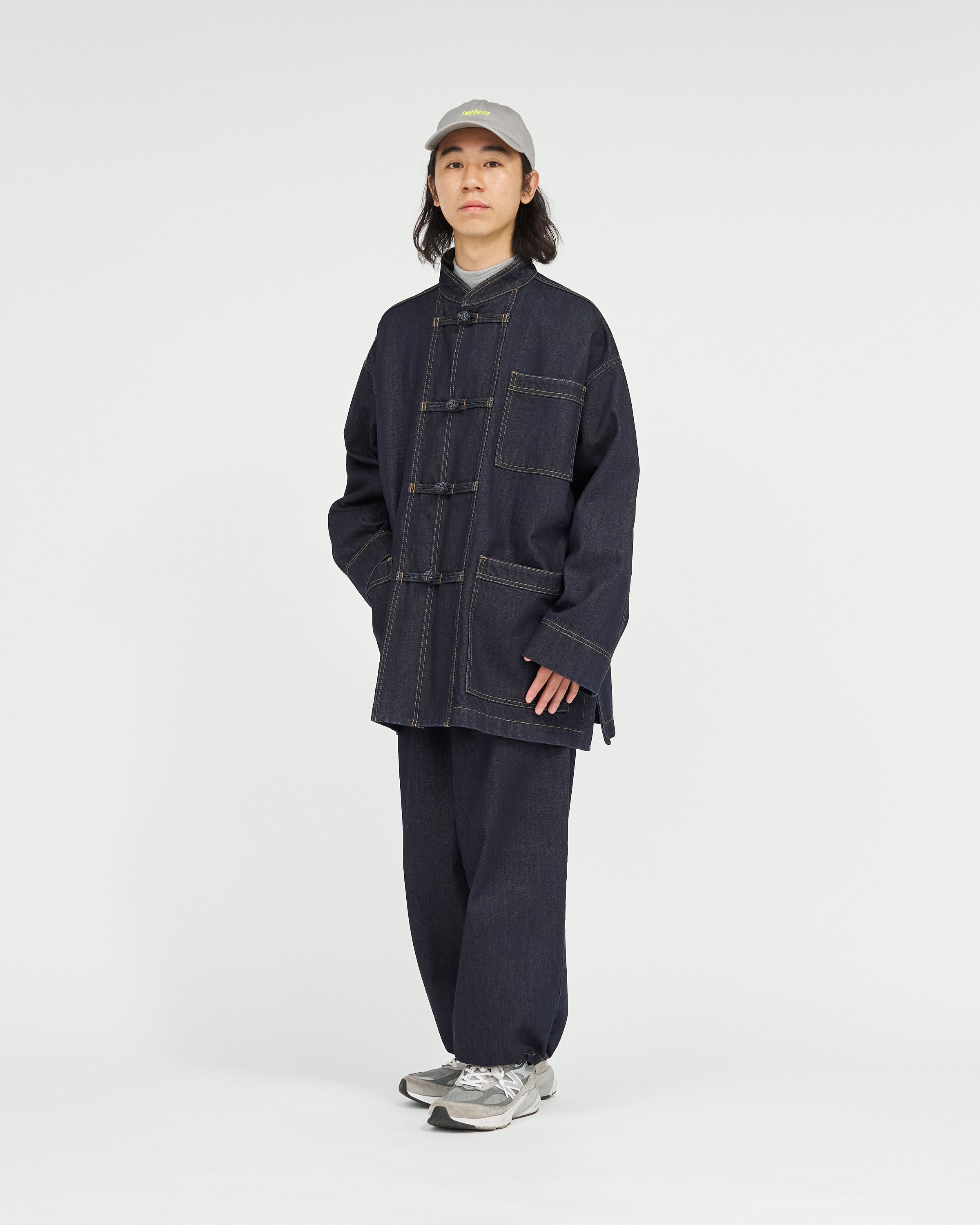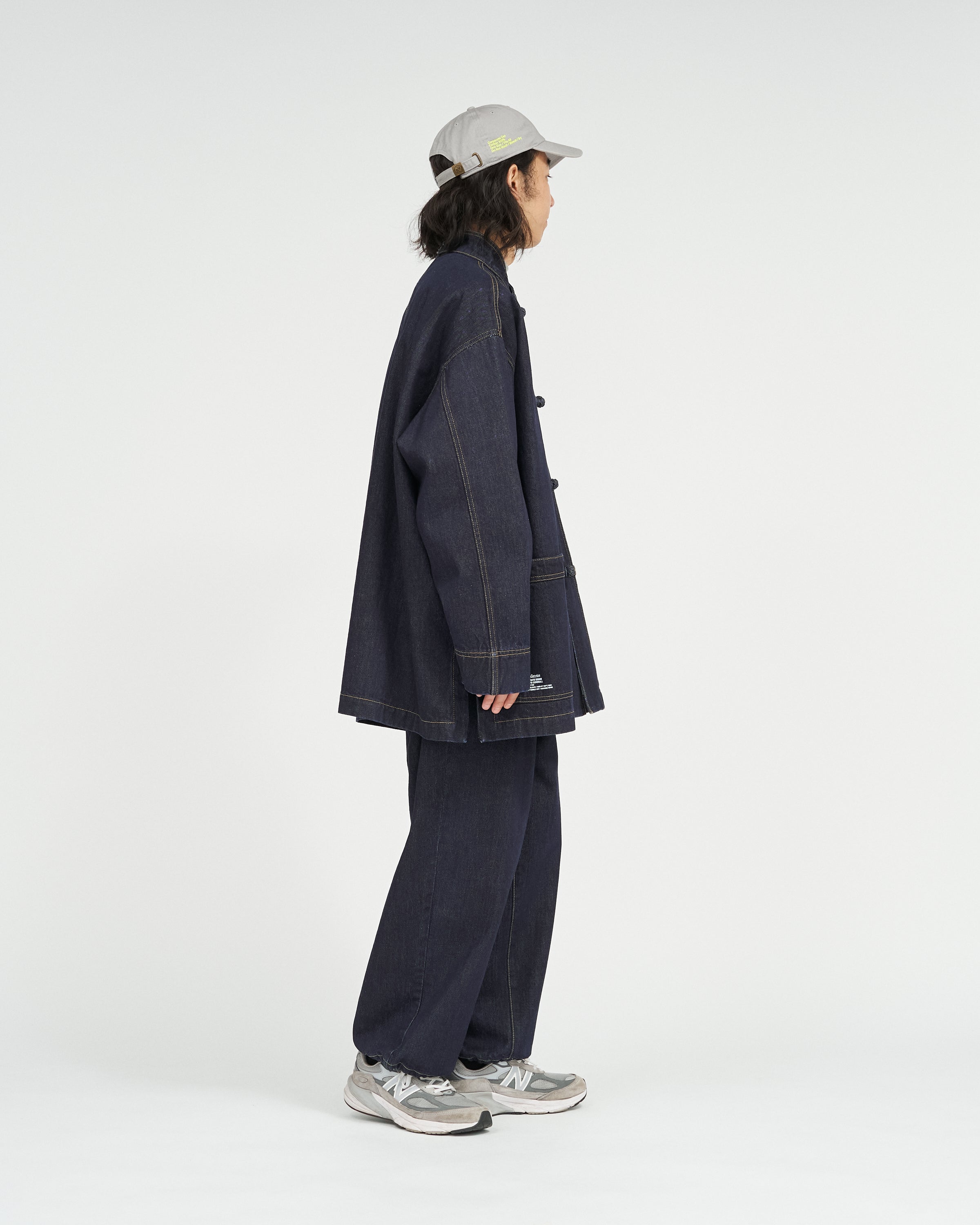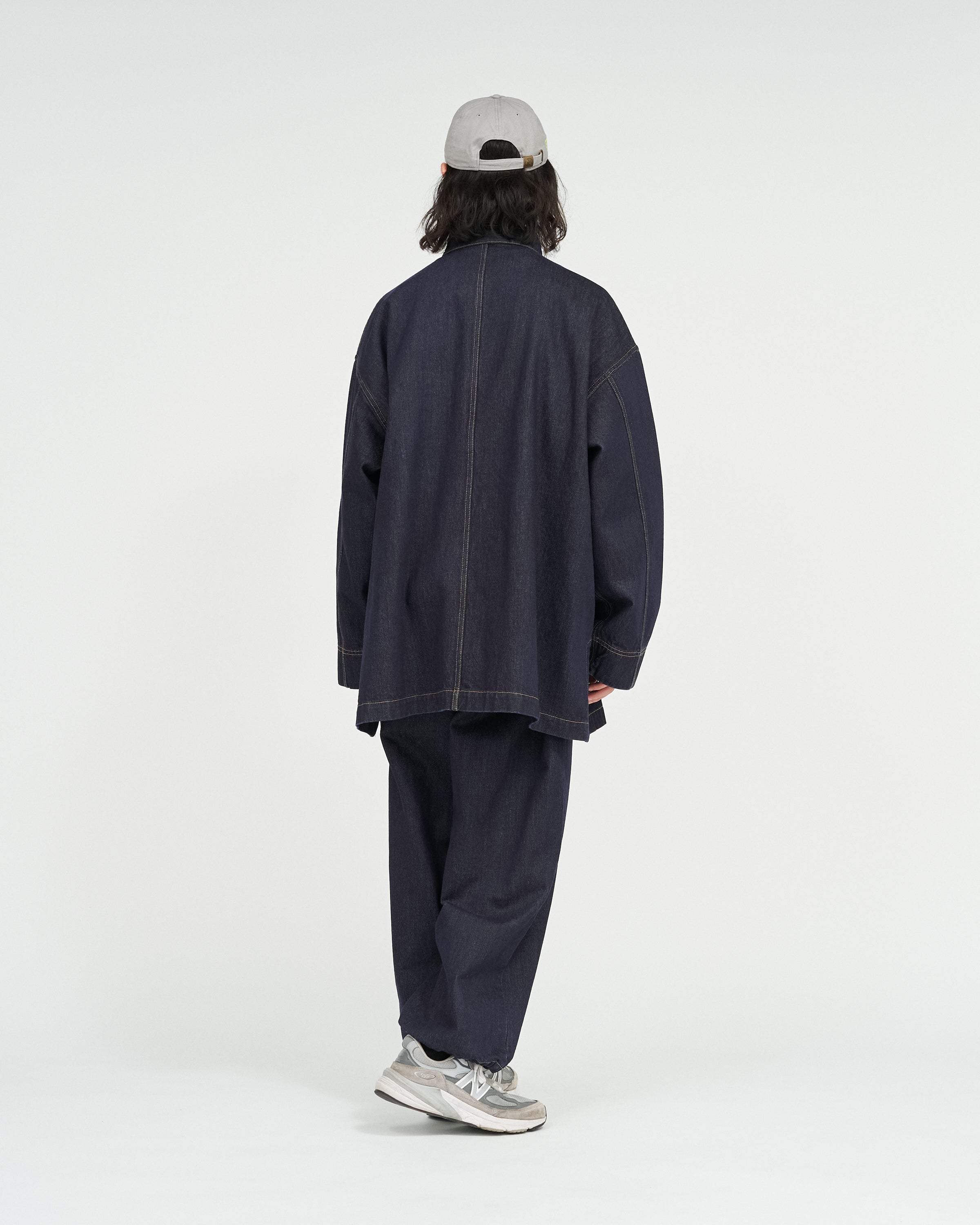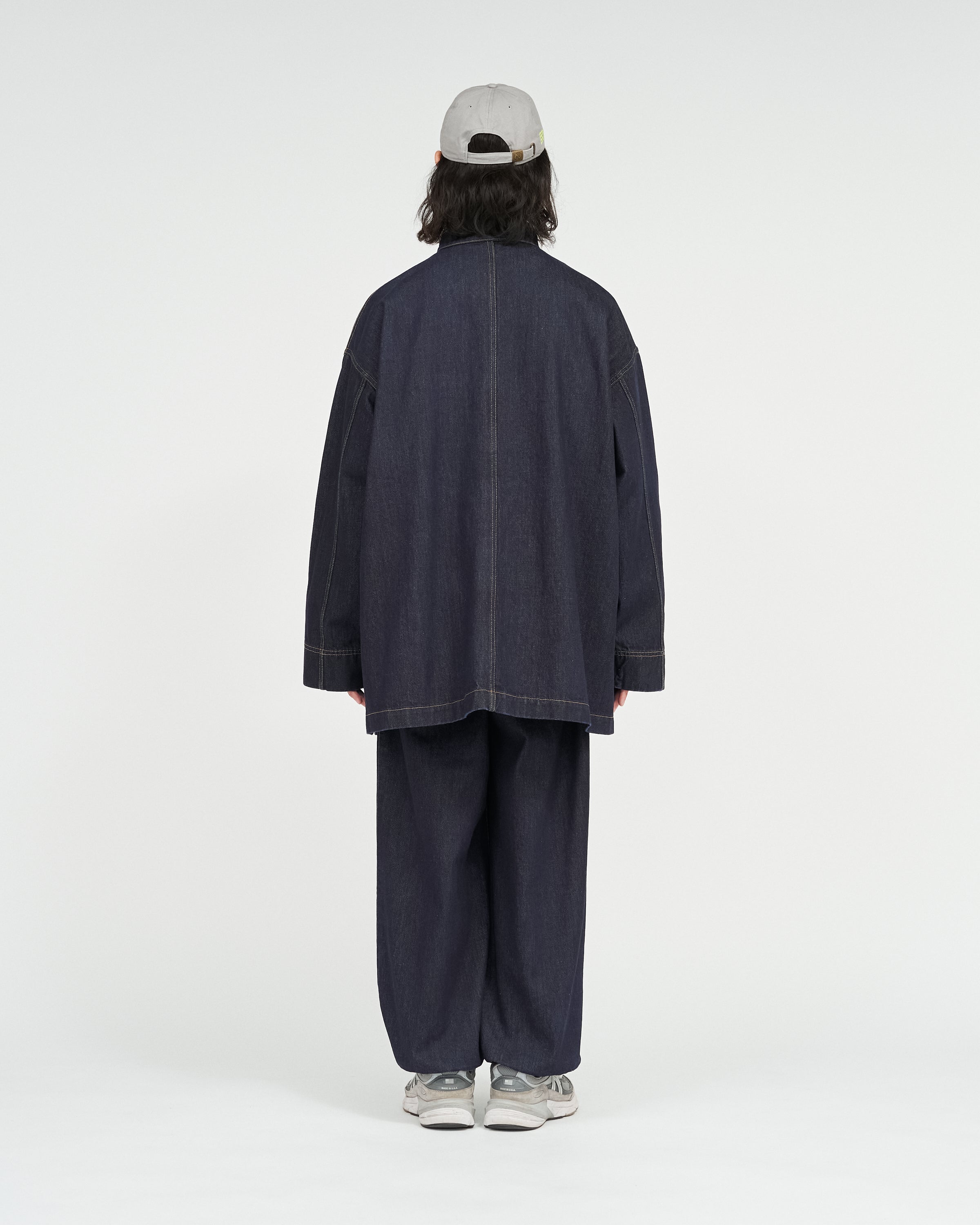 13.5ozのタフなデニムを採用したカバーオールは、ゆったりとしたドロップショルダーのシルエットに、フロントのチャイナボタンがアクセント。着込むほどに表情が深まり、ヴィンテージのようなフェードも楽しめる。同素材で展開されるCORPORATE DENIM EASY PANTS とのセットアップもおすすめ。