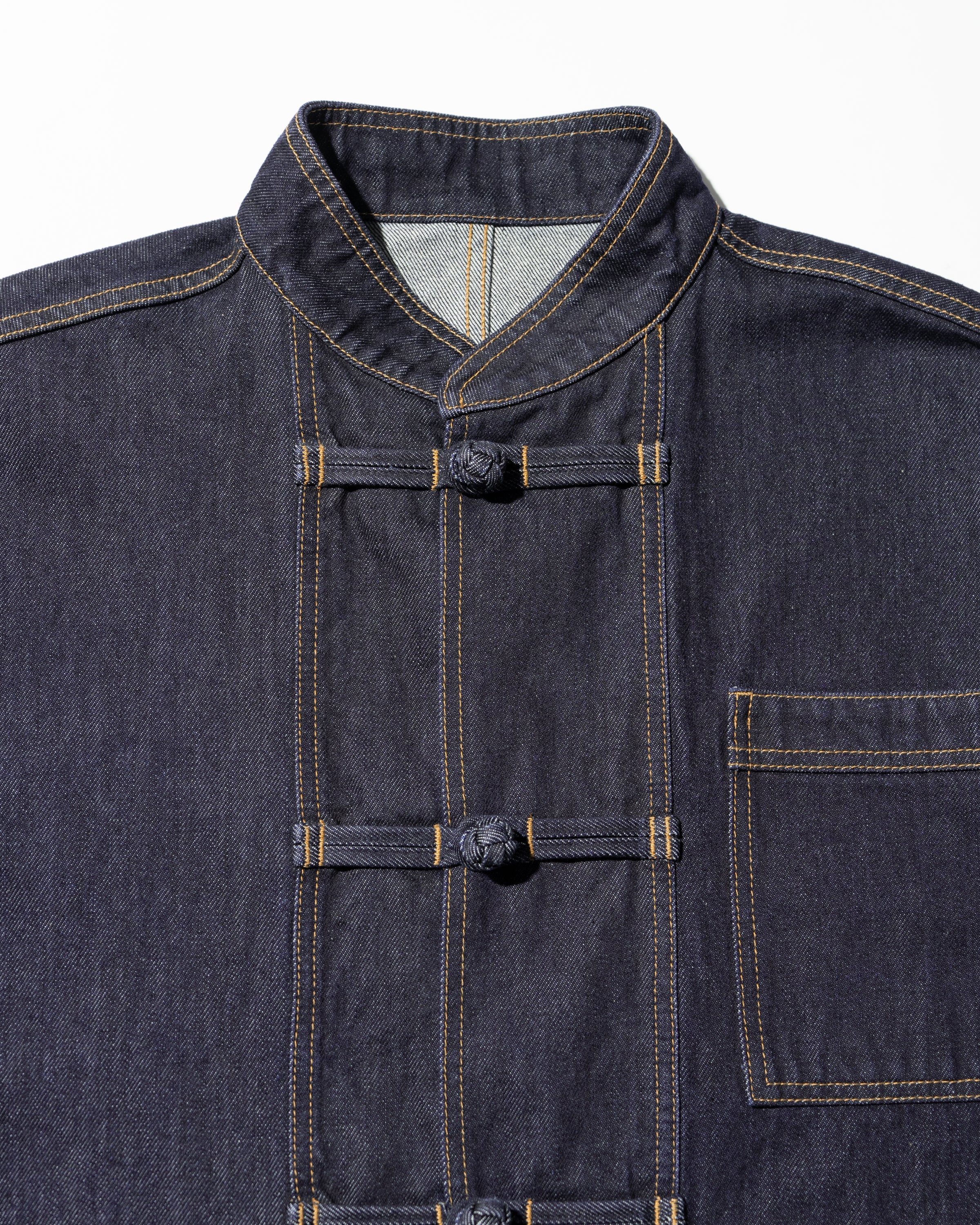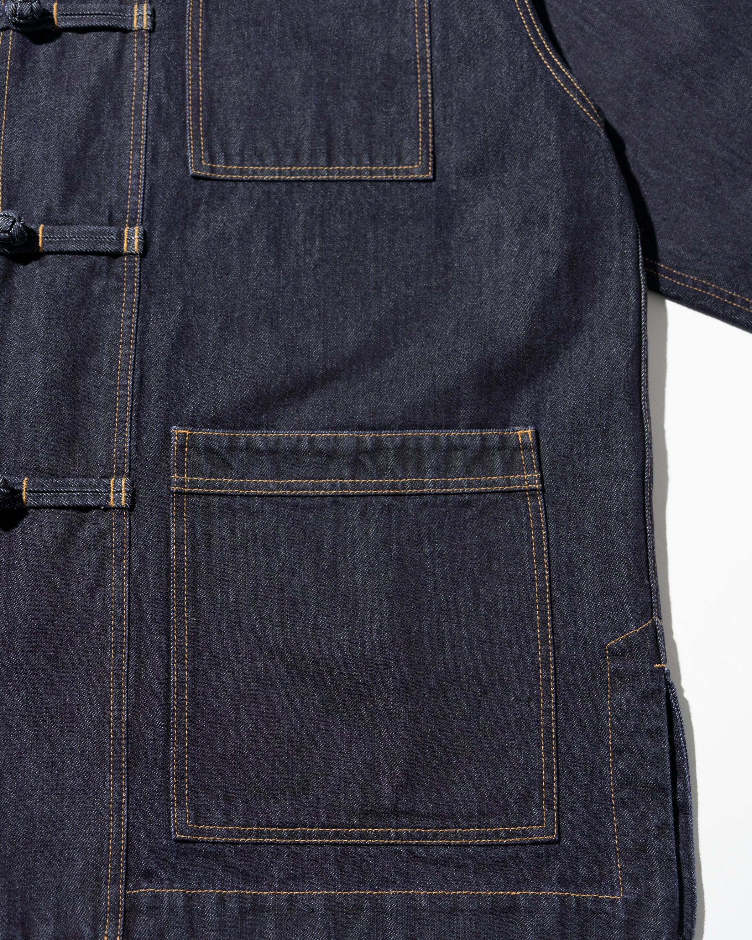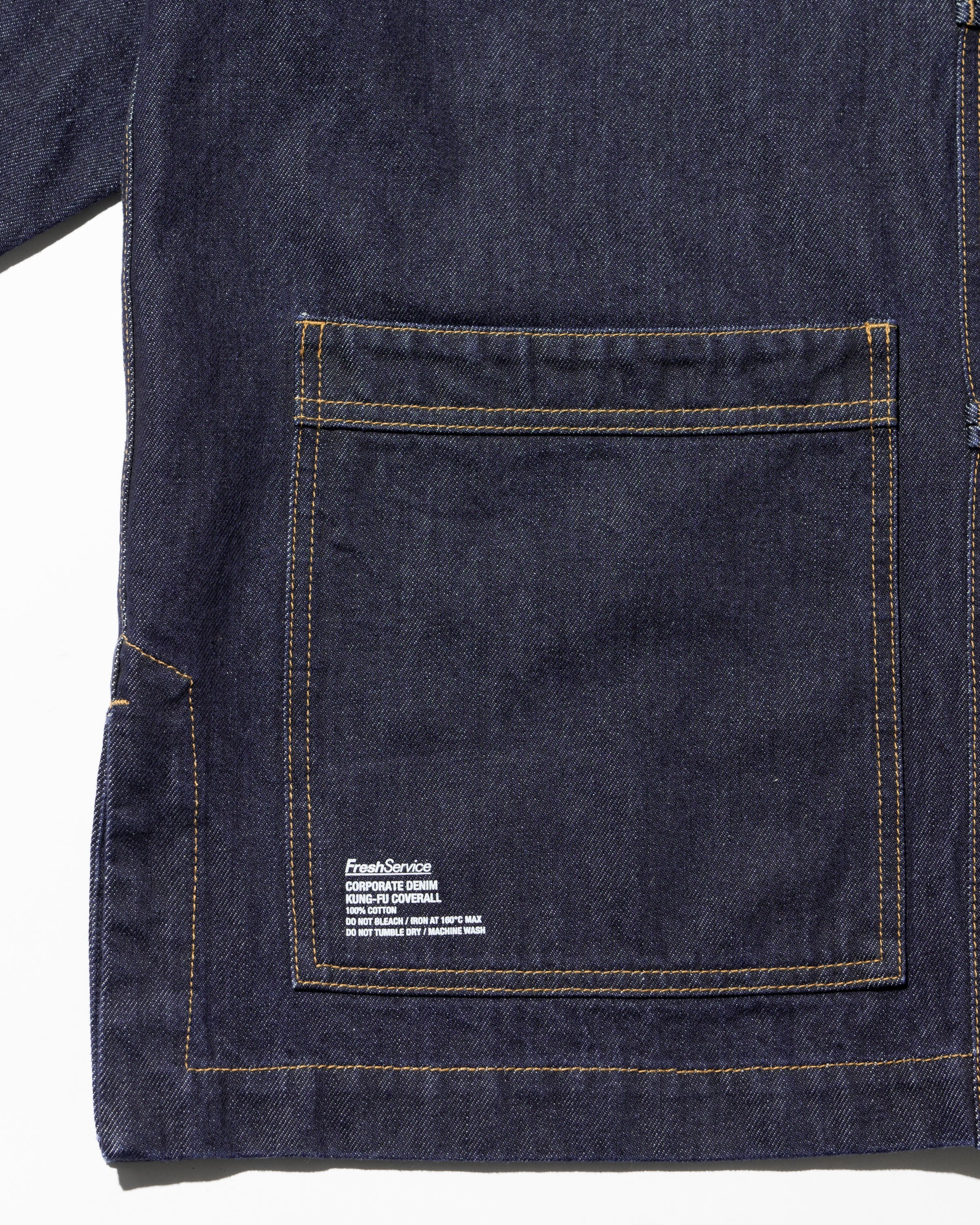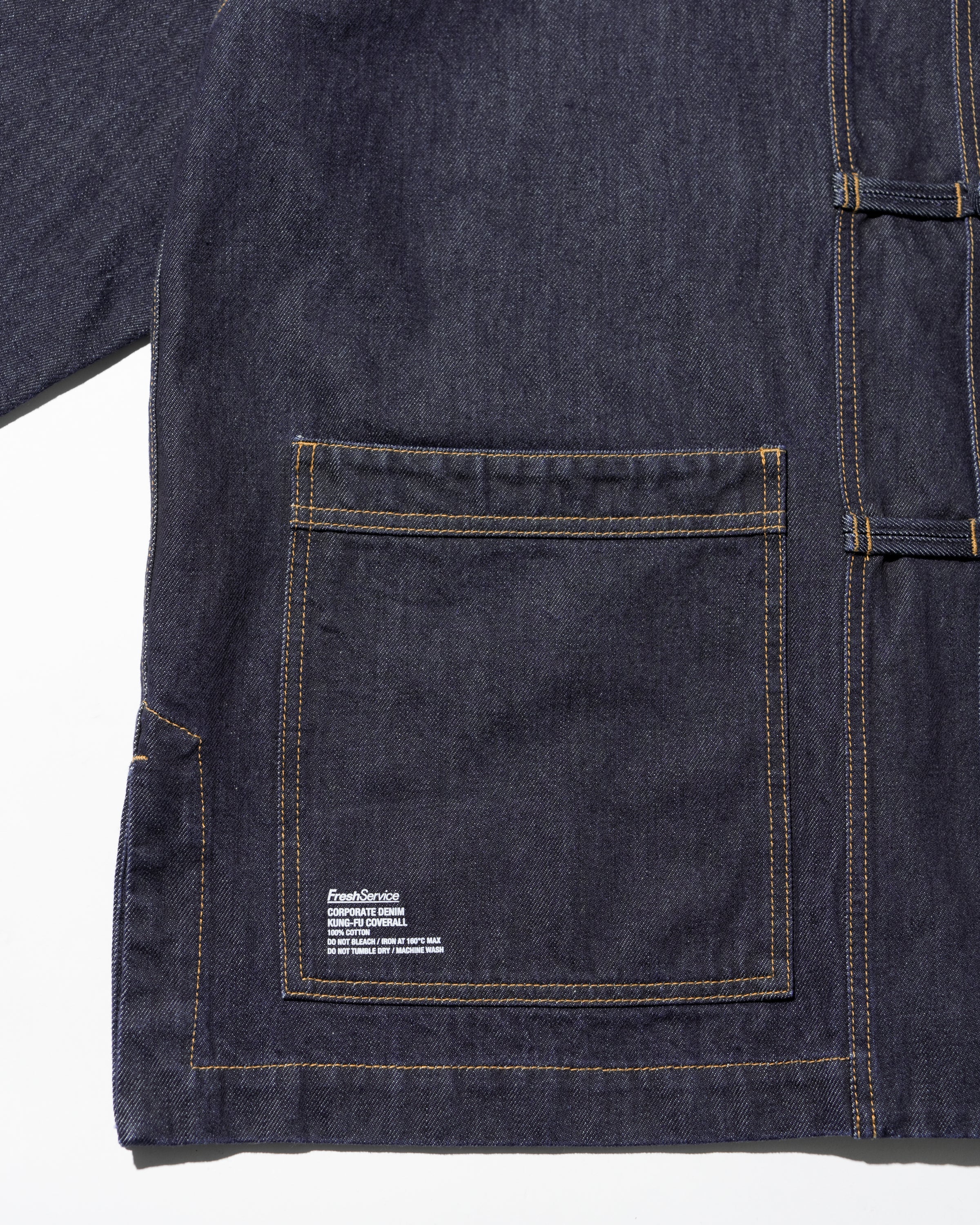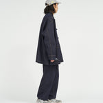 13.5ozのタフなデニムを採用したカバーオールは、ゆったりとしたドロップショルダーのシルエットに、フロントのチャイナボタンがアクセント。着込むほどに表情が深まり、ヴィンテージのようなフェードも楽しめる。同素材で展開されるCORPORATE DENIM EASY PANTS とのセットアップもおすすめ。