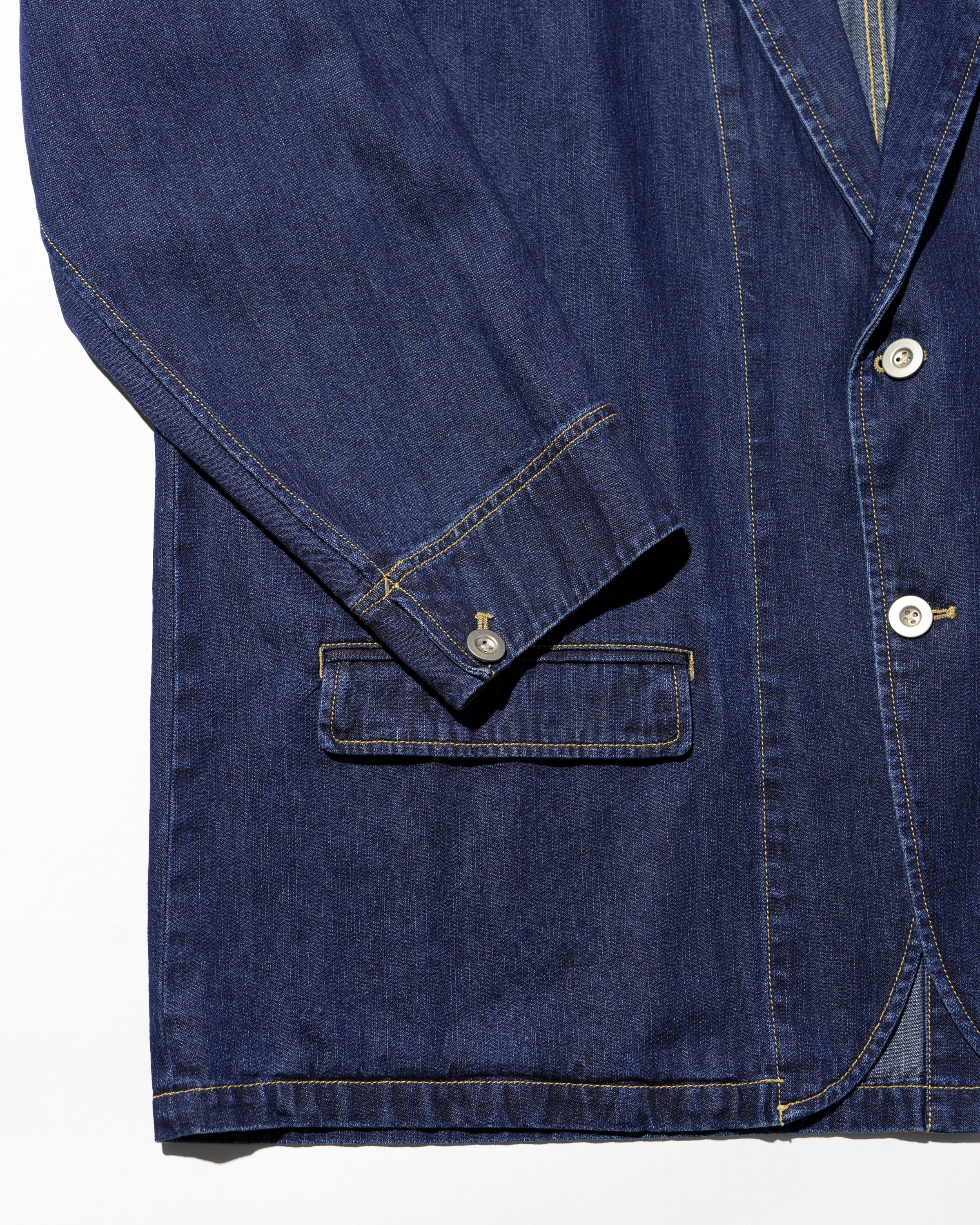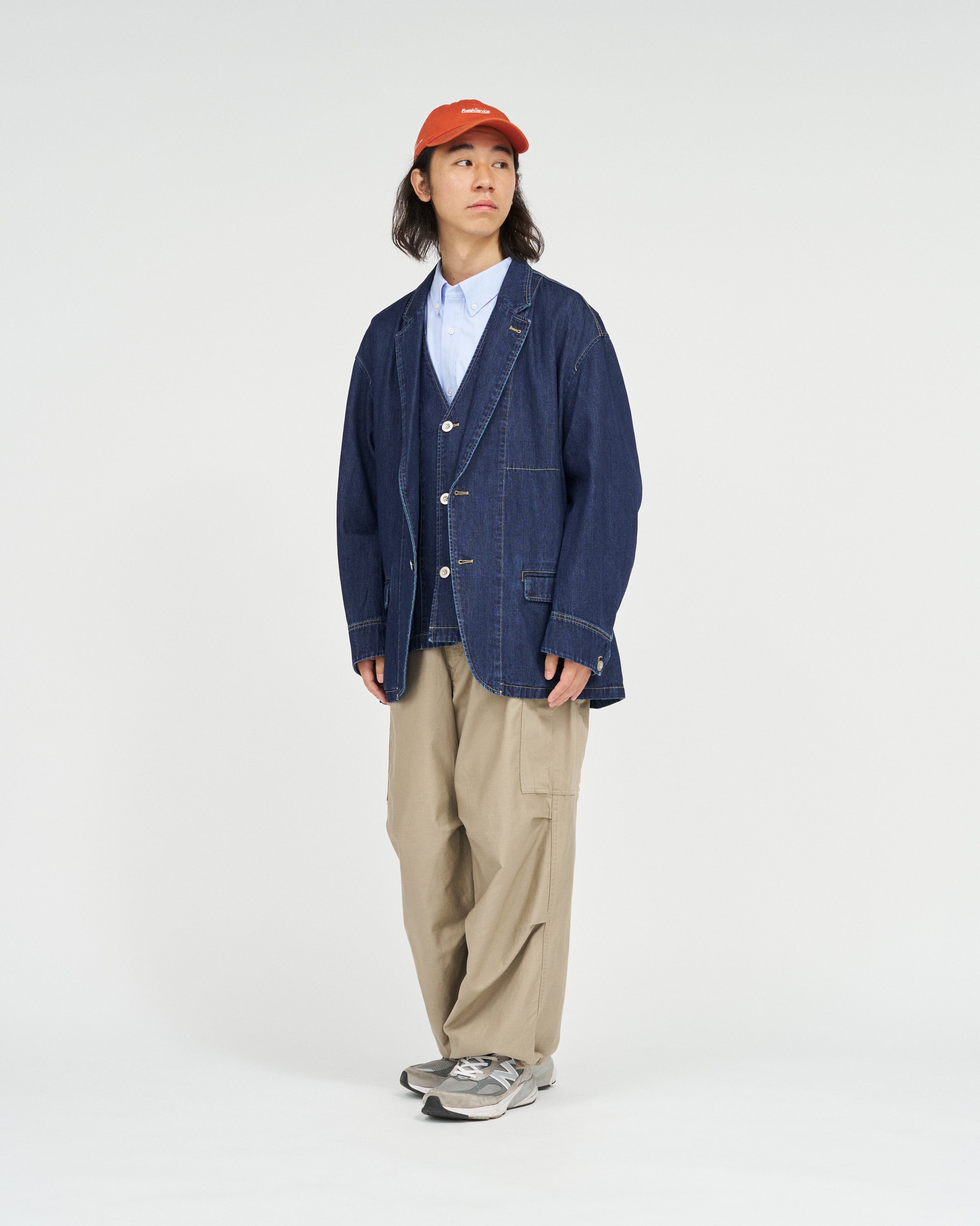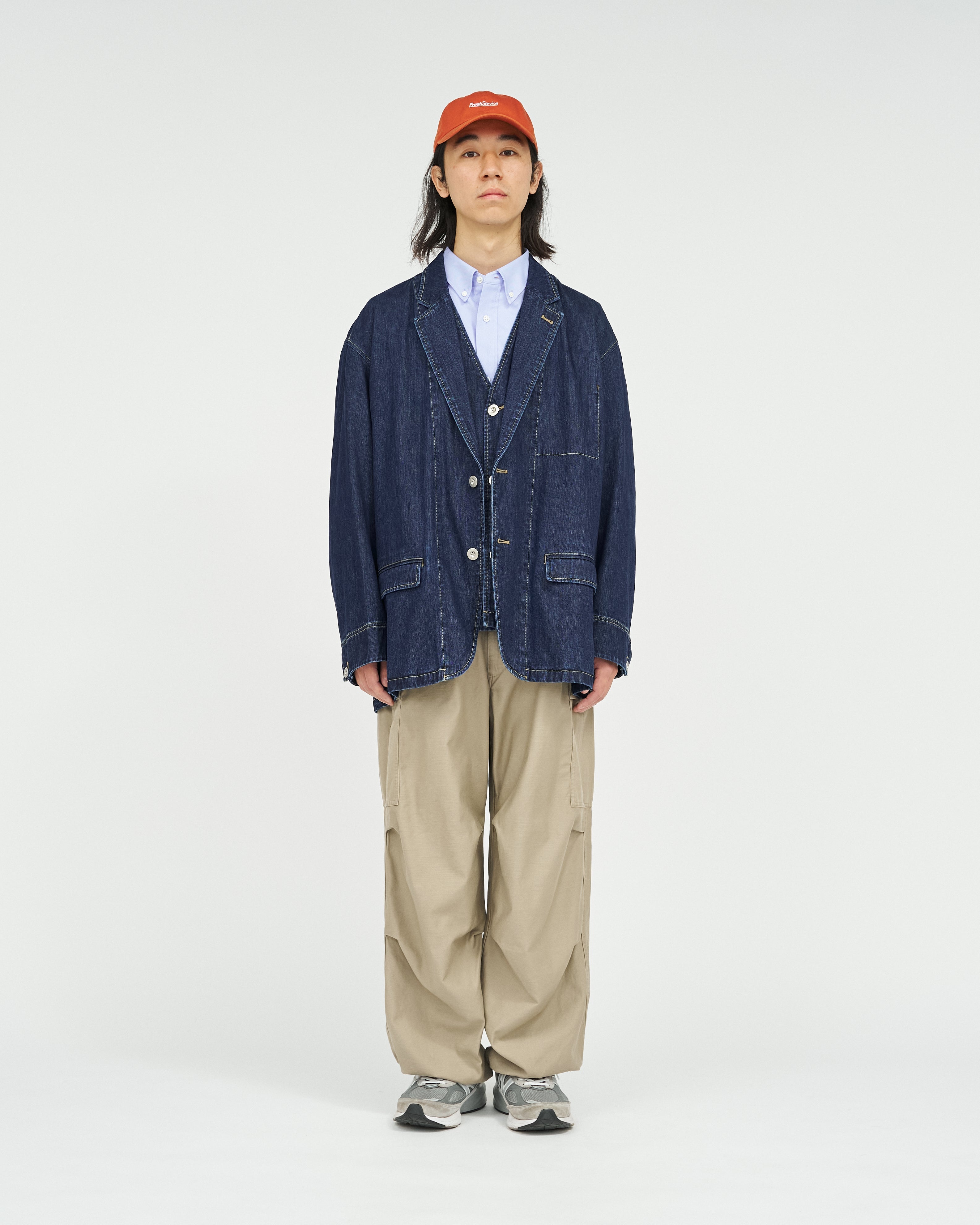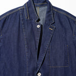 ワークジャケットをベースに、テーラードの要素を取り入れたFreshServiceらしいアプローチの一着。素材には、軽量でソフトな肌触りの9.5ozインディゴデニムを採用。シーズンレスで着用できる汎用性と、こなれた雰囲気を併せ持つ。自然な風合いを残したワンウォッシュと、長年着込んだような味わいを演出するフェイド加工の2タイプを展開。同素材のWORKERS DENIM シリーズとの3ピースと合わせた着用もおすすめ。オーバーサイズのシルエットで、リラックス感と存在感を兼ね備えた一着に。