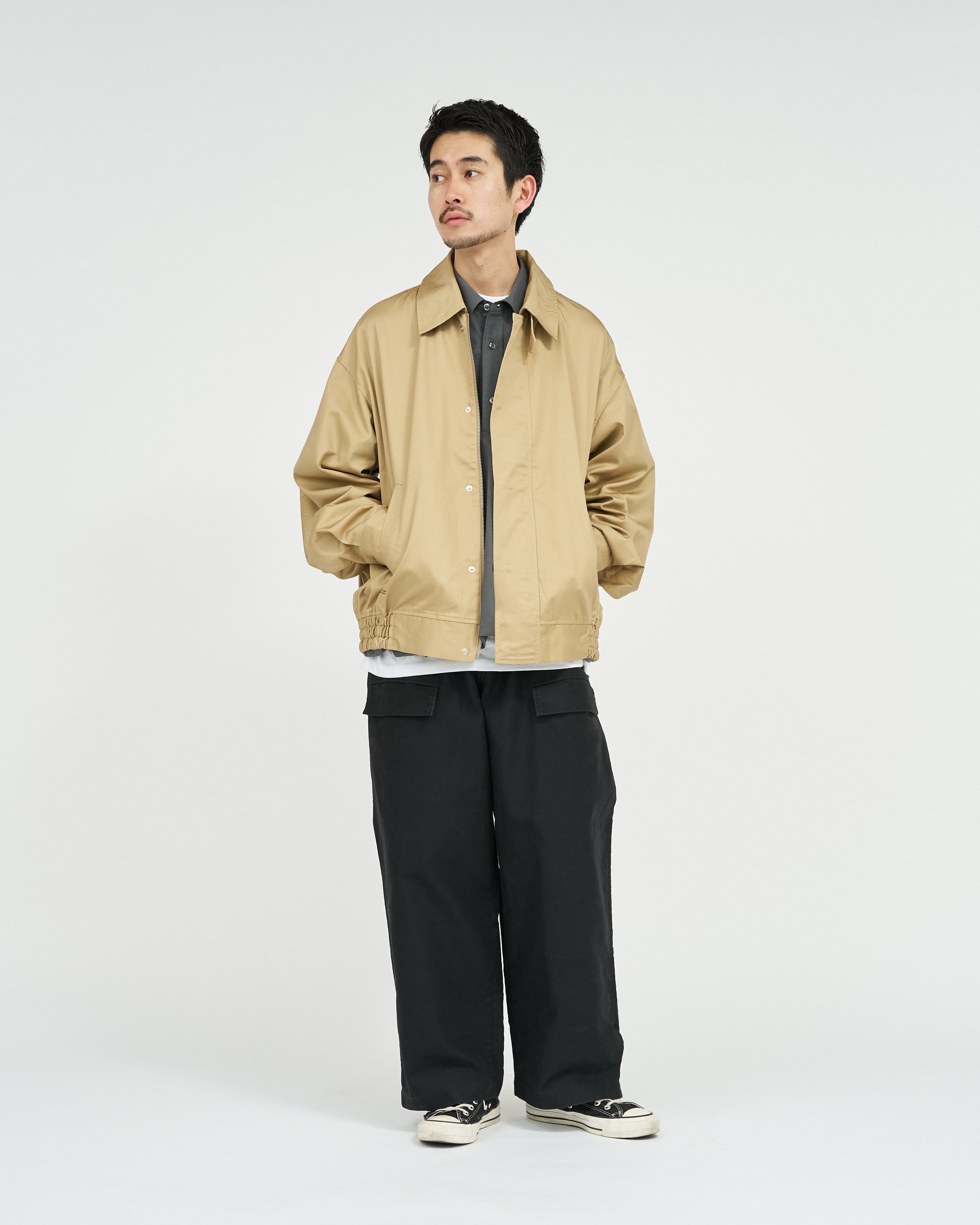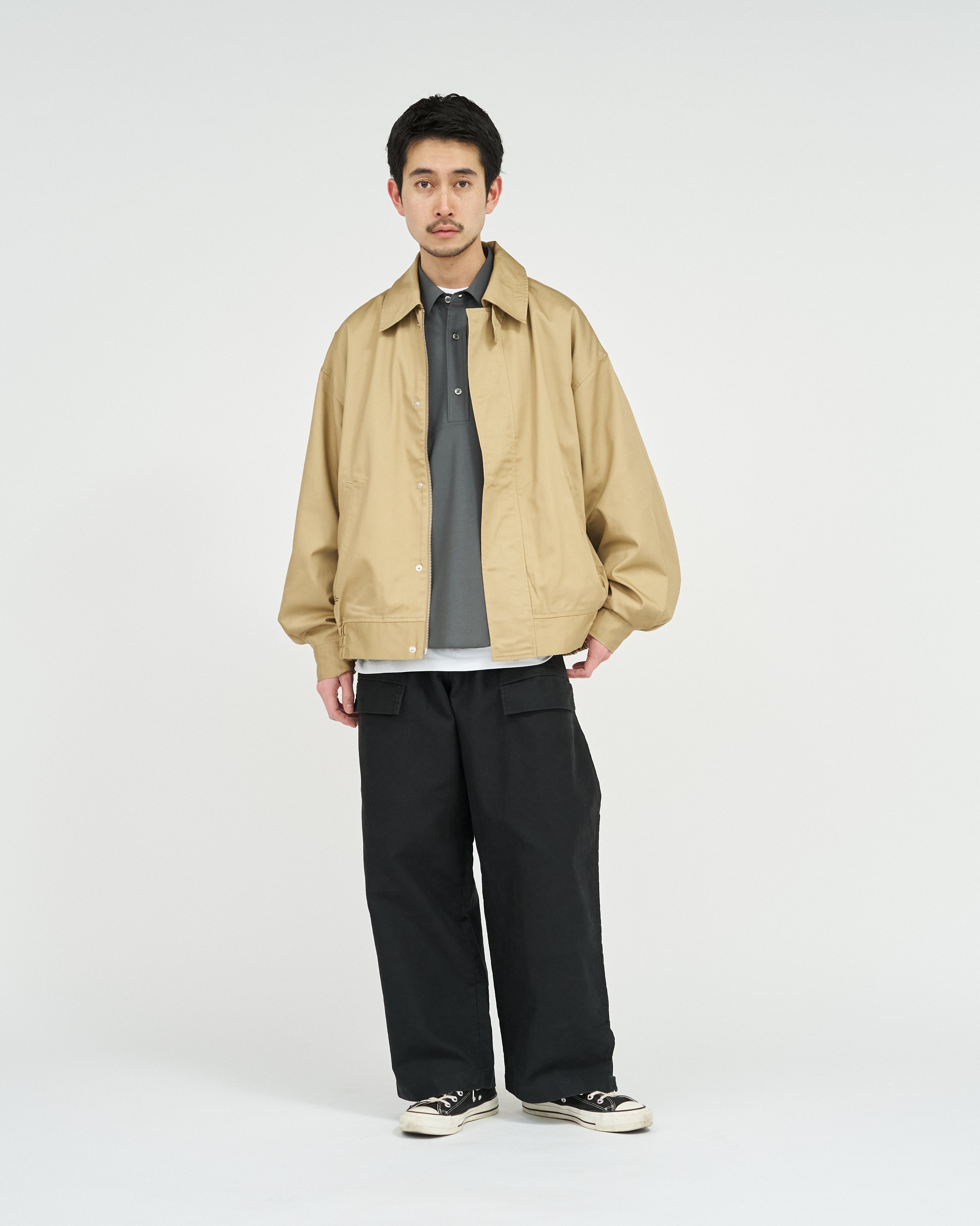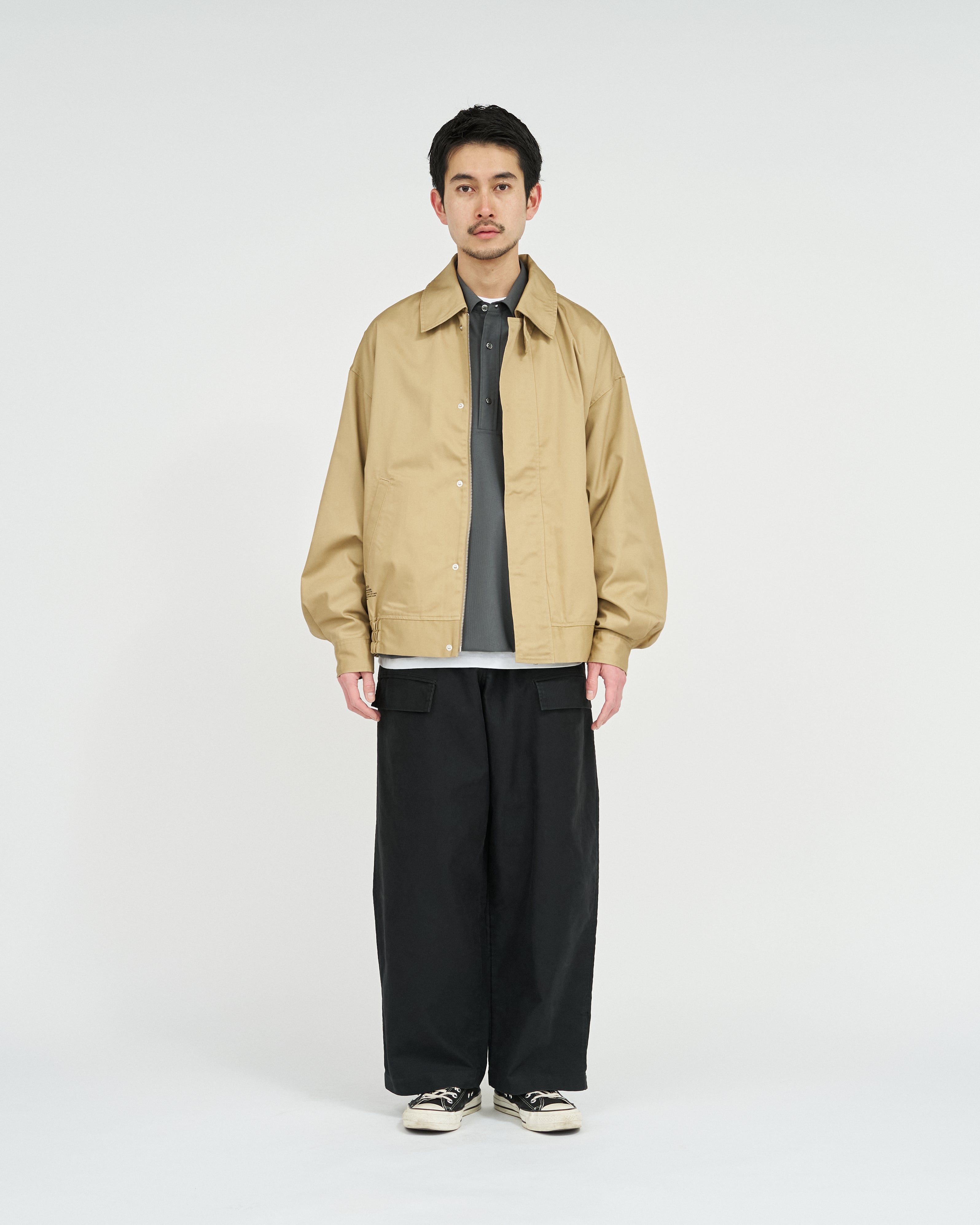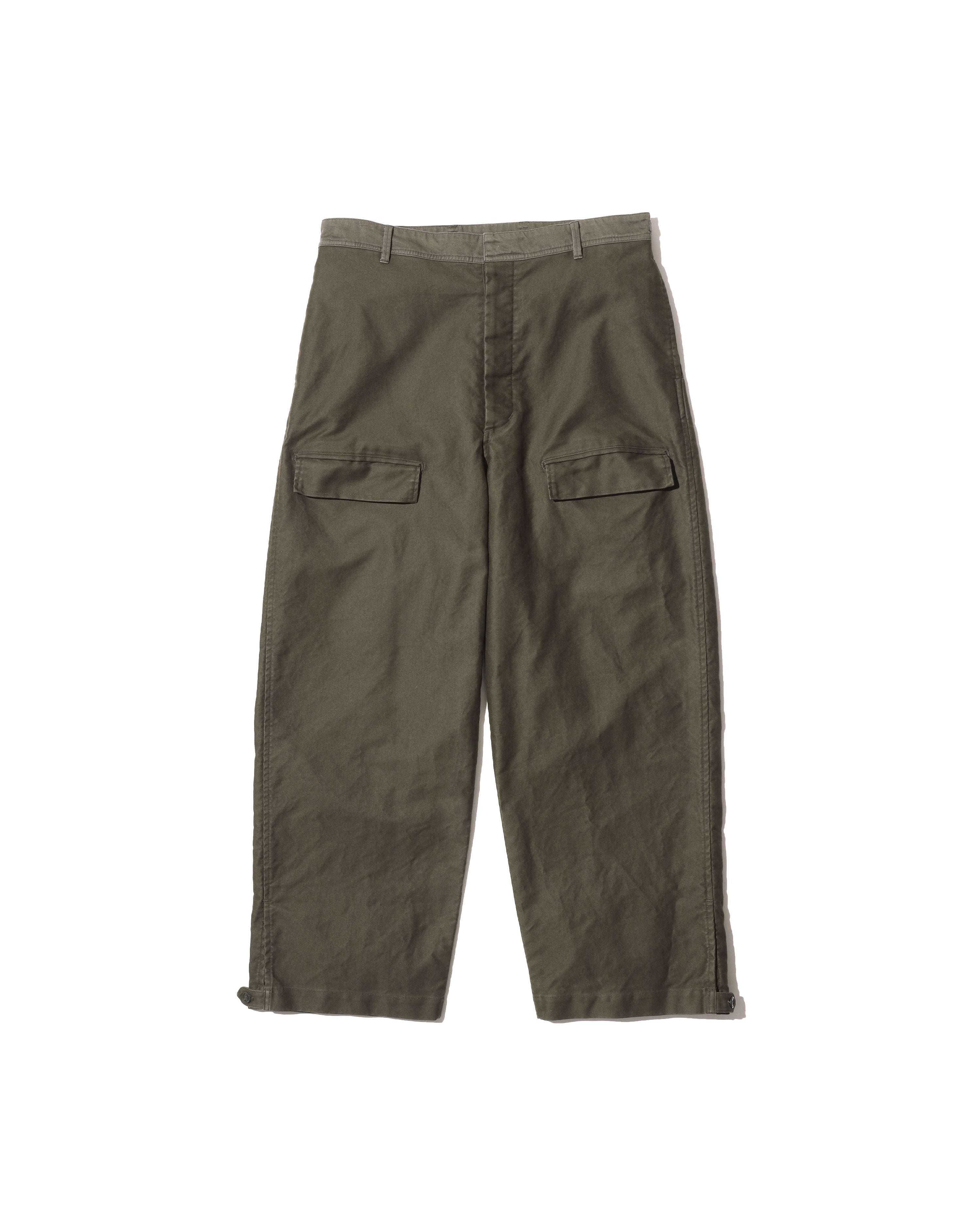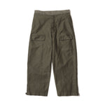 往年のタンカースパンツがデザインソース。オリジナルのディテールを忠実に再現にしながらも一枚でも存在感のある一着に。FreshServieらしくゆったりしたサイジングでモダナイズ。無骨なミリタリーファブリックに、長年着込んだようなフェード感を加えることで、深みのある表情に。