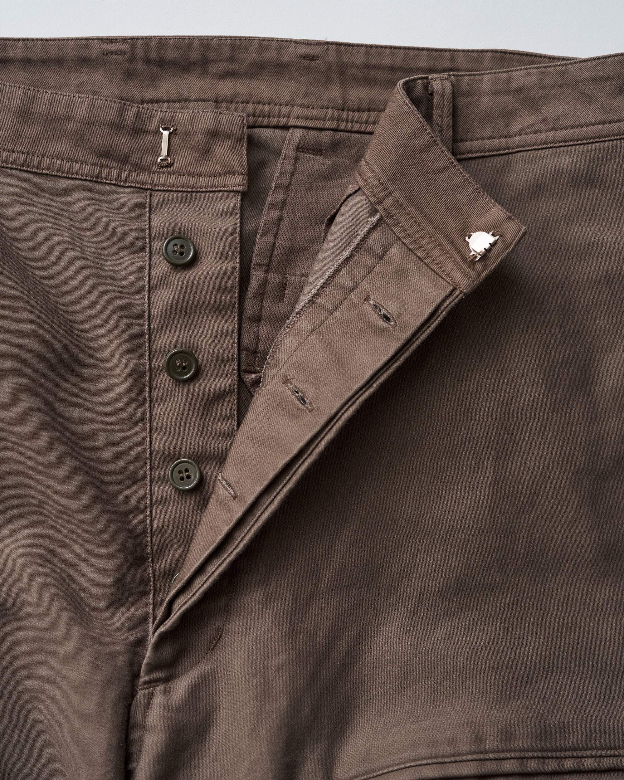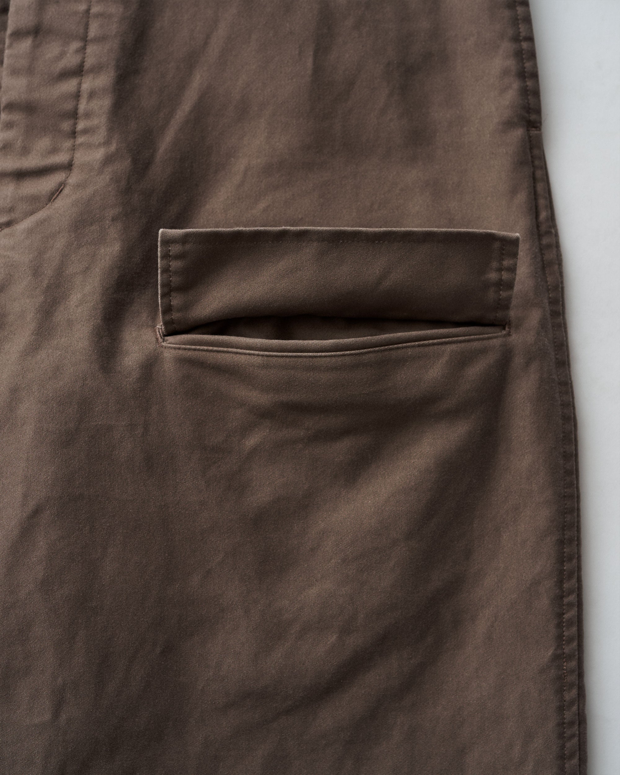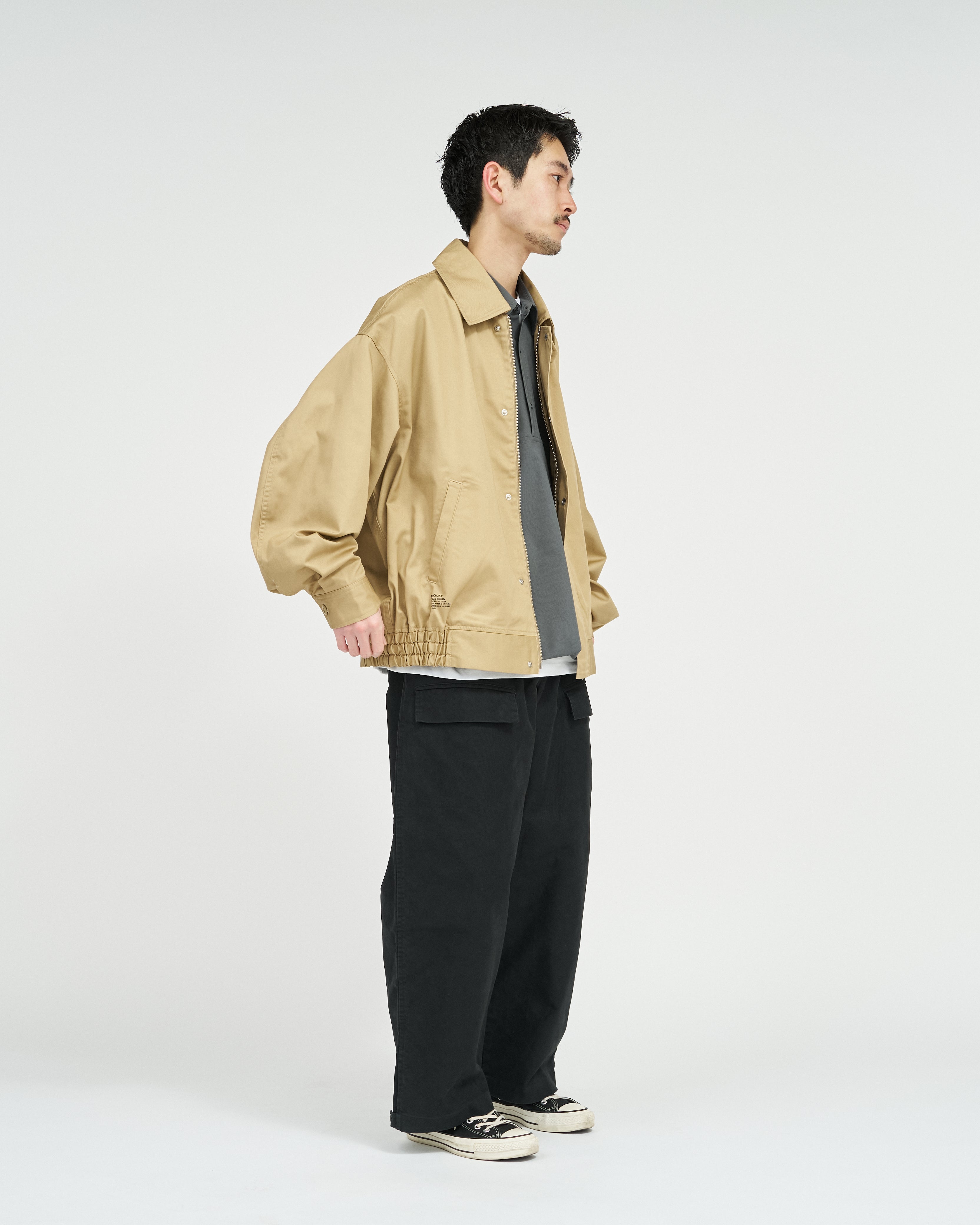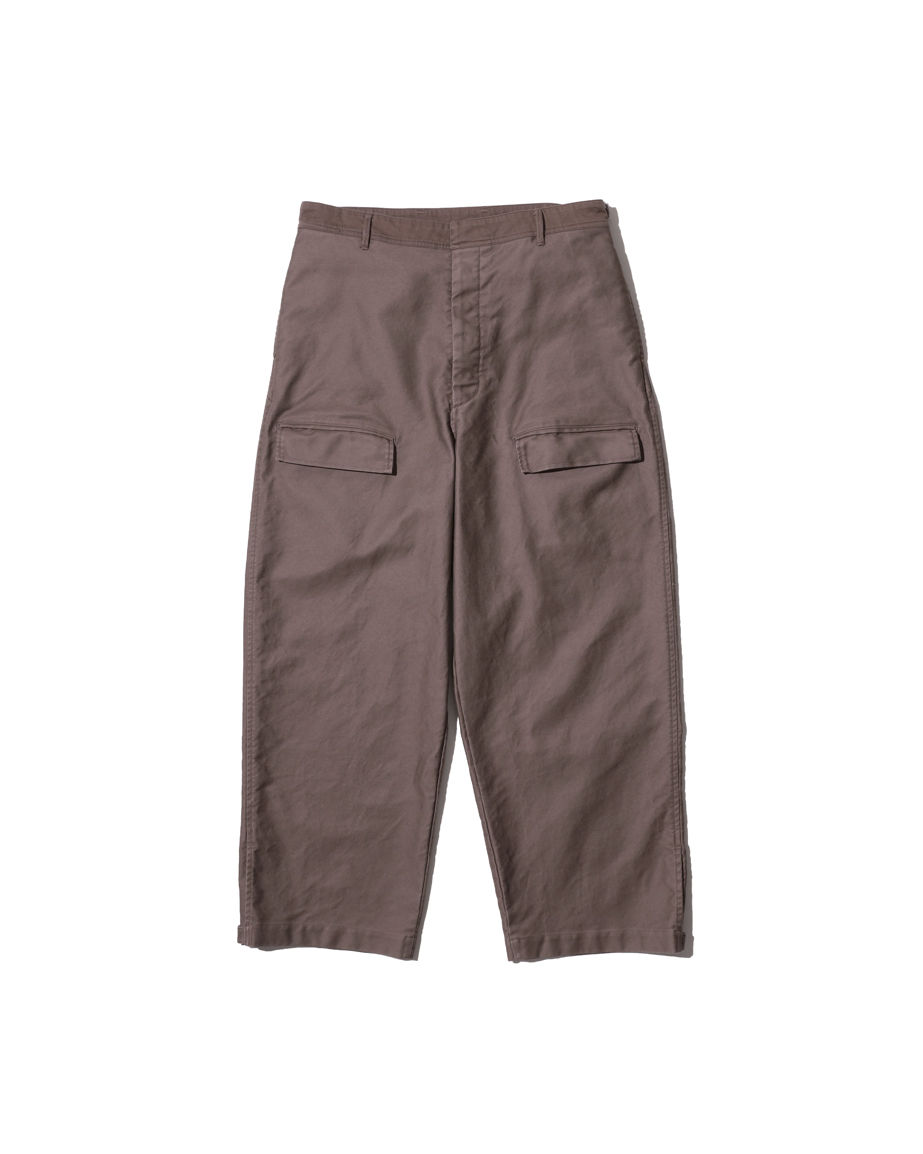 往年のタンカースパンツがデザインソース。オリジナルのディテールを忠実に再現にしながらも一枚でも存在感のある一着に。FreshServieらしくゆったりしたサイジングでモダナイズ。無骨なミリタリーファブリックに、長年着込んだようなフェード感を加えることで、深みのある表情に。