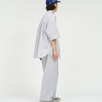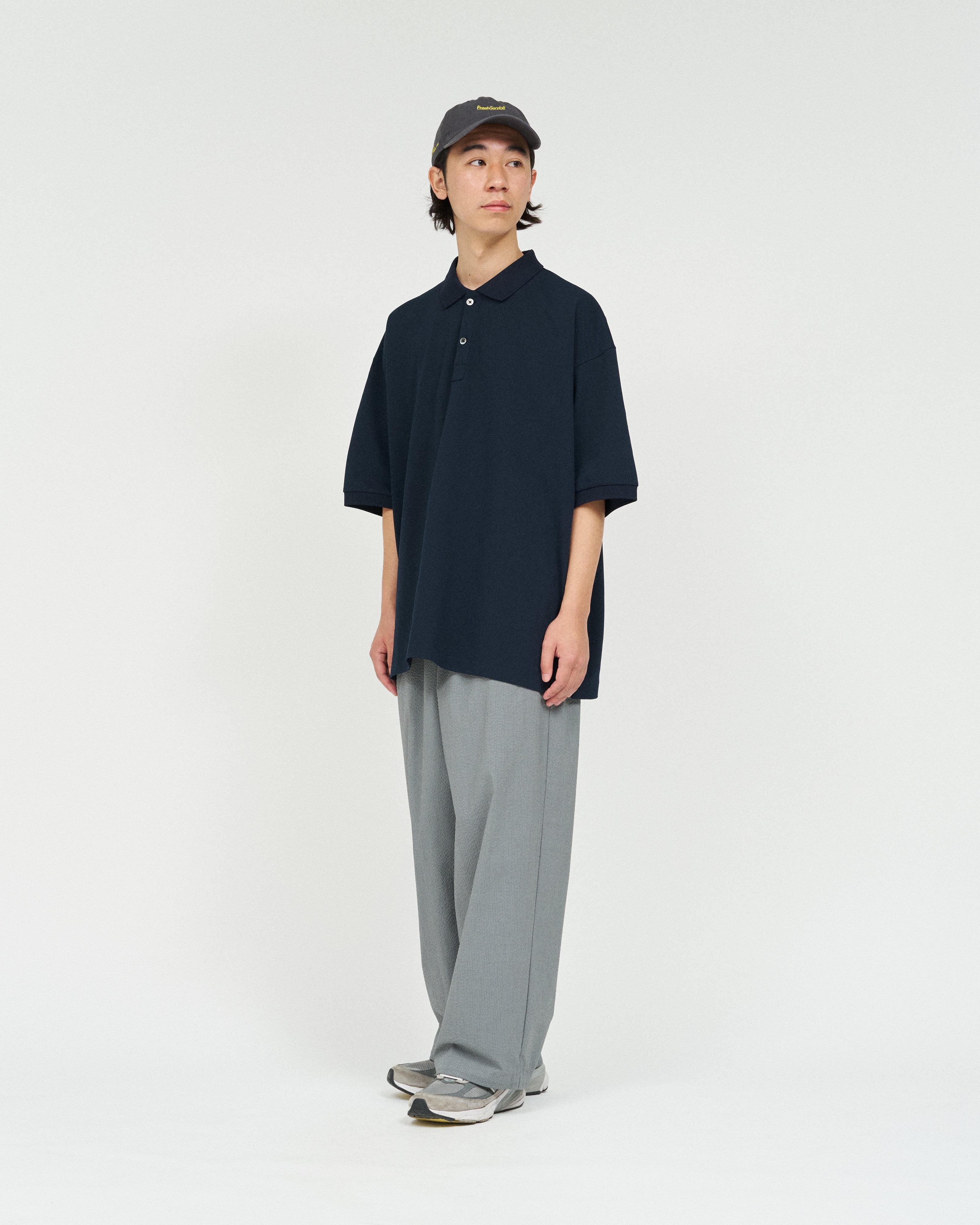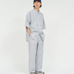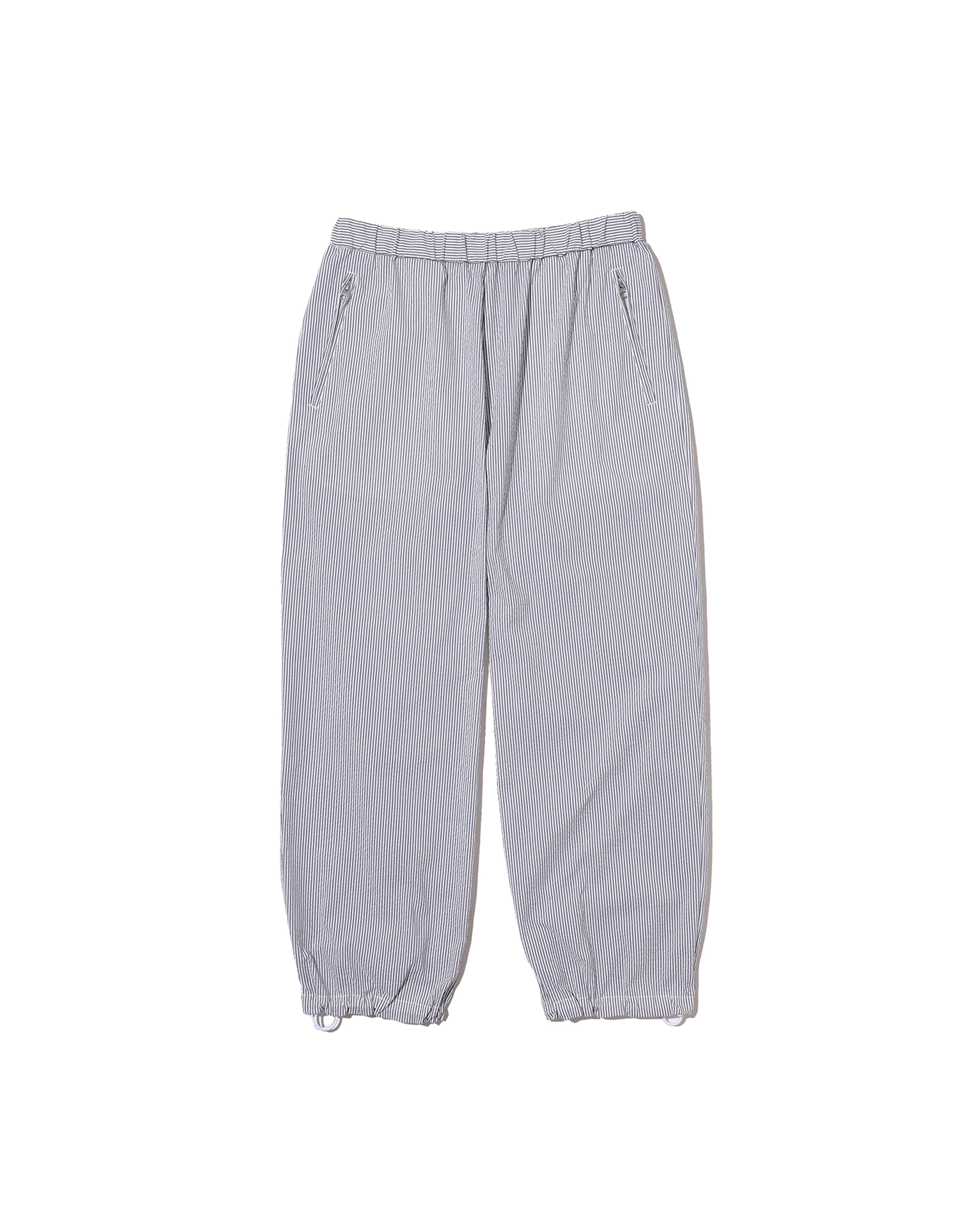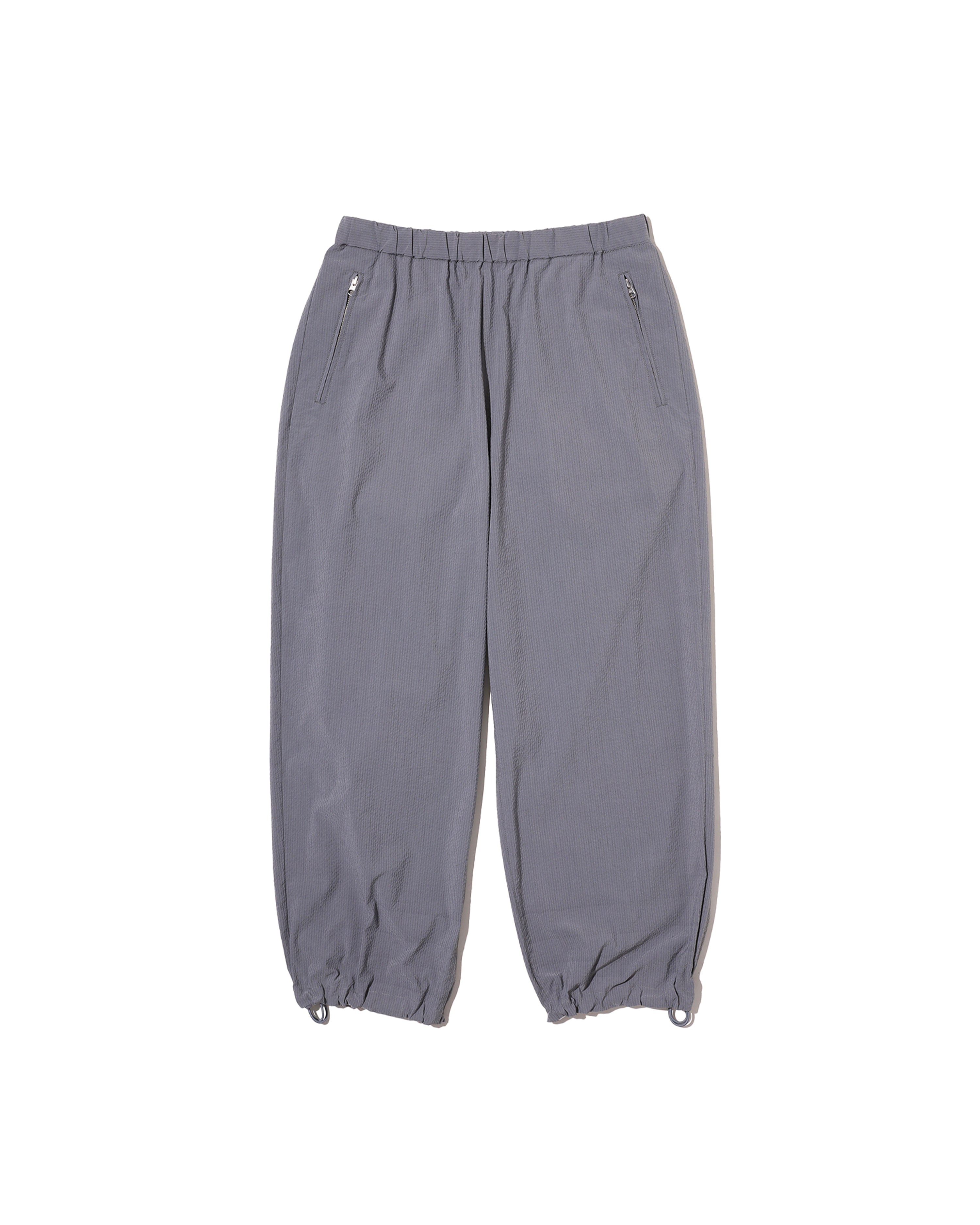 清涼感のあるシアサッカー素材で仕立てた、軽快さと品の良さを兼ね備えたトラックパンツ。COOLMAX®糸を使用したシアサッカー生地は、汗ばむ季節でもドライな穿き心地をキープし、軽やかな着用感が魅力。ルーズなシルエットに裾のドローコードを配し、スポーティさと品の良さが共存する一本に仕上げています。暑い季節のスタイリングを、軽やかに、そして快適に楽しめる一本です。