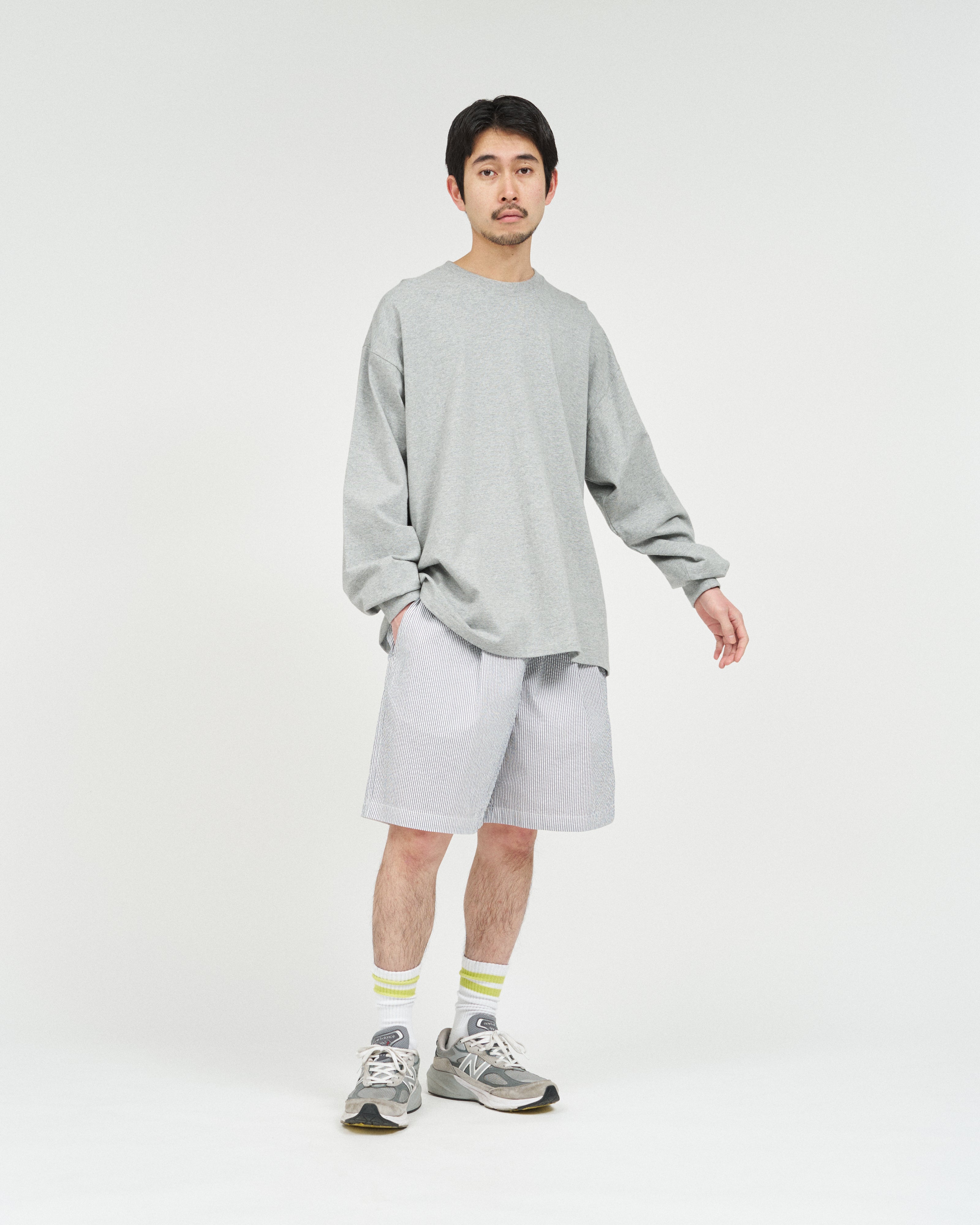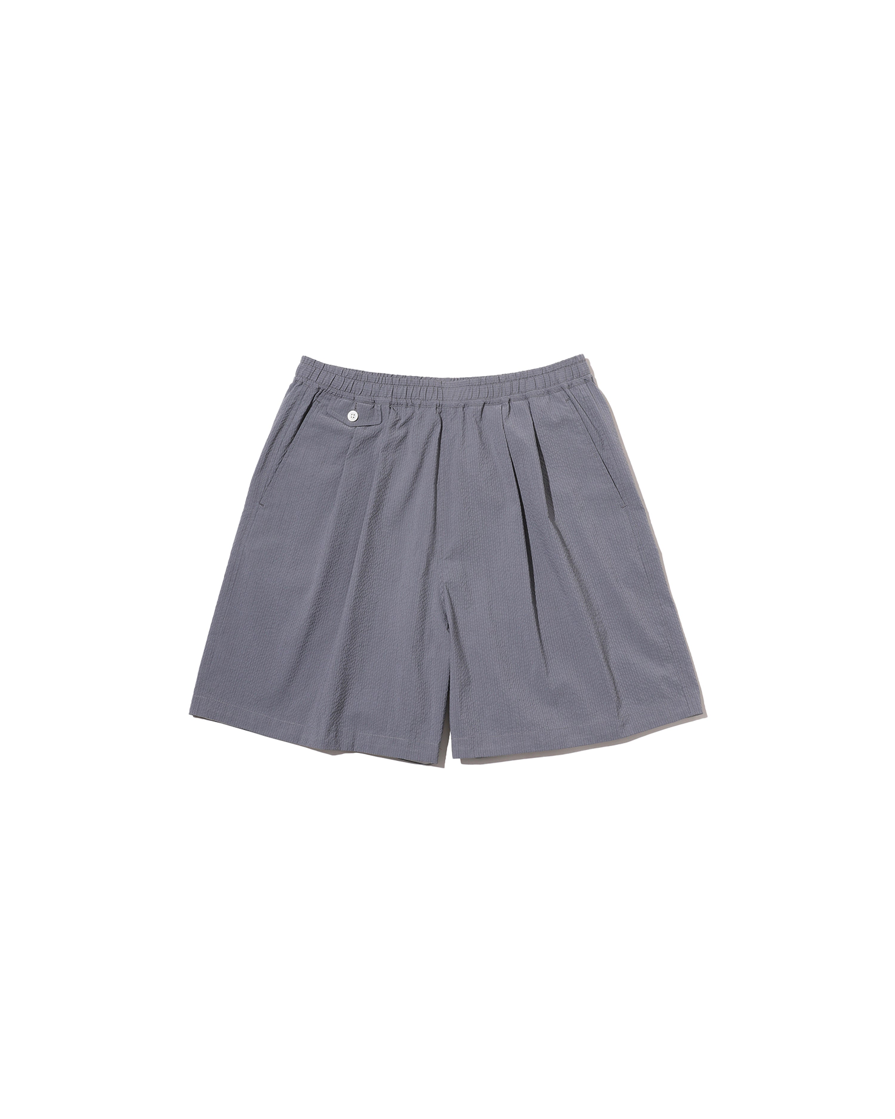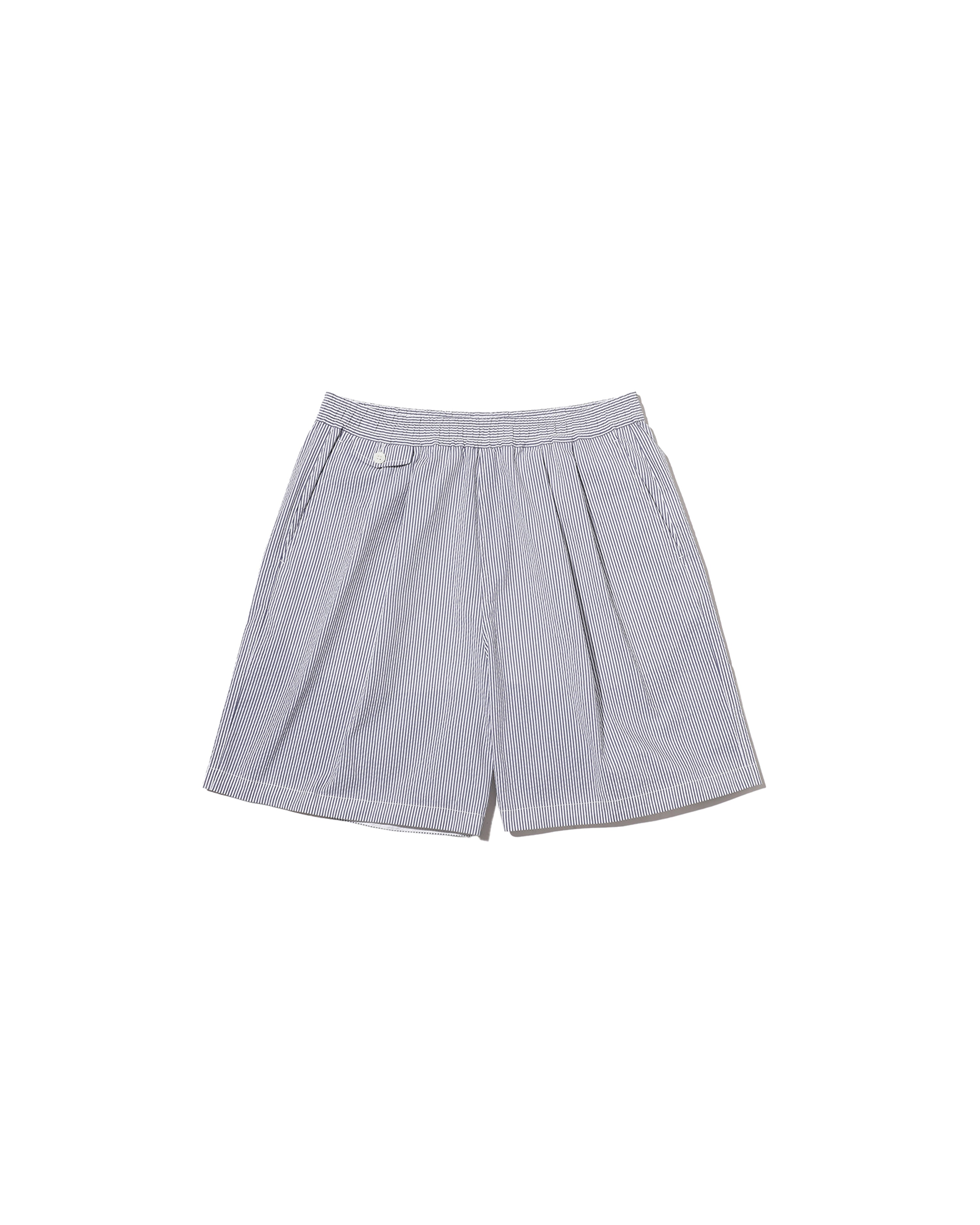 清涼感のあるシアサッカー素材で仕立てた、軽快さと品の良さを兼ね備えたイージーショーツ。COOLMAX®糸を使用したシアサッカー生地は、汗ばむ季節でもドライな穿き心地をキープし、軽やかな着用感が魅力。イージーショーツはタック入りの設計とゴムウエストにより、リラックス感がありながらもどこかプレッピーな佇まいに。暑い季節のスタイリングを、軽やかに、そして快適に楽しめる一本です。