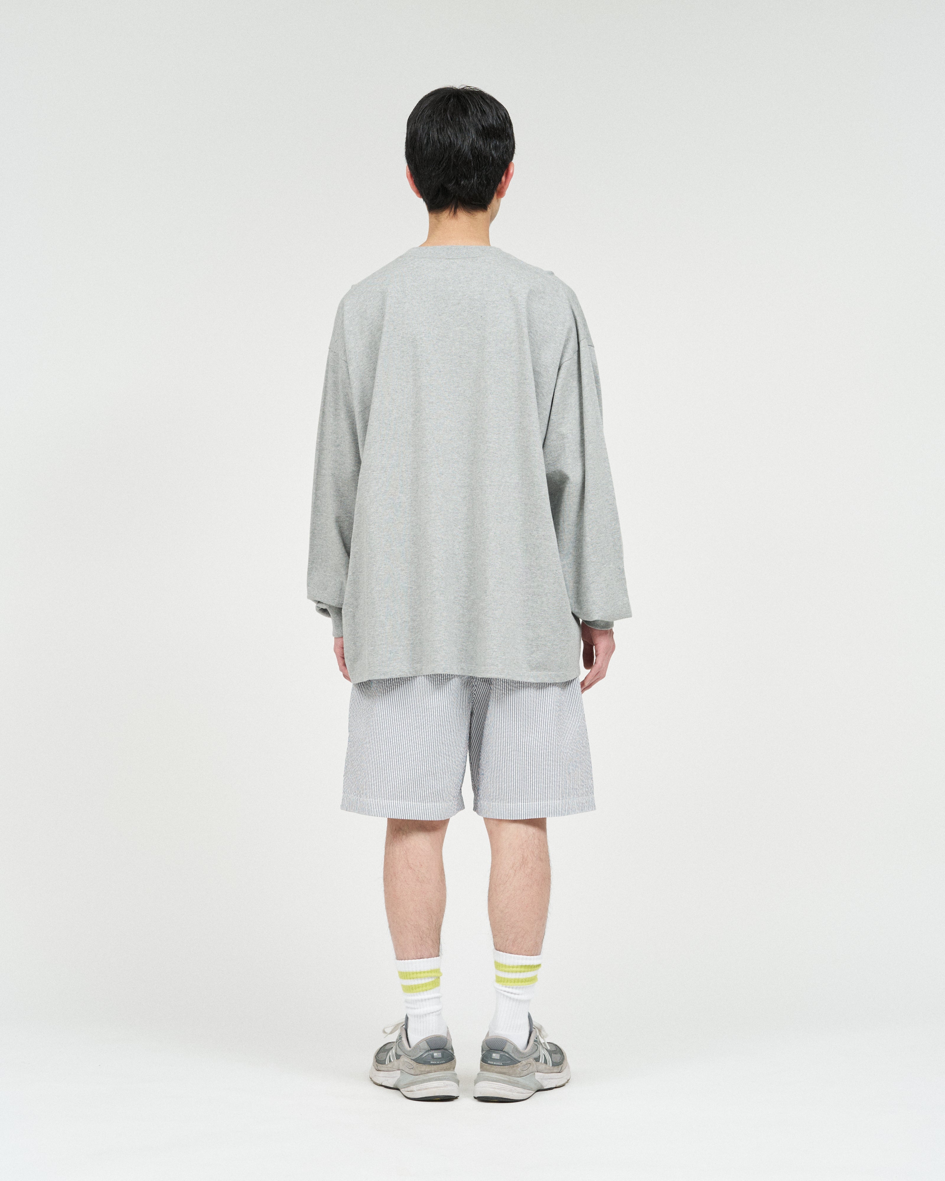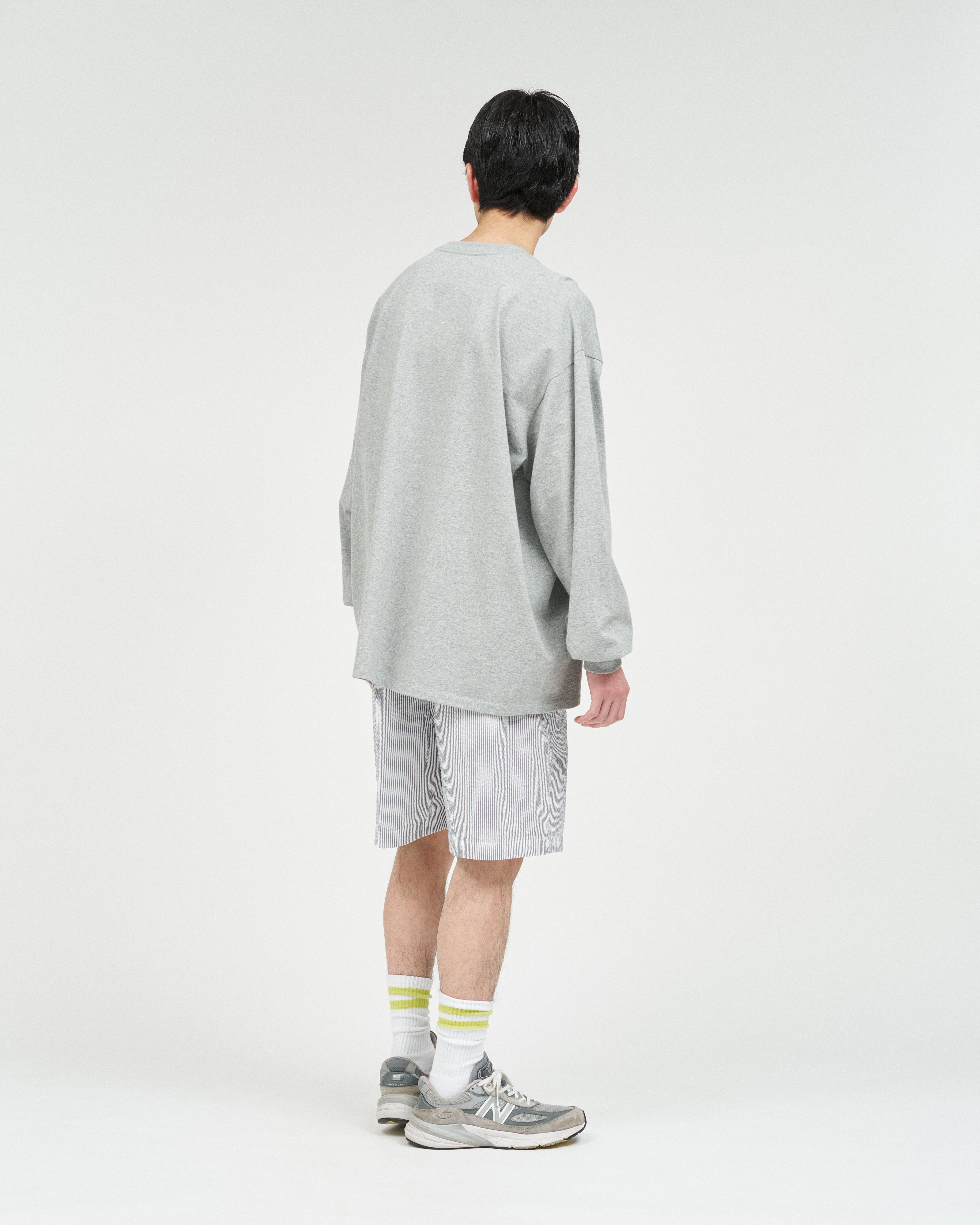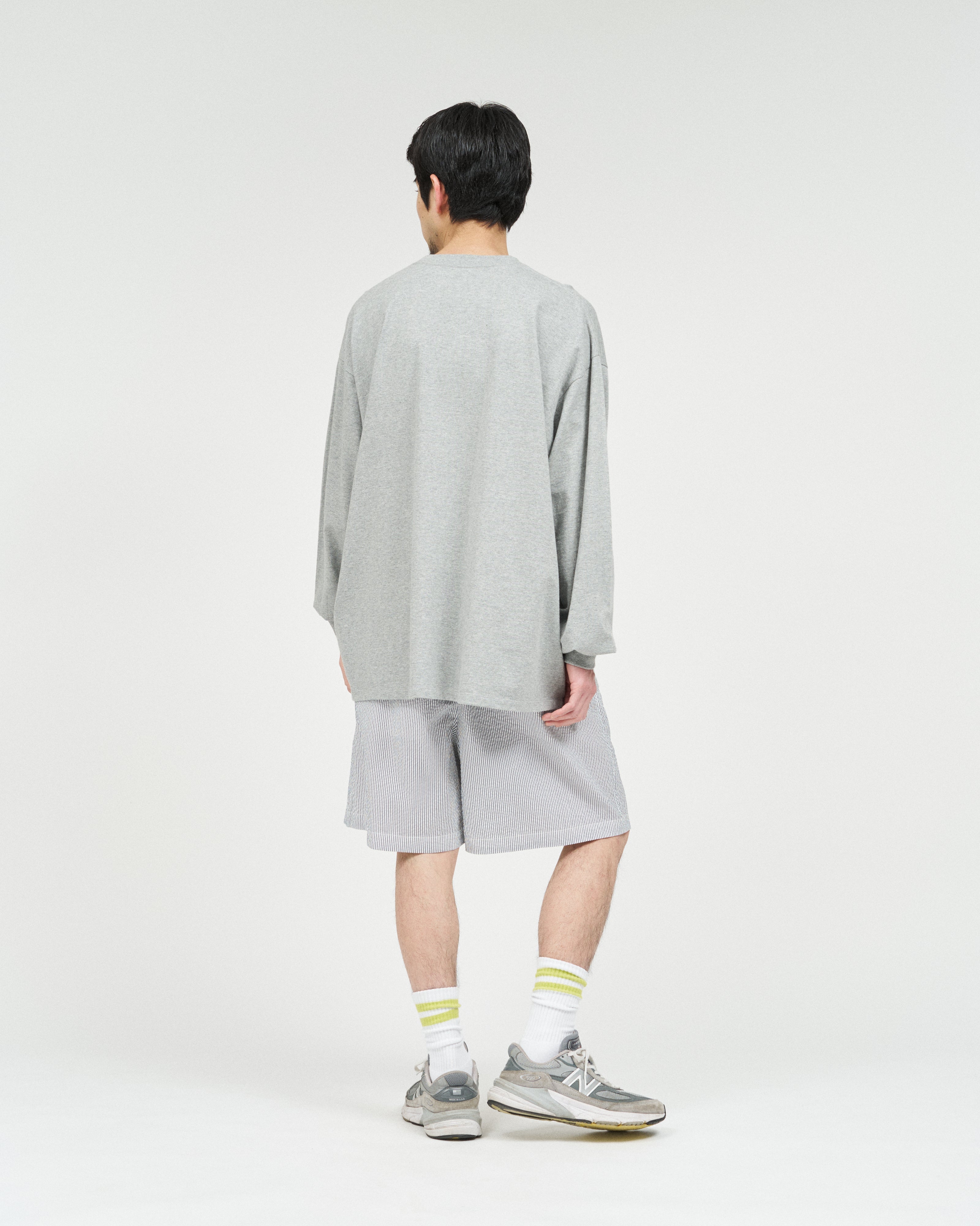 清涼感のあるシアサッカー素材で仕立てた、軽快さと品の良さを兼ね備えたイージーショーツ。COOLMAX®糸を使用したシアサッカー生地は、汗ばむ季節でもドライな穿き心地をキープし、軽やかな着用感が魅力。イージーショーツはタック入りの設計とゴムウエストにより、リラックス感がありながらもどこかプレッピーな佇まいに。暑い季節のスタイリングを、軽やかに、そして快適に楽しめる一本です。