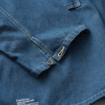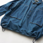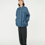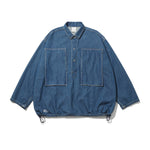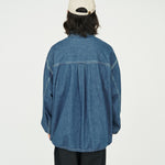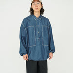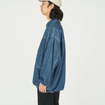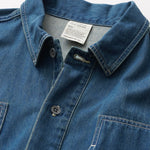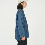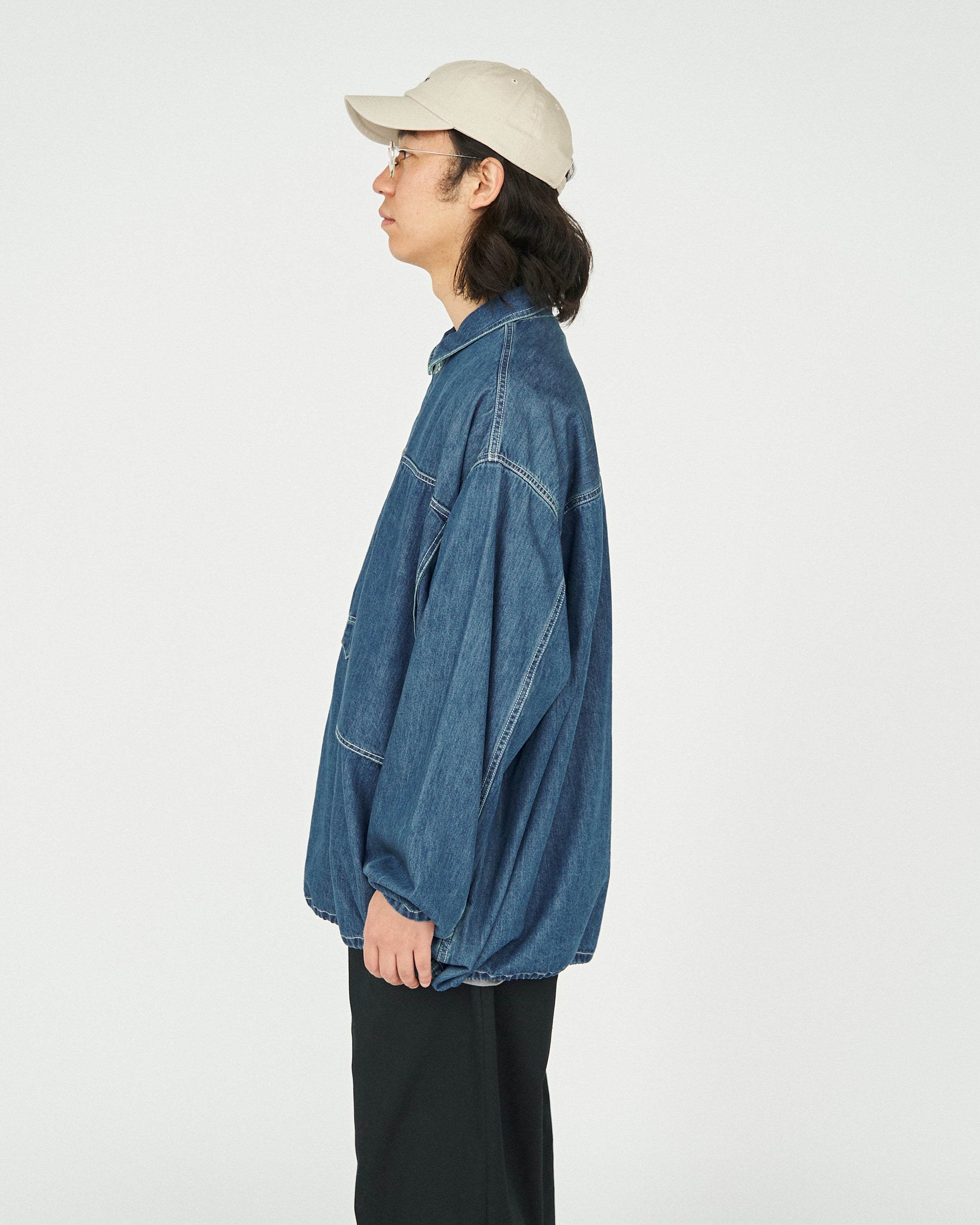 1930年代頃のミリタリーのワークシャツをベースに製作したインディゴデニムシャツ。生地には8.5オンスの程よい厚みで、使い込むほどに表情豊かに褪色していくデニムを採用。胸元のポケットやメタルボタンなどの仕様は再現しつつ、ポケットにはマチを設けて収納のしやすやを考慮。裾にはドローコードを配置しシルエットの調整を可能にするなど、実際の使用を想定した仕様にアップデート。ミリタリーウェアとしての機能はそのままに、現代の都市生活におけるワードローブとして生まれ変わった一枚です。※加工された商品の為、色やサイズに個体差がでます。