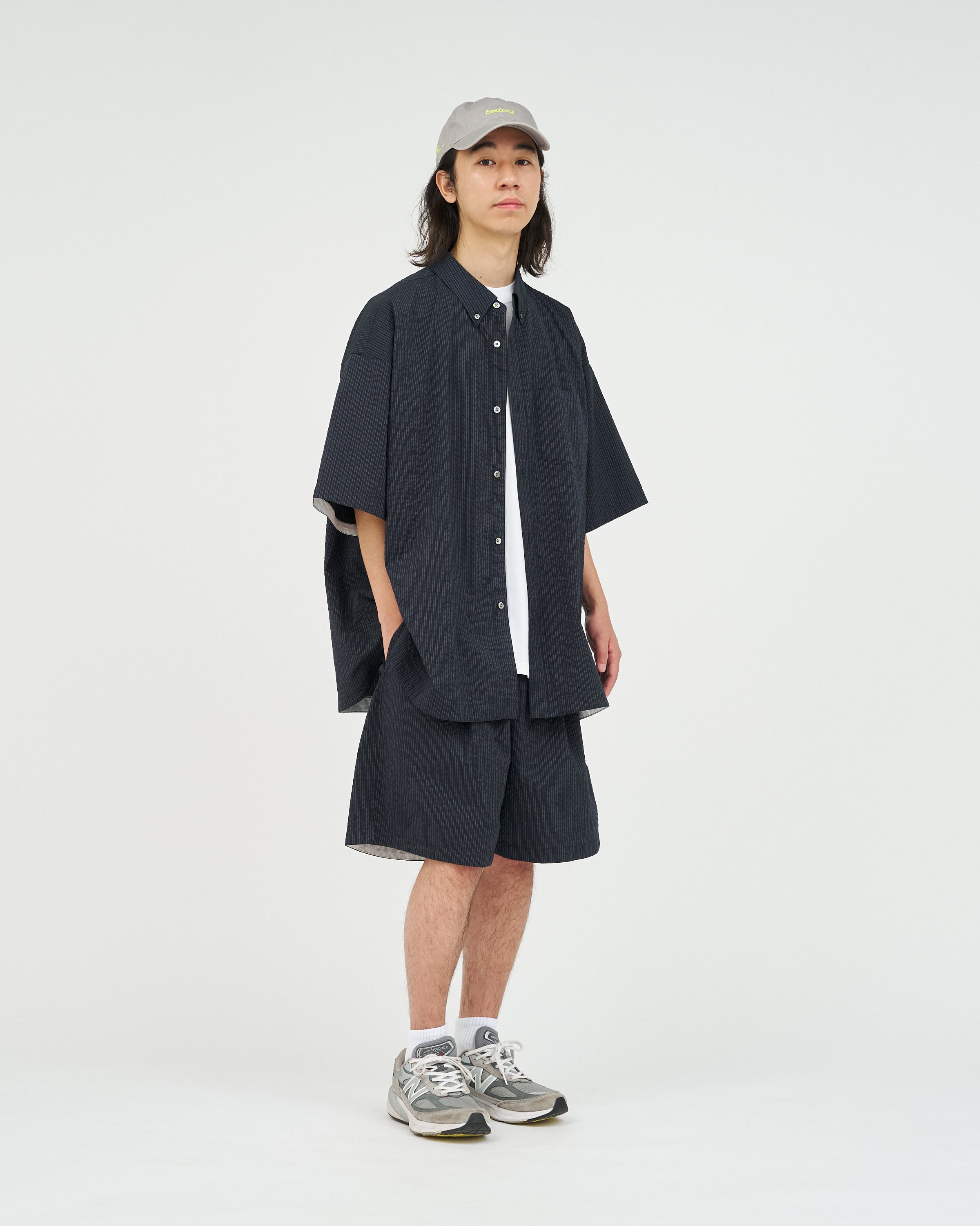 同素材の“SEERSUCKER TRACK PANTS”や"SEERSUCKER EASY SHORTS”とのセットアップでの着用もおすすめです。