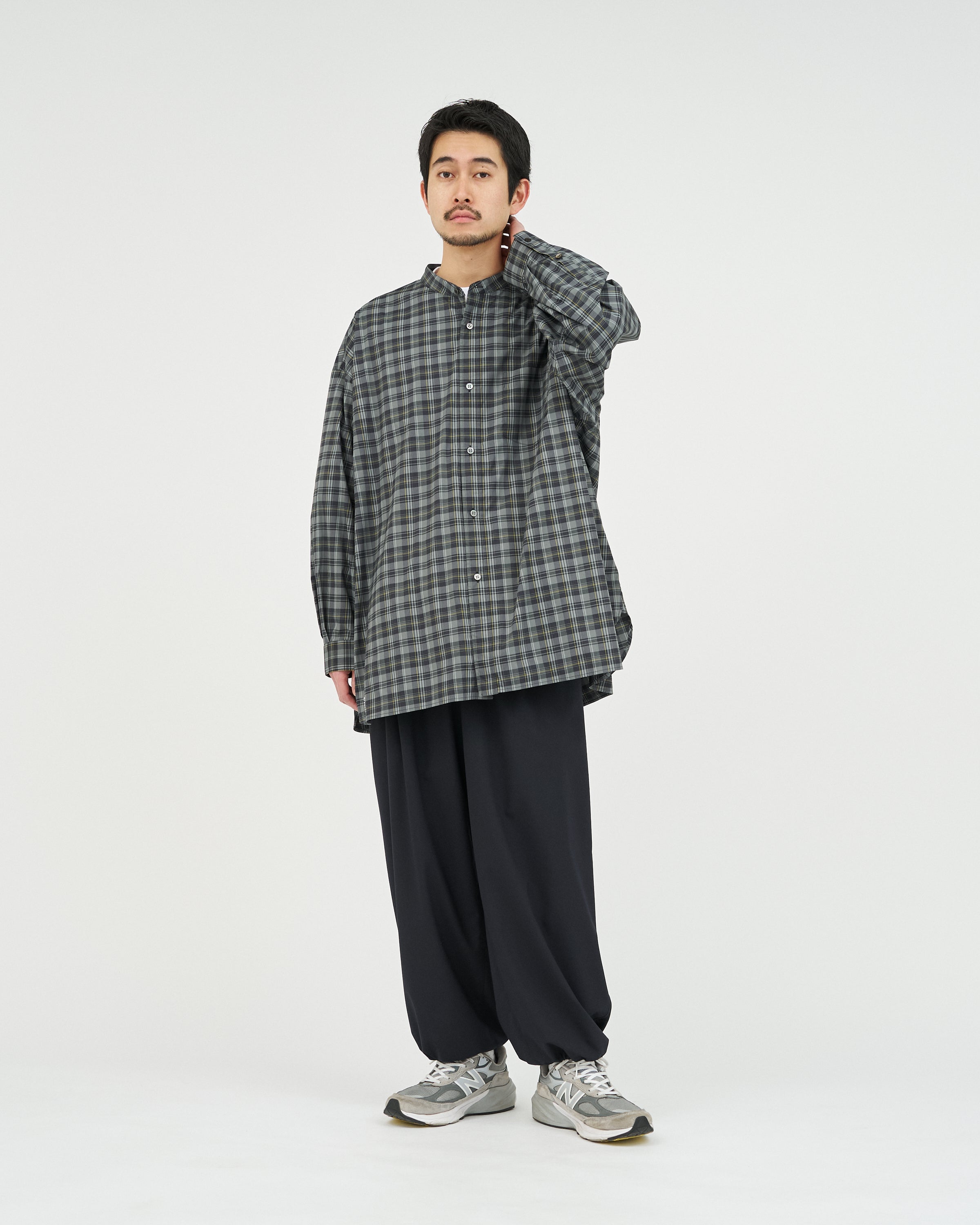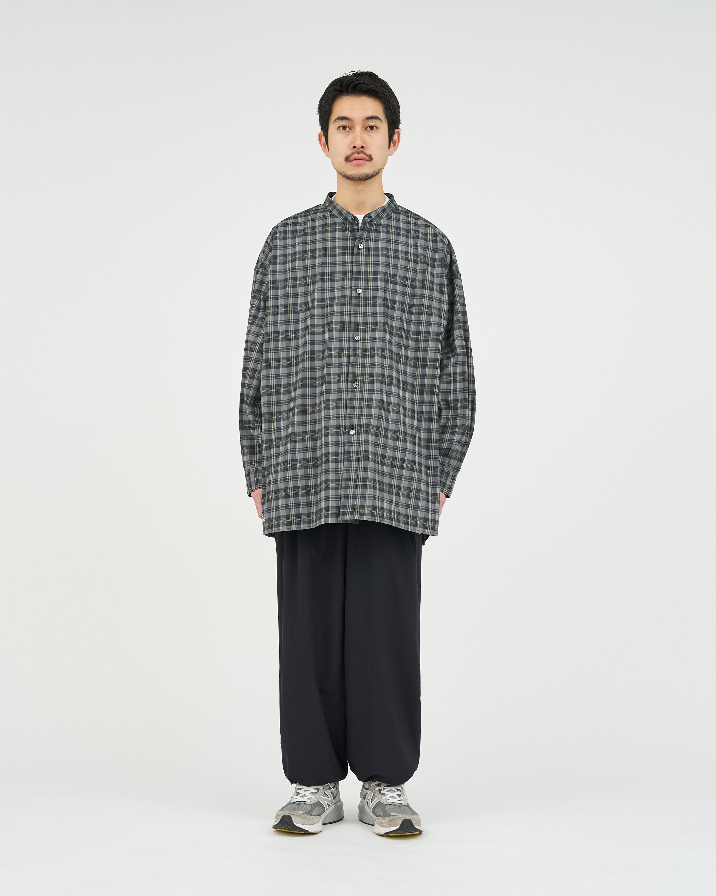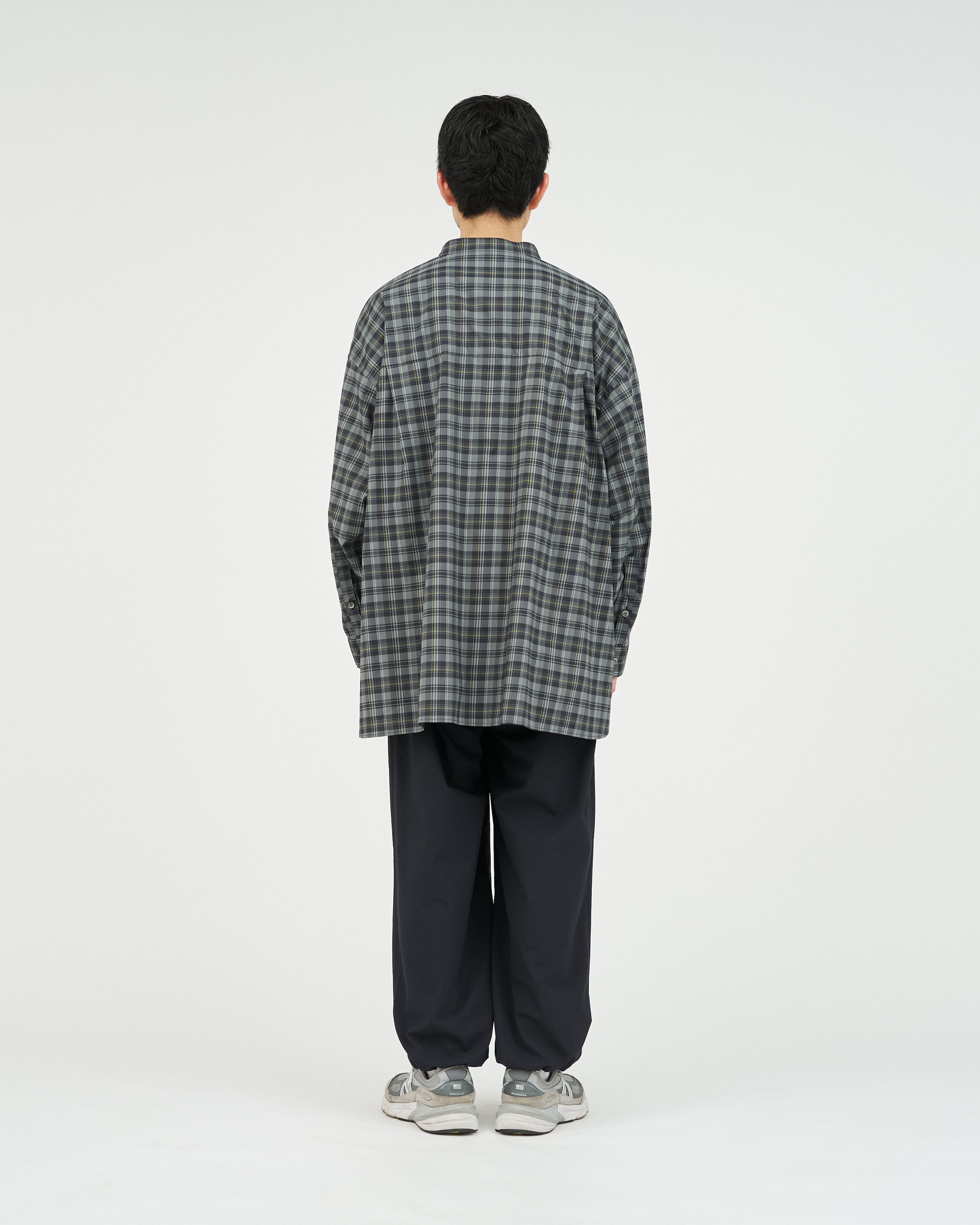 特殊構造のポリエステル糸で織り上げたドライタッチ素材に、オリジナルのマドラスチェックを落とし込んだバンドカラーシャツ。特殊な断面構造を持つポリエステル糸で織り上げることで、ドライな肌触りと優れた速乾性を備えながら、コットンのような自然な風合いを実現。ビビッドなラインを効かせたオリジナルのマドラスチェック柄は、クラシックでありながらもどこか都会的な印象に。一枚でも、レイヤードでも活躍し、毎日手に取りたくなる快適な着用感が魅力の一着です。