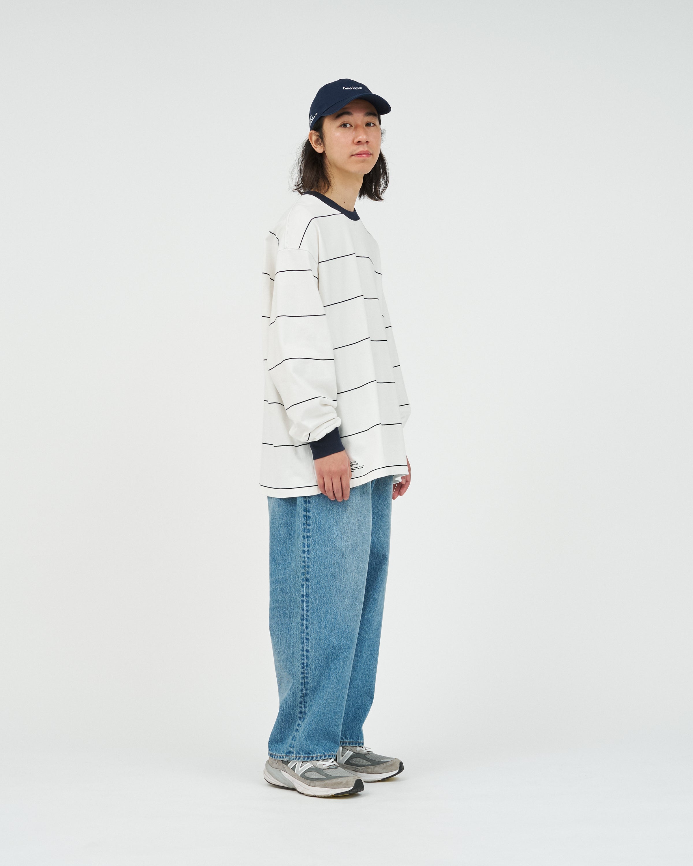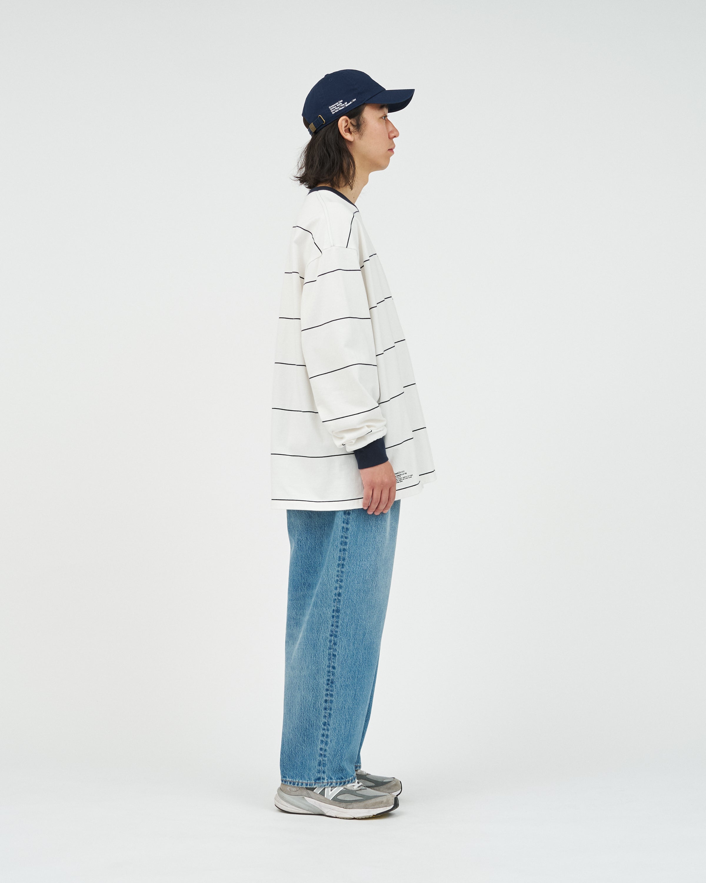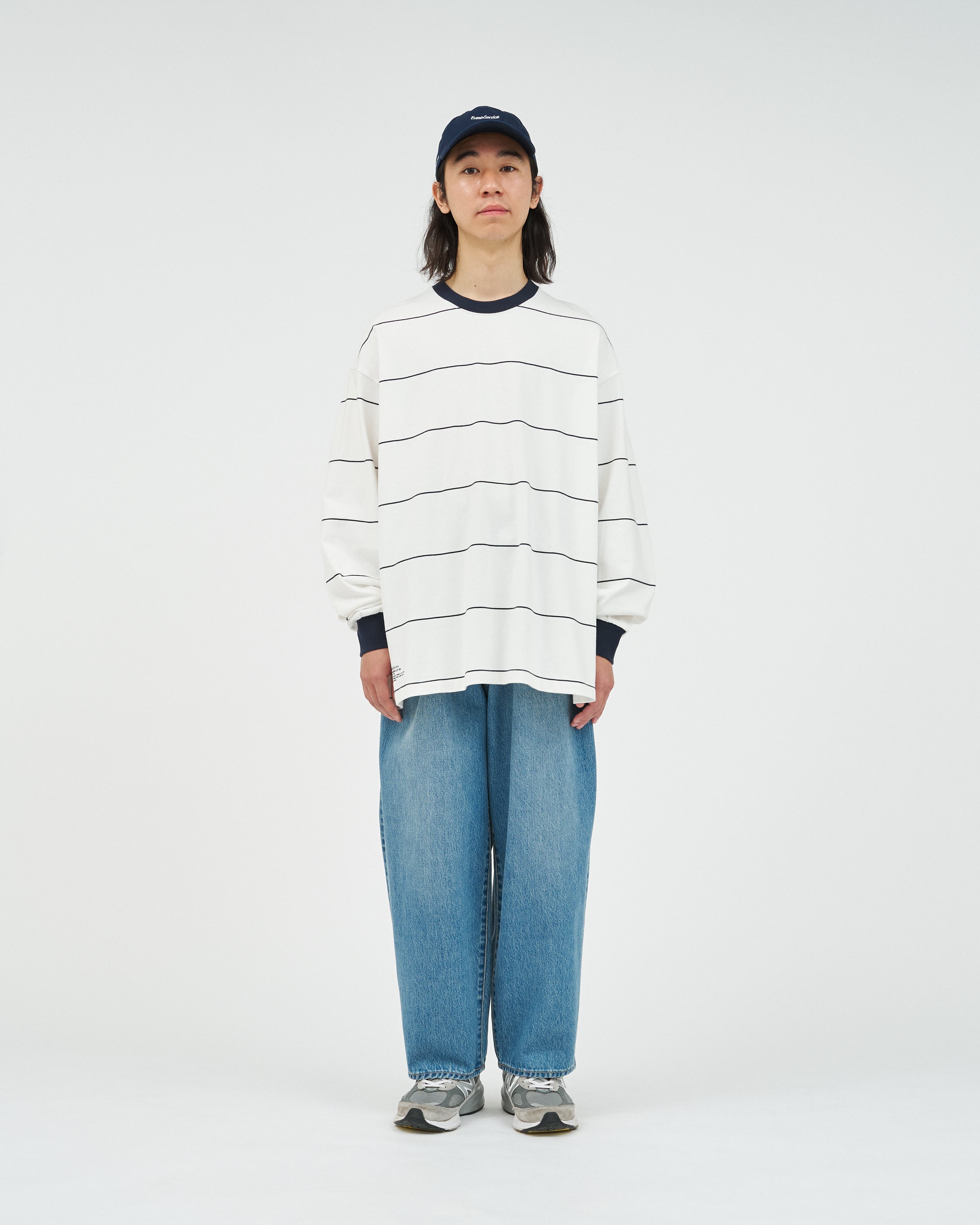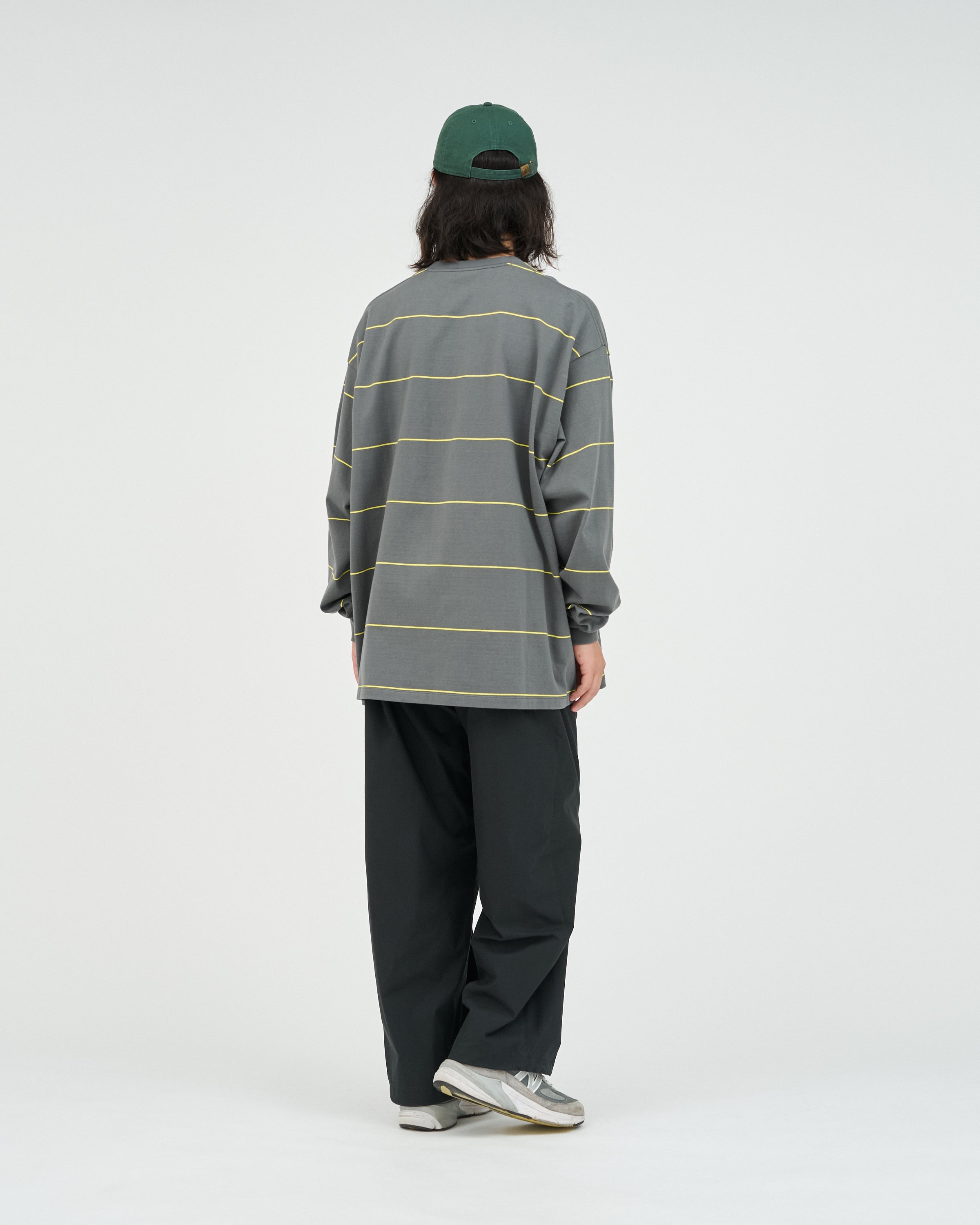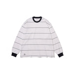 90sスタイルを彷彿とさせる、スケートテイストのピンボーダーを配したロングスリーブTシャツ。コットン100%のボディは、程よい肉感がありながらも柔らかな風合いが特徴。リラックス感のあるオーバーサイズフィットで、スタイリングにラフなムードを添えてくれます。一枚でさらりと着るのはもちろん、ジャケットやブルゾンのインナーとしても程よいアクセントになる一枚です。