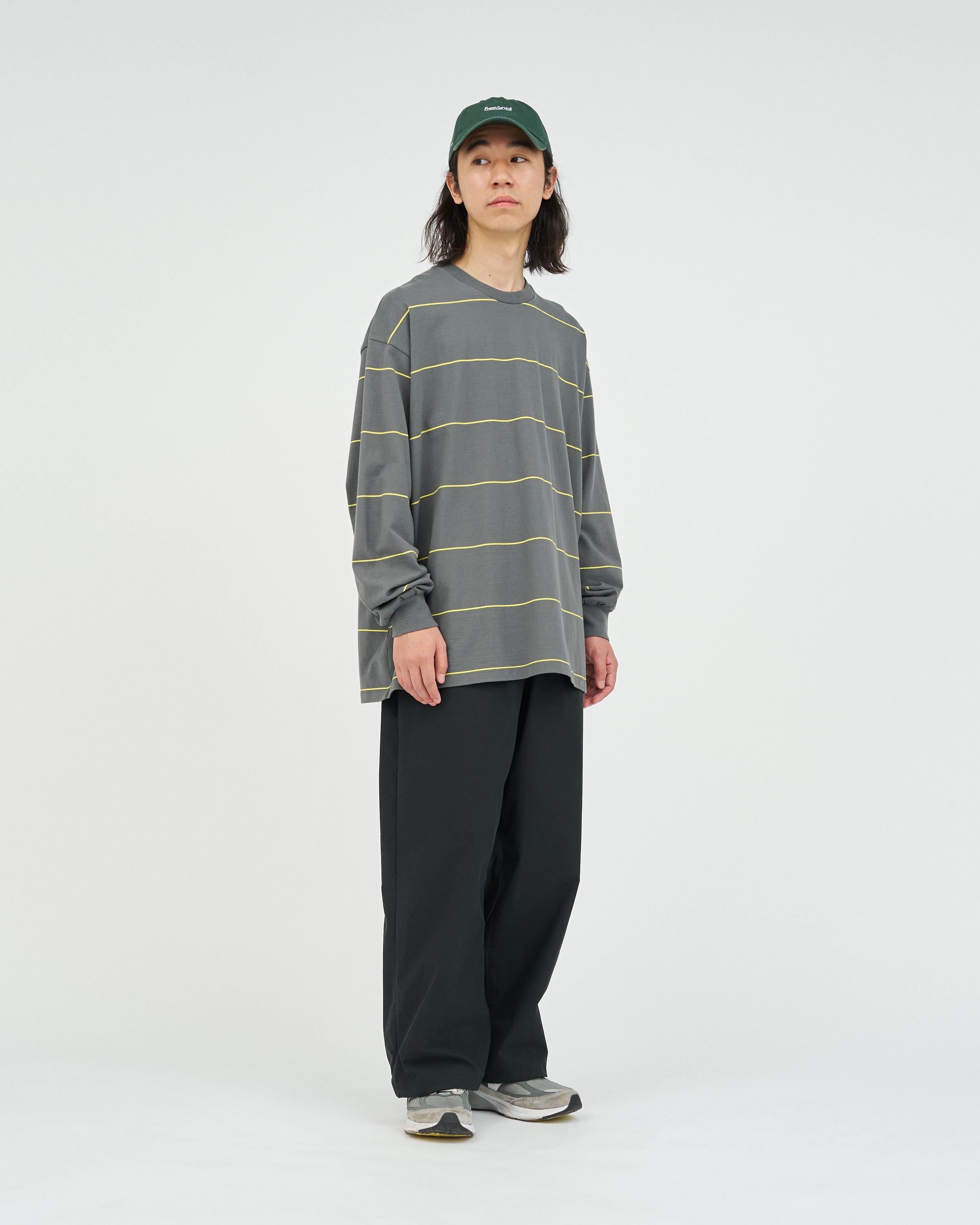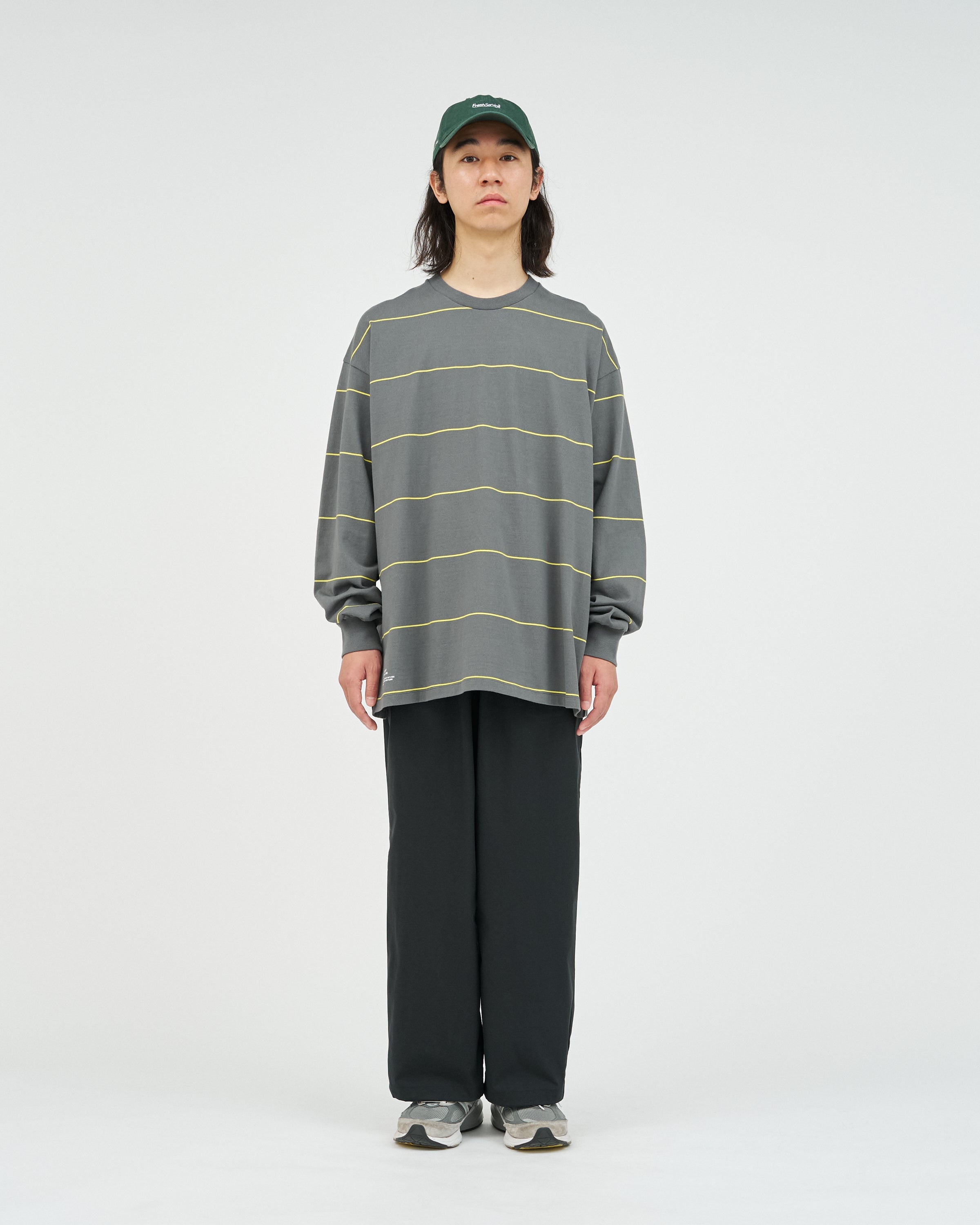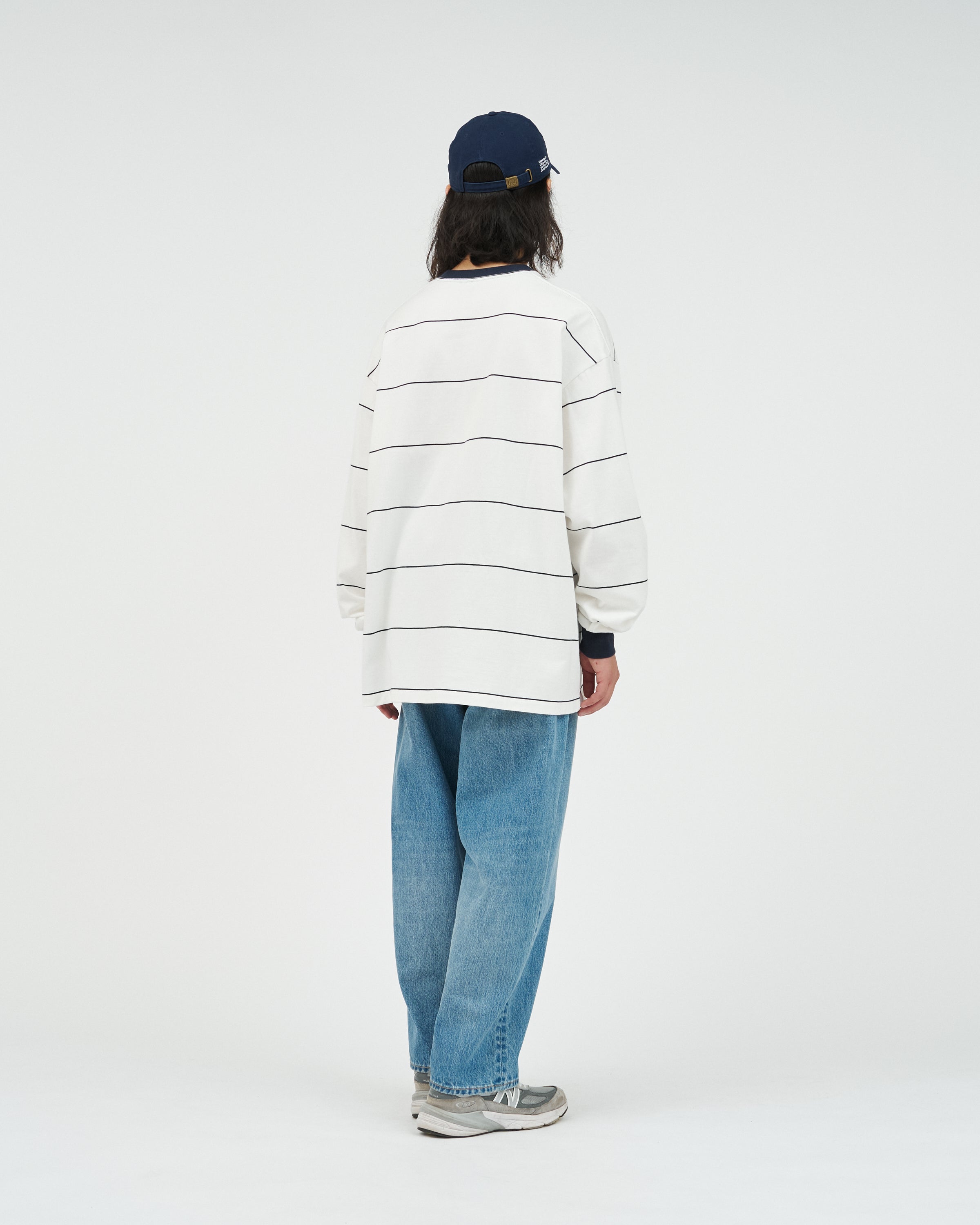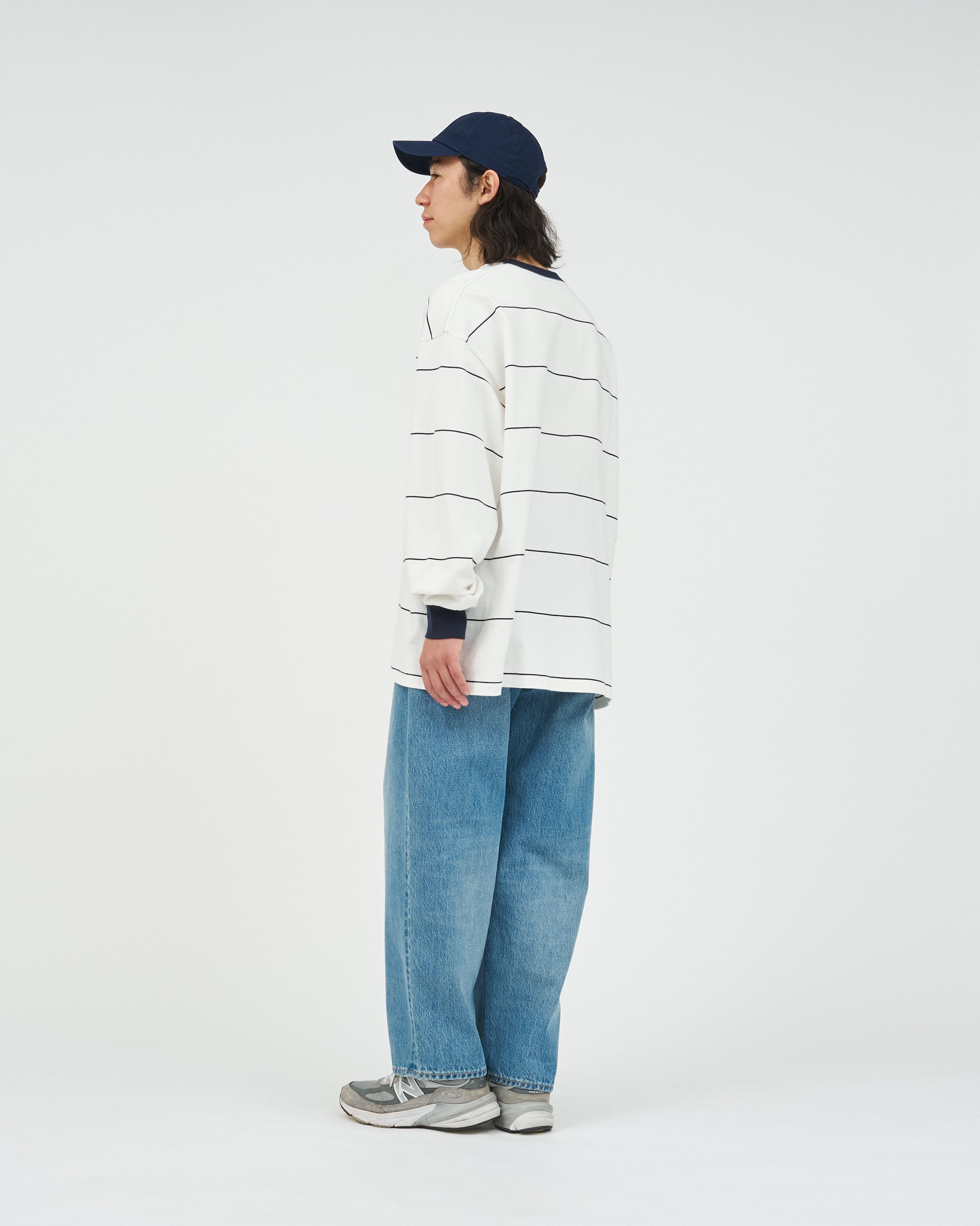 90sスタイルを彷彿とさせる、スケートテイストのピンボーダーを配したロングスリーブTシャツ。コットン100%のボディは、程よい肉感がありながらも柔らかな風合いが特徴。リラックス感のあるオーバーサイズフィットで、スタイリングにラフなムードを添えてくれます。一枚でさらりと着るのはもちろん、ジャケットやブルゾンのインナーとしても程よいアクセントになる一枚です。
