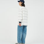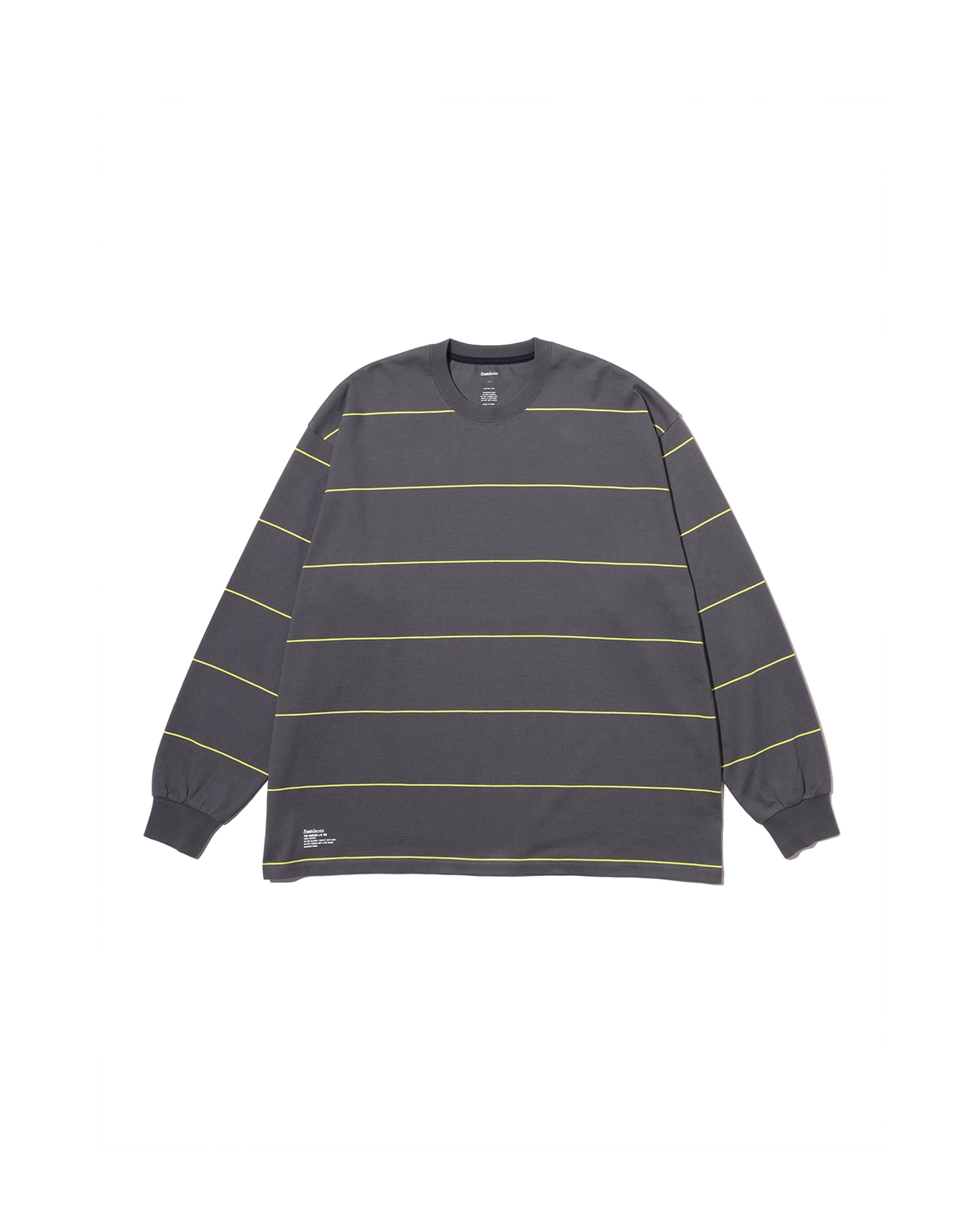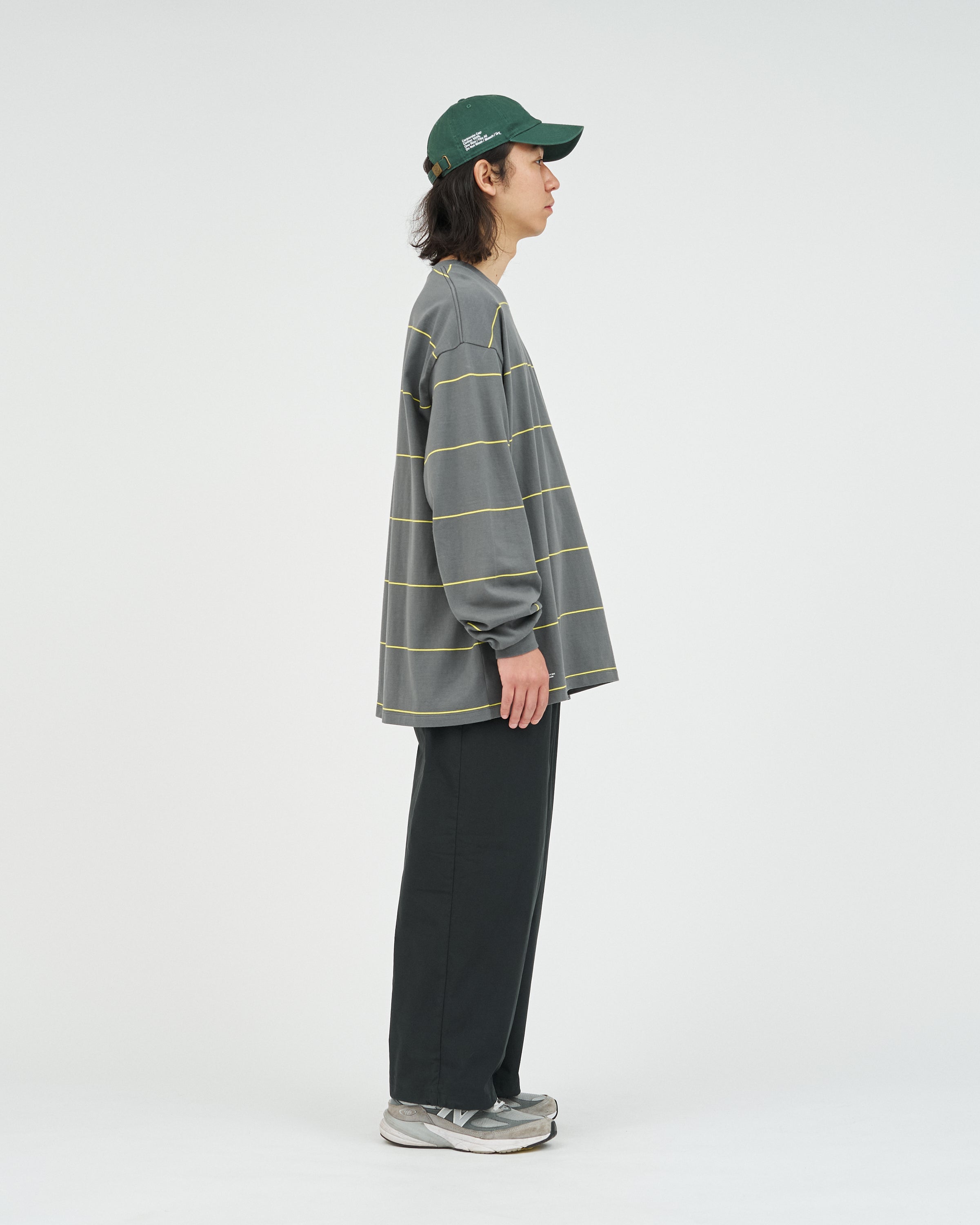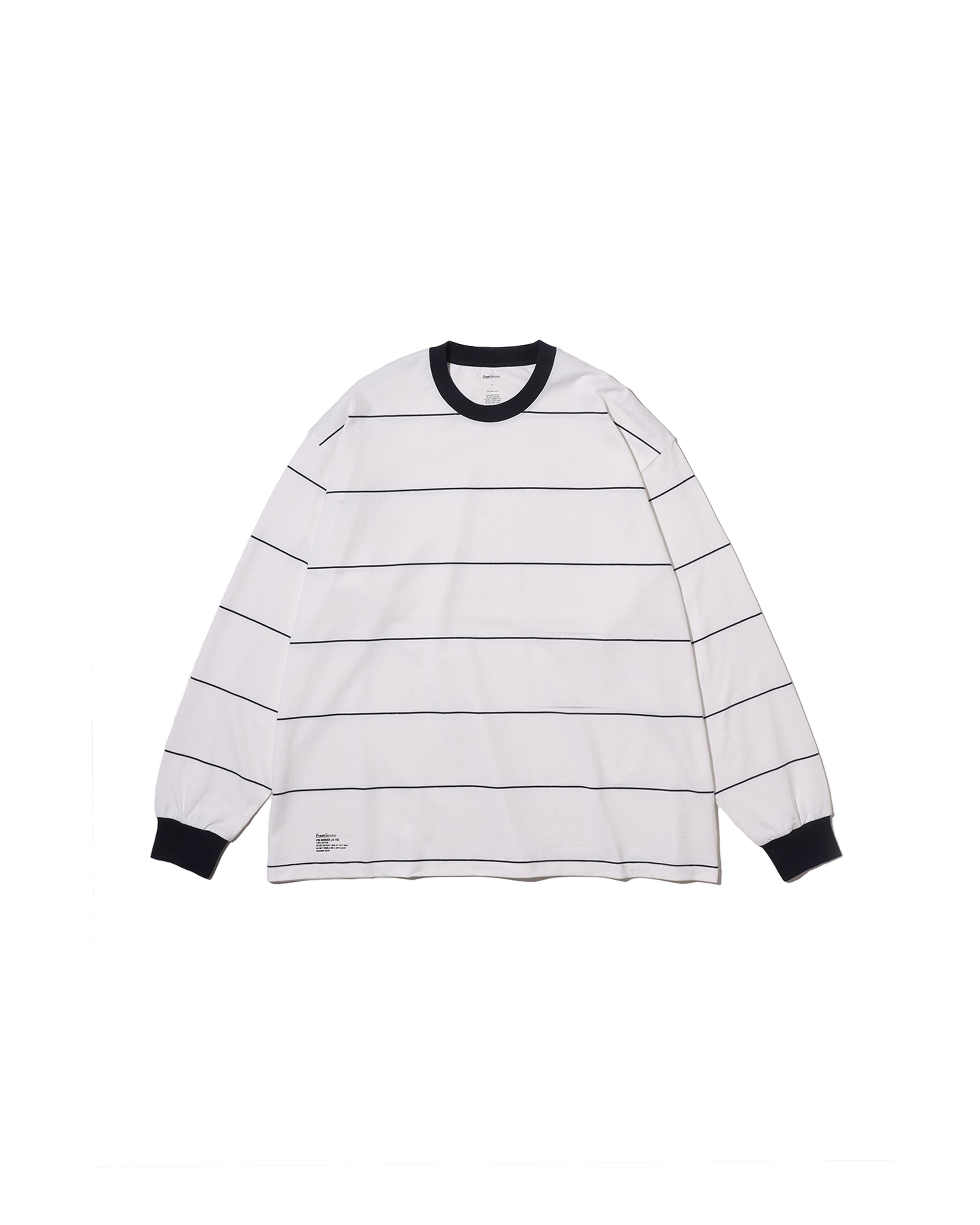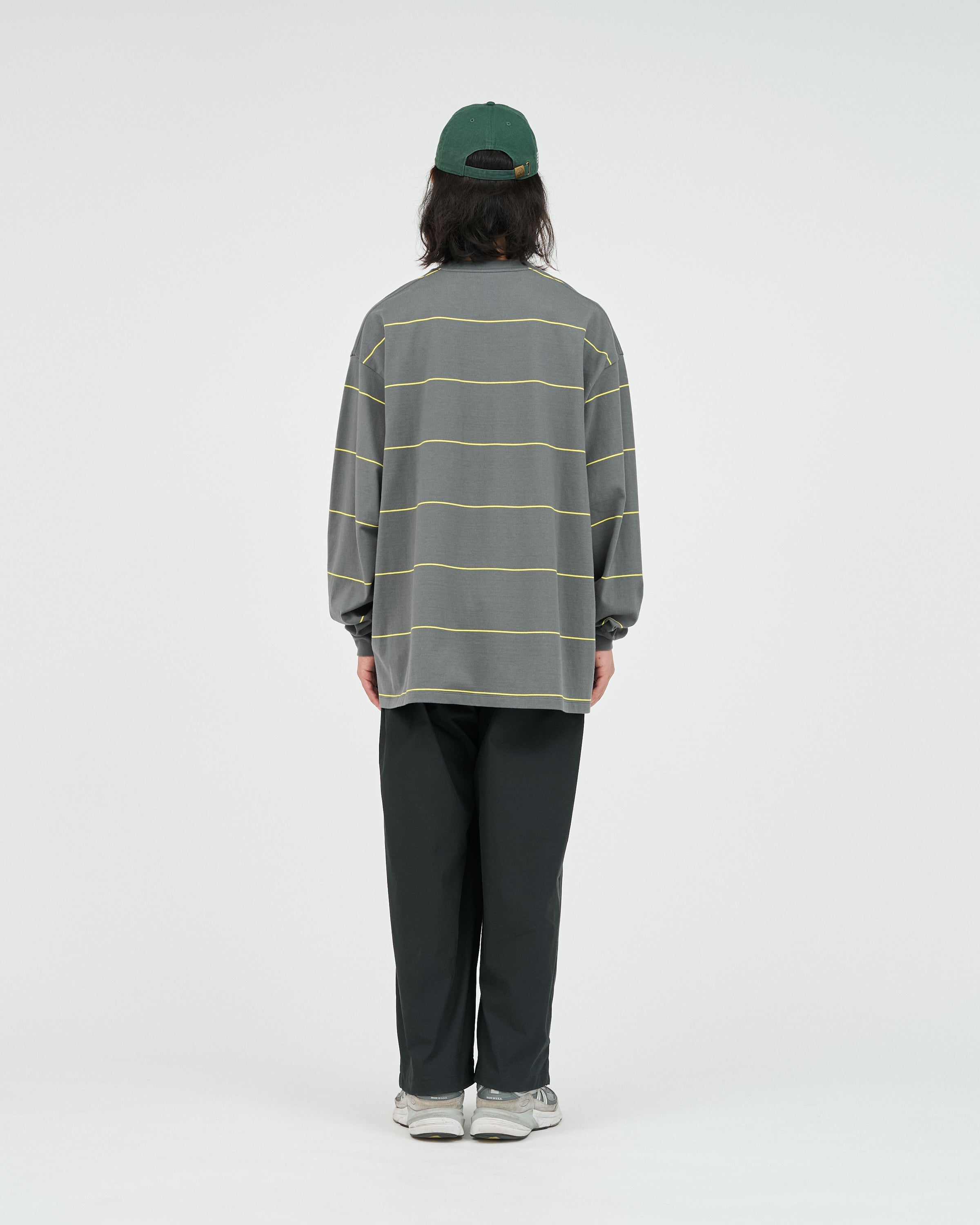90sスタイルを彷彿とさせる、スケートテイストのピンボーダーを配したロングスリーブTシャツ。コットン100%のボディは、程よい肉感がありながらも柔らかな風合いが特徴。リラックス感のあるオーバーサイズフィットで、スタイリングにラフなムードを添えてくれます。一枚でさらりと着るのはもちろん、ジャケットやブルゾンのインナーとしても程よいアクセントになる一枚です。