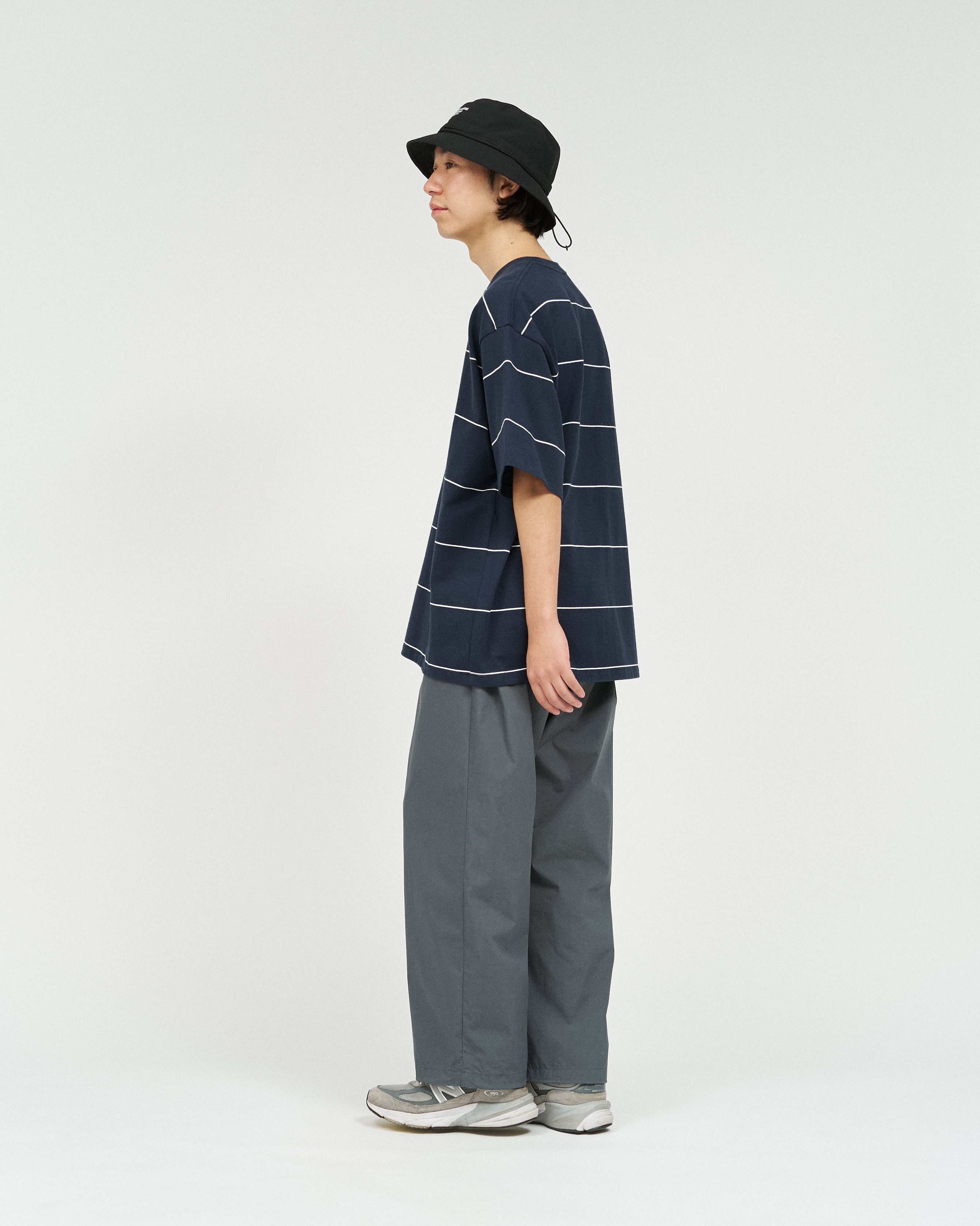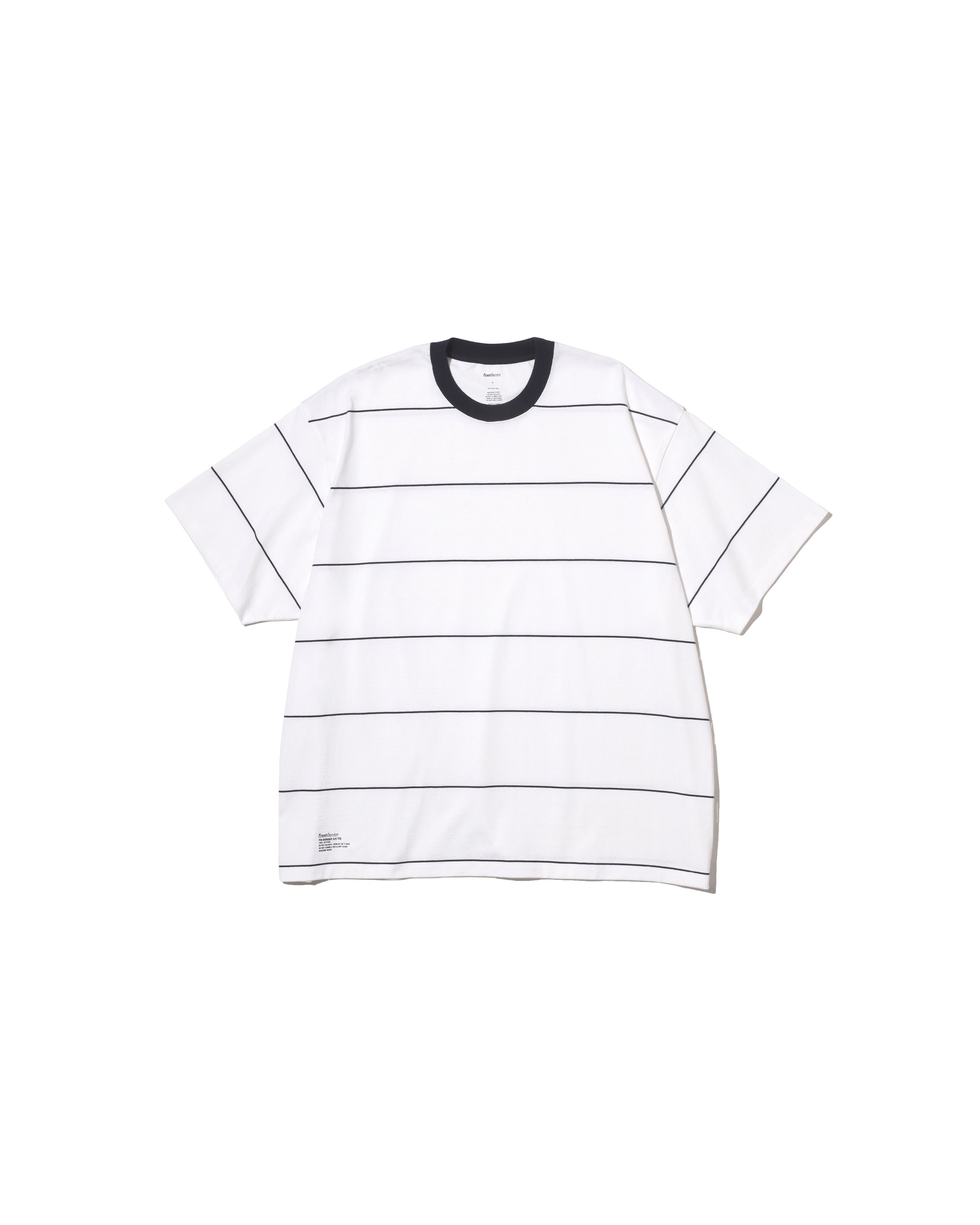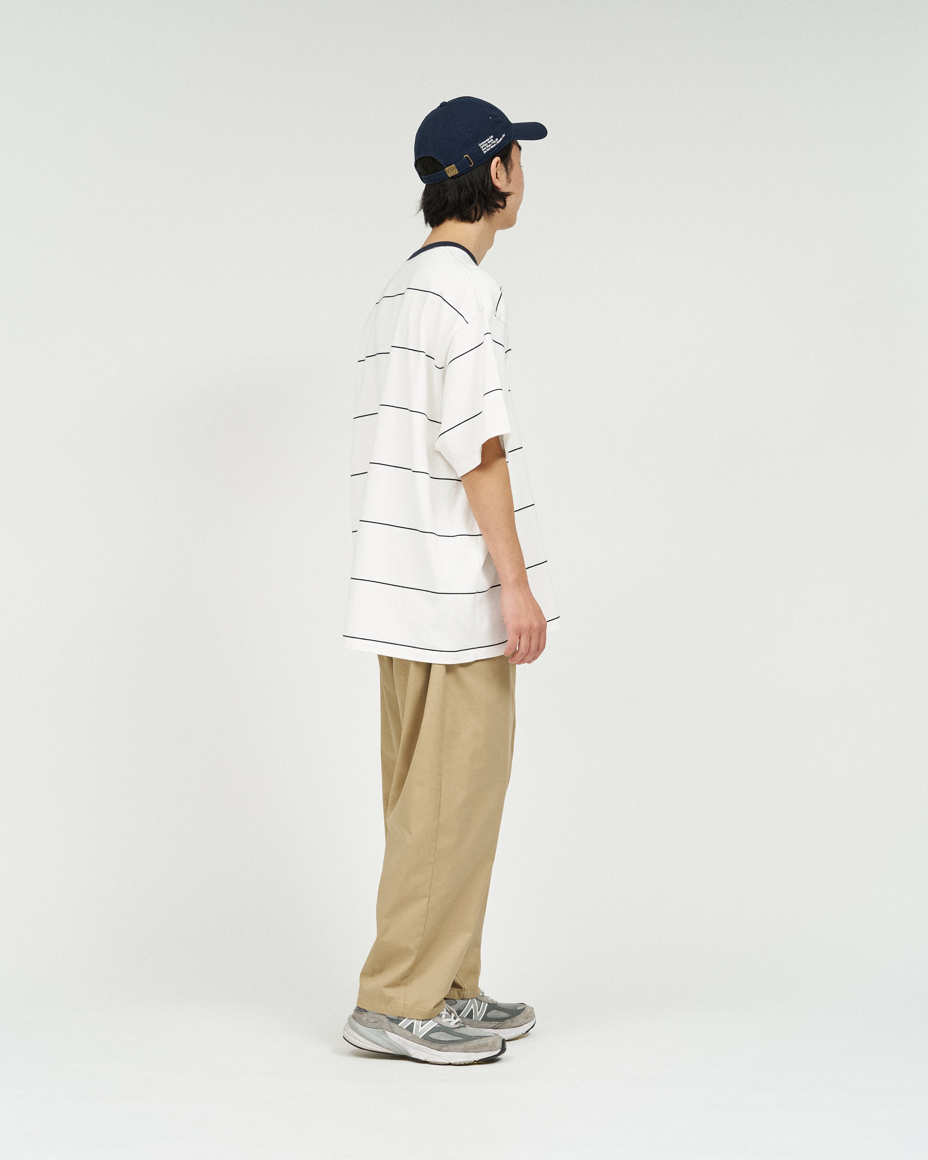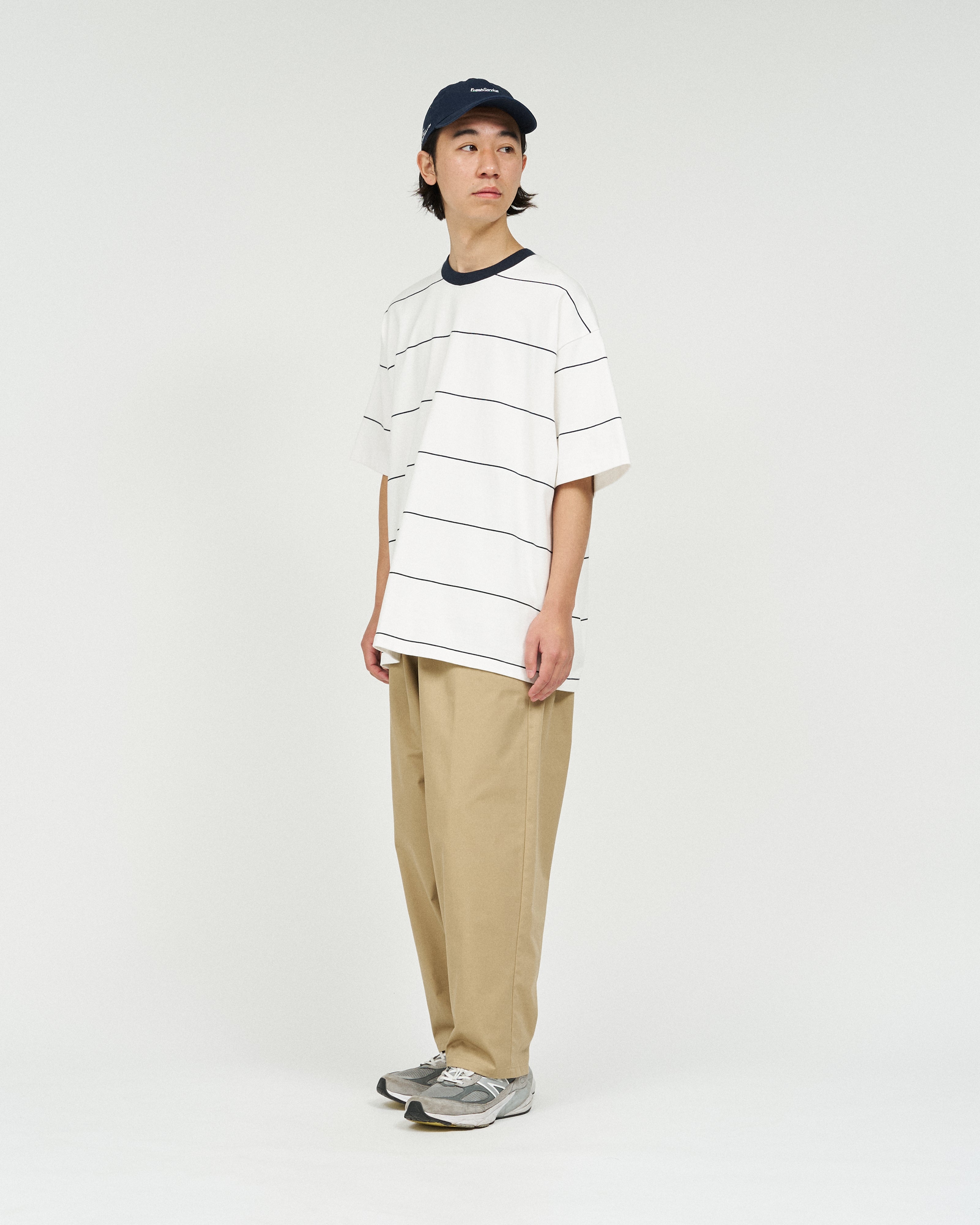 90sスタイルを彷彿させるスケートテイストのボーダーシリーズ。コットン100%のボディは肉感がありつつも、柔らかな風合い。オーバーサイズフィットのショートスリーブ。