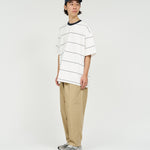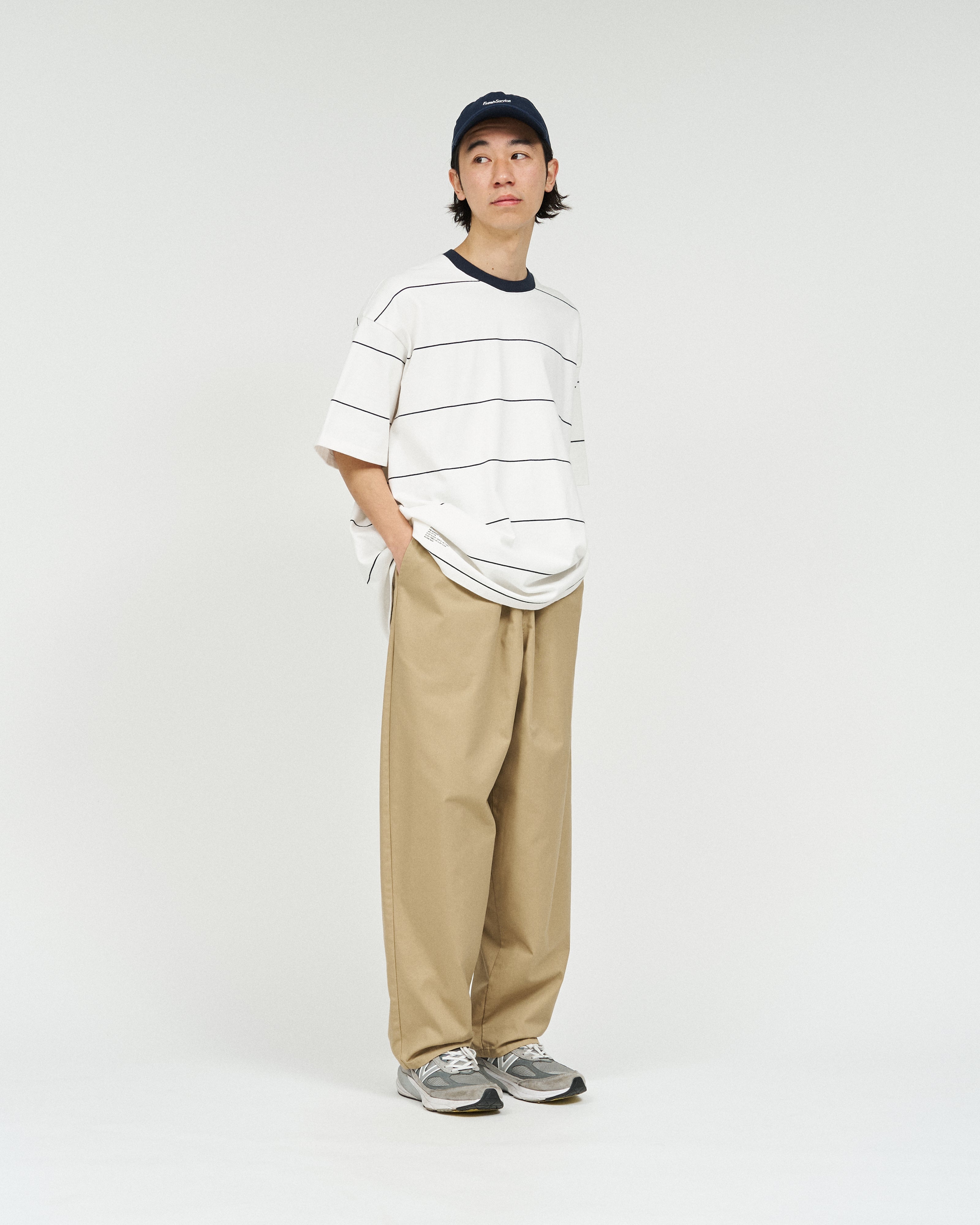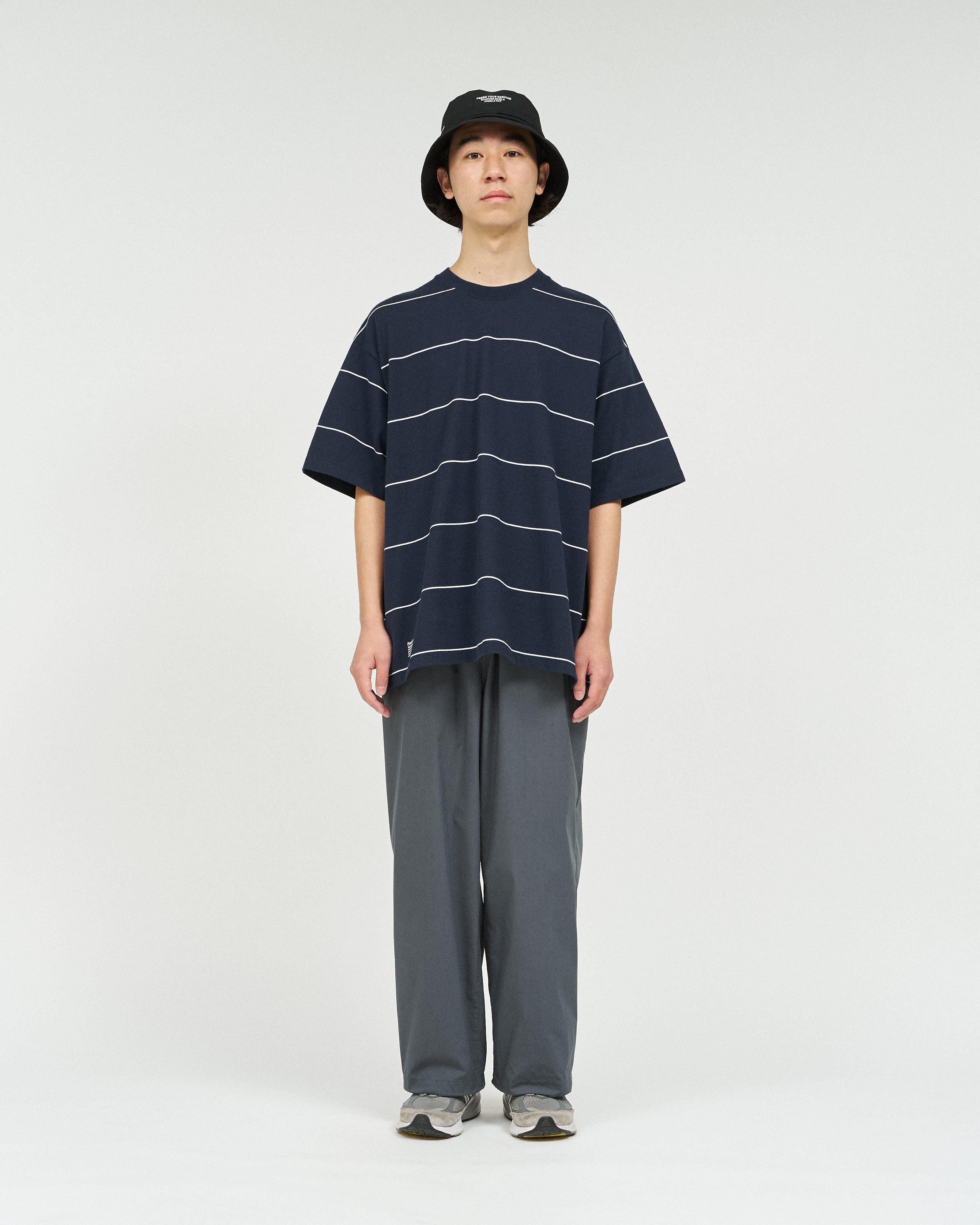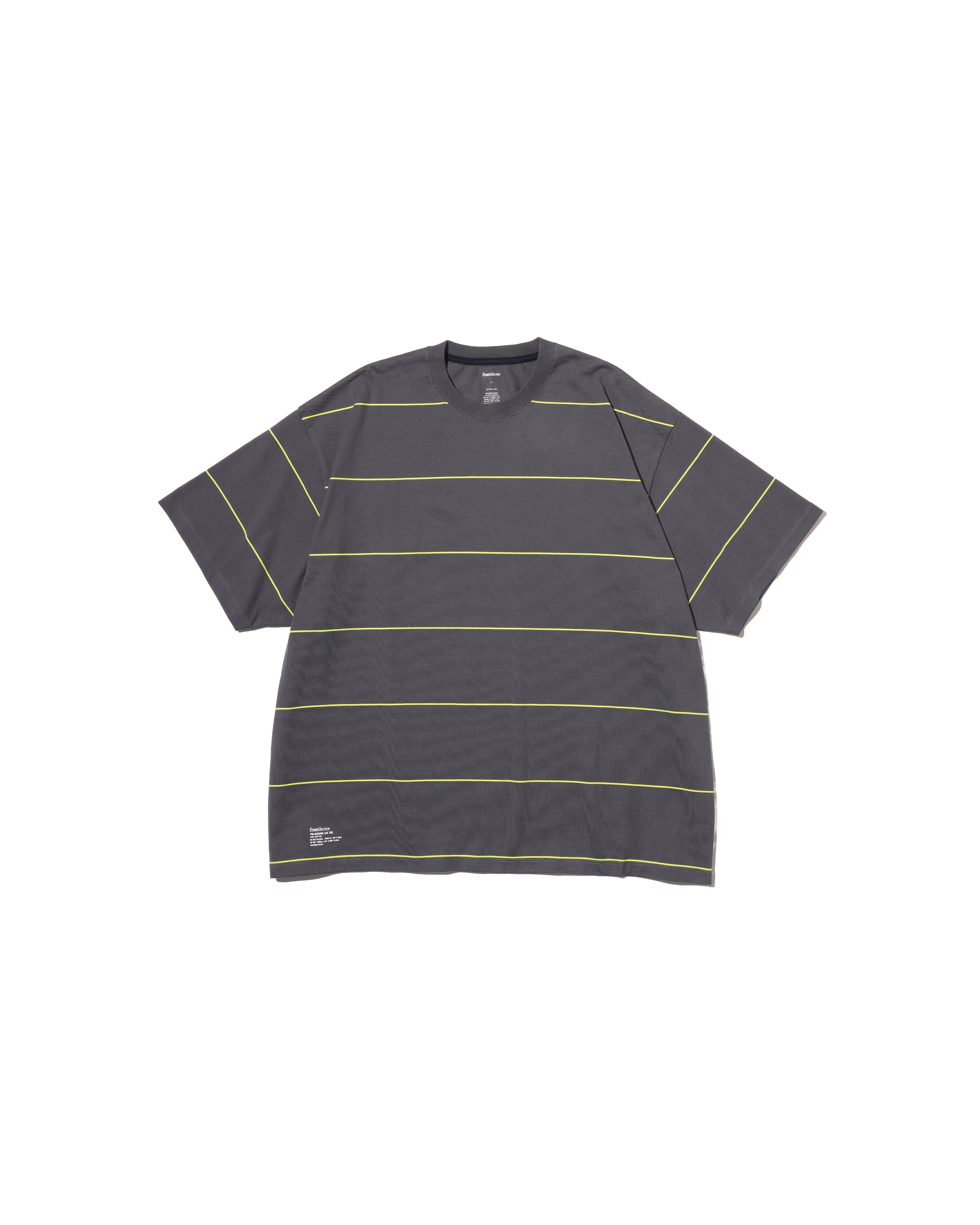 90sスタイルを彷彿させるスケートテイストのボーダーシリーズ。コットン100%のボディは肉感がありつつも、柔らかな風合い。オーバーサイズフィットのショートスリーブ。