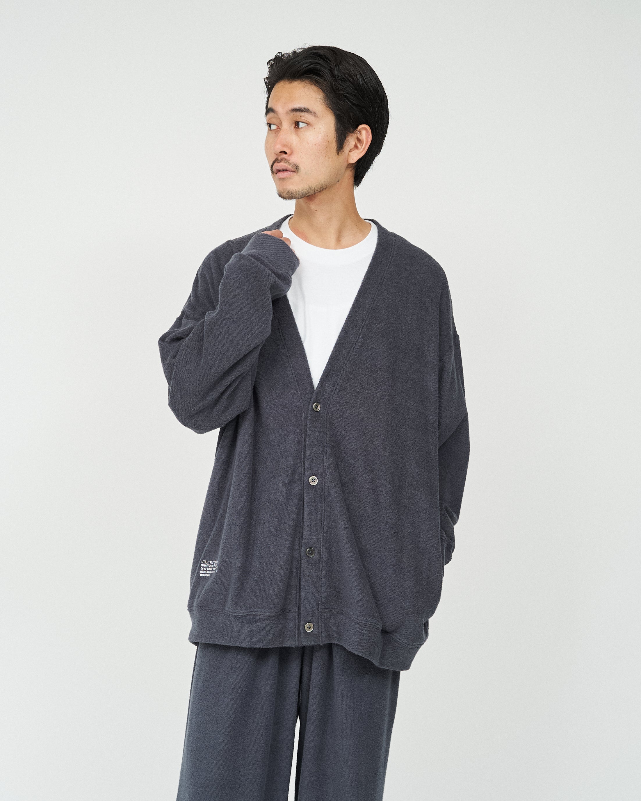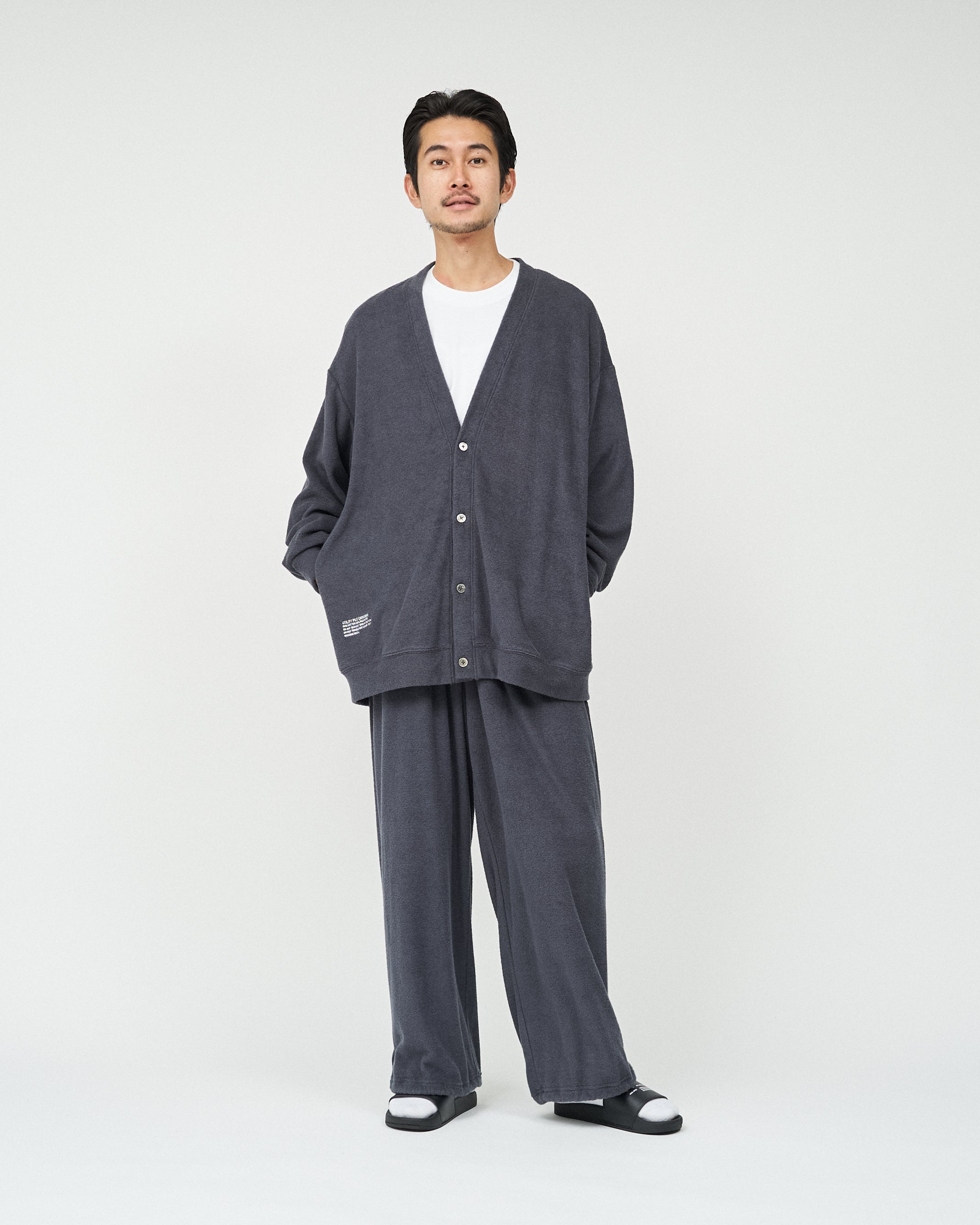 柔らかな肌触りでリラックス感溢れるパイル地を使用したReFresh!Serviceのカーディガンとイージーパンツのセットアップ。ゆったりとしたサイジングで伸縮性も抜群。通気性も良くルームウェアとしても快適。