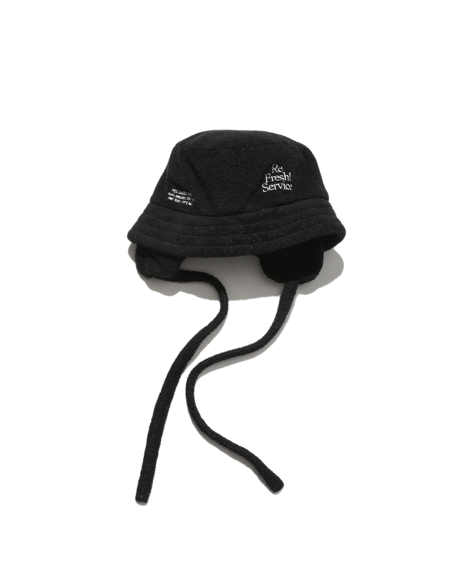 サウナの熱から頭だけでなく耳から頬まで守ってくれるReFresh!Serviceのサウナハット。素材は吸水性・速乾性に優れたマイクロファイバータオル生地を使用。